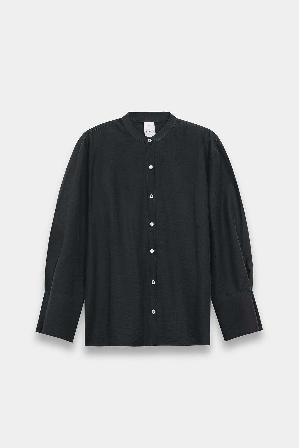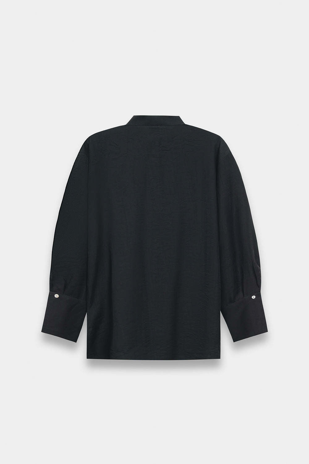 A contemporary two-piece set that redefines casual elegance. The top features a relaxed band-collar linen or silk-blend button-down with dropped shoulders and generously wide cuffs, creating a soft, modern aesthetic without traditional pointed edges. Paired with high-waisted, wide-leg trousers that drape fluidly with a subtle center crease, this ensemble balances effortless comfort with tailored sophistication. Perfect for those seeking understated style with an oversized, contemporary silhouette.