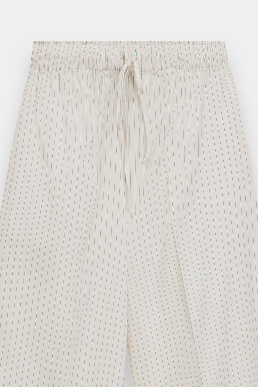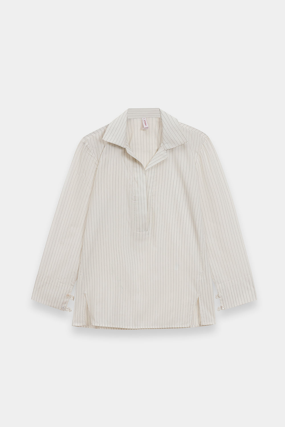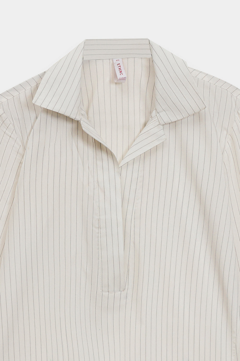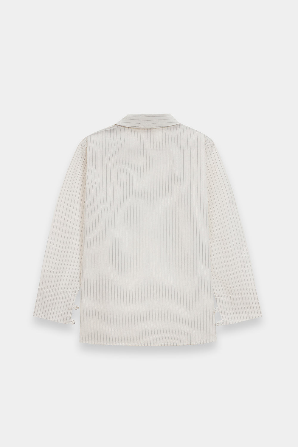 Experience a look of effortless grace in this ivory-toned solid suit, featuring a long-line tunic with a contemporary split-neckline and a classic pointed collar. The shirt is designed with a relaxed, straight-cut silhouette that promotes a clean and sophisticated aesthetic. Subtle vertical texturing within the fabric adds a layer of refined detail to the monochromatic palette. The ensemble is perfectly coordinated with matching wide-leg trouser that flow elegantly, creating a streamlined and polished appearance.