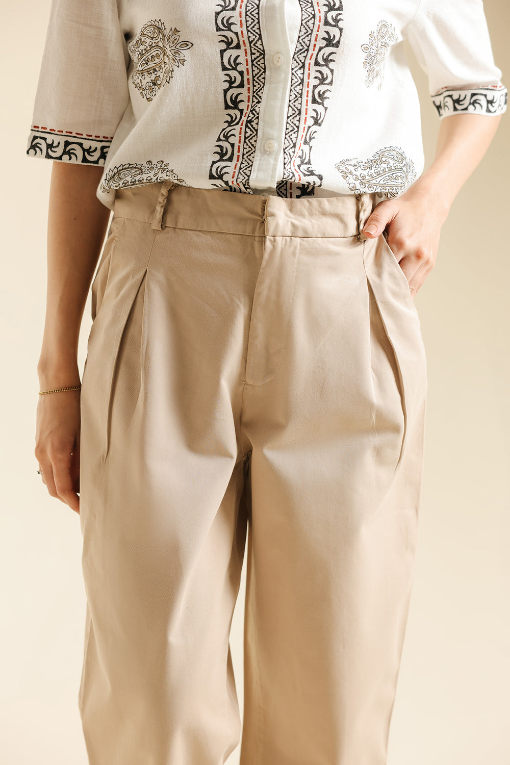 Stay effortlessly chic with these versatile antique white trousers. Designed with a relaxed fit and subtle pleating, they offer a comfortable yet polished look. The clean, neutral color makes them easy to pair with any top, from a casual T-shirt to a dressy blouse. These trousers are a perfect addition to your wardrobe for both work and weekend wear.