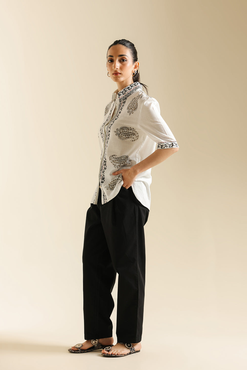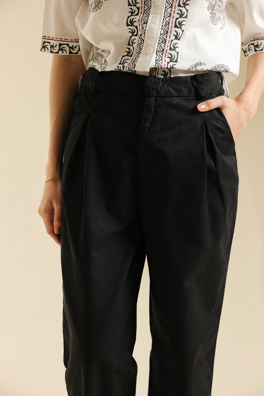 Stay effortlessly chic with these classic black trousers. Designed with a relaxed fit and subtle pleating, they offer a comfortable yet polished look. These trousers are a perfect addition to your wardrobe for both work and weekend wear.