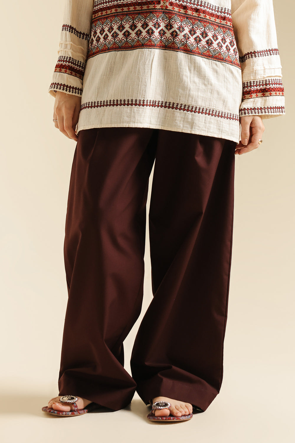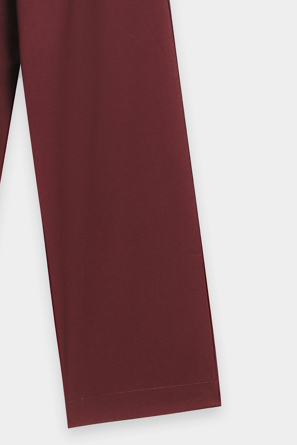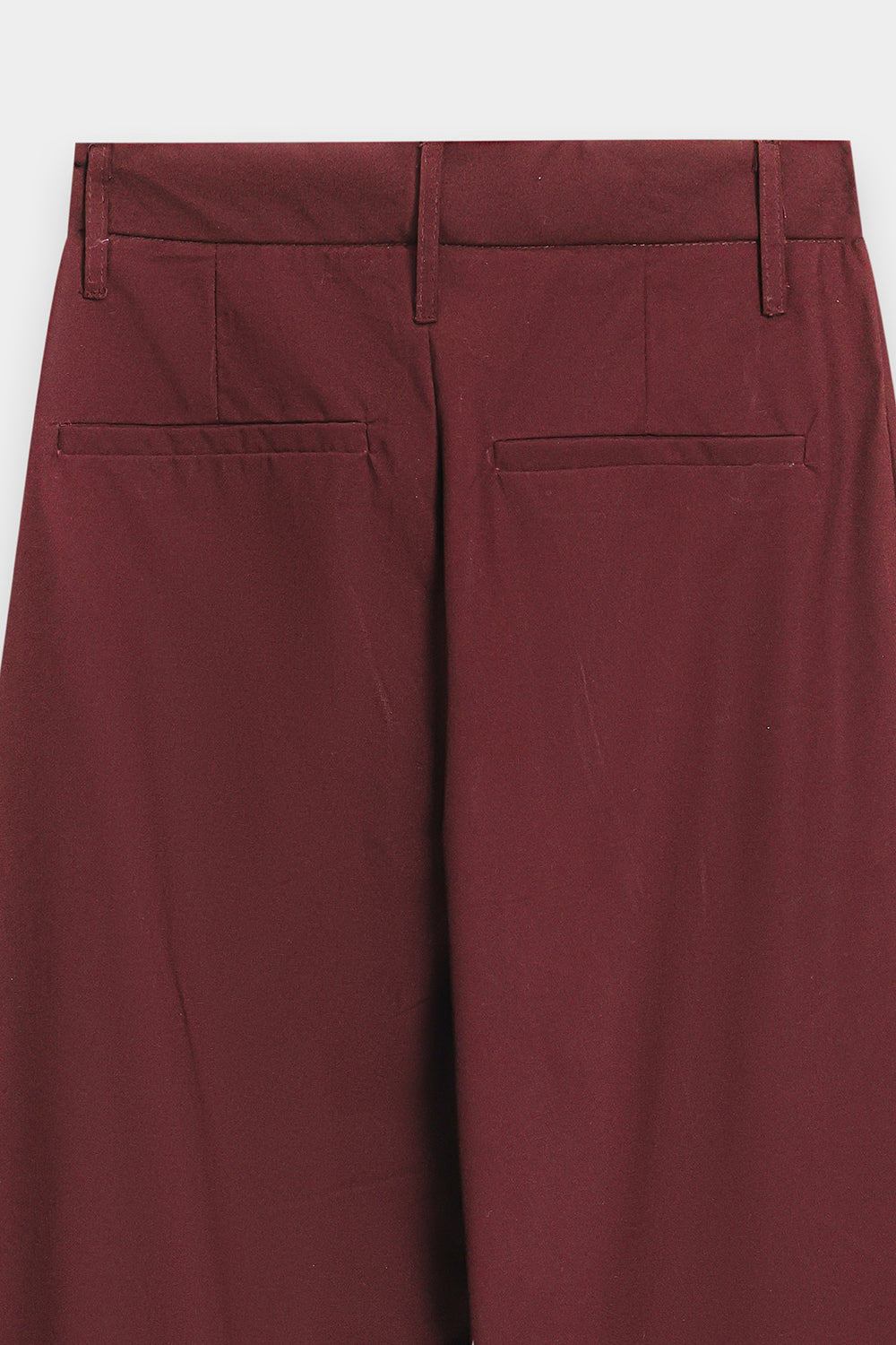 Stay effortlessly chic with these versatile burgundy trousers. Designed with a relaxed fit and subtle pleating, they offer a comfortable yet polished look. These trousers are a perfect addition to your wardrobe for both work and weekend wear.