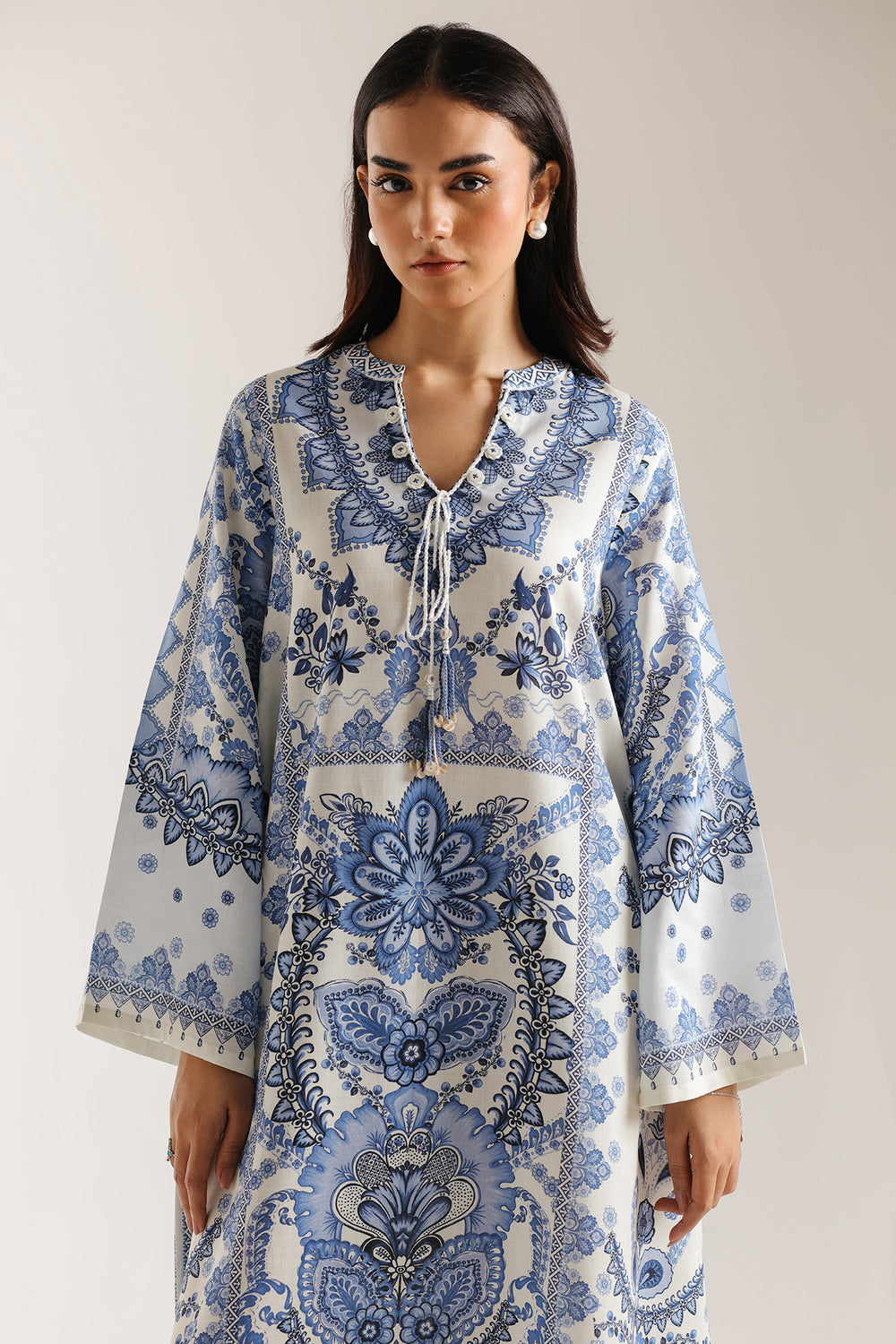 Elevate your wardrobe with this sophisticated embroidered dress, inspired by timeless porcelain aesthetics. The striking white and blue palette features an intricate baroque-style pattern of delicate florals and scrollwork that flows gracefully across the entire silhouette. Crafted with a relaxed, straight-cut design, this piece combines traditional elegance with contemporary comfort. The long, subtly flared sleeves and mandarin collar with partial button placket create a refined neckline, while the ankle-length cut offers versatile styling for both formal occasions and elevated everyday wear.