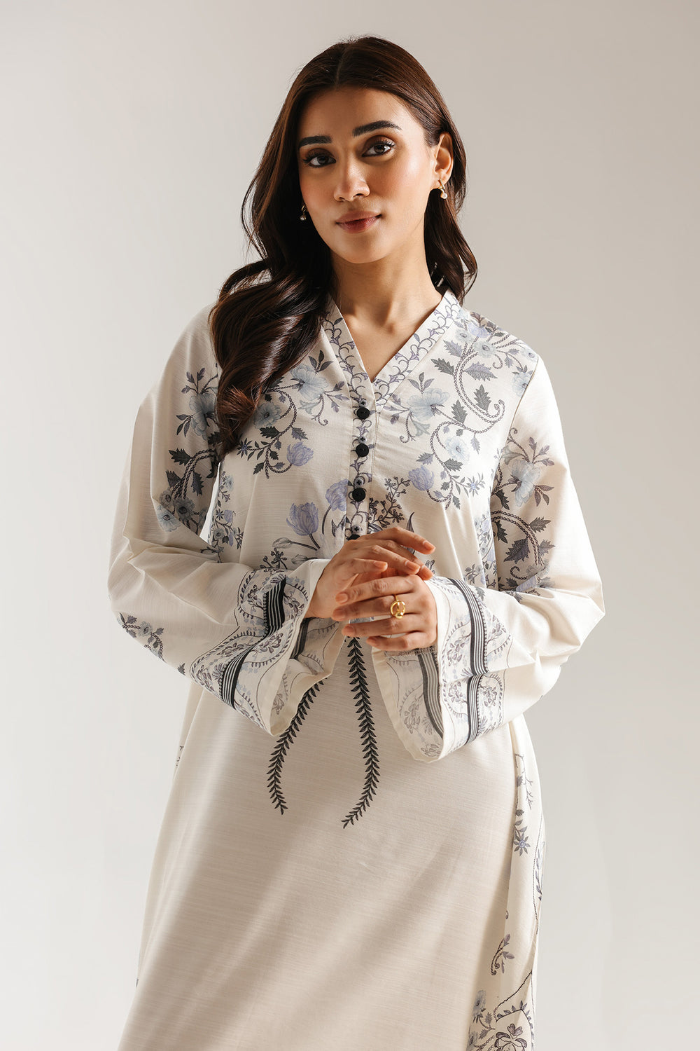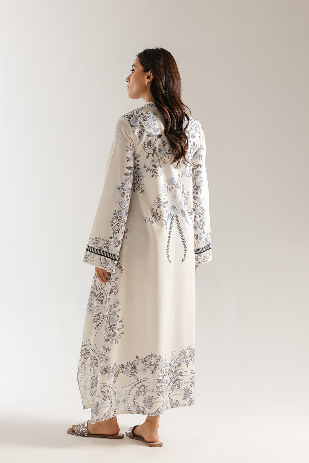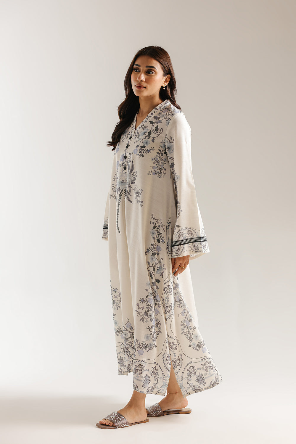 This exquisite embroidered shirt captures the essence of sophisticated grace with its soft off-white canvas and delicate botanical artistry. The long, flowing silhouette is adorned with intricate floral embroidery in a serene palette of dusty blue and charcoal grey, creating a look that is both modern and timeless. Designed with a refined Y neckline and subtle accents, this piece offers a polished finish suitable for daytime events or evening gatherings. The long sleeves are beautifully framed with matching embroidered cuffs, while the detailed patterns gracefully cascade down to the hemline, ensuring an elegant presence from every angle. Perfectly paired with simple sandals or traditional flats, this shirt is a versatile addition to a curated wardrobe, promising breezy comfort without compromising on high-end style.