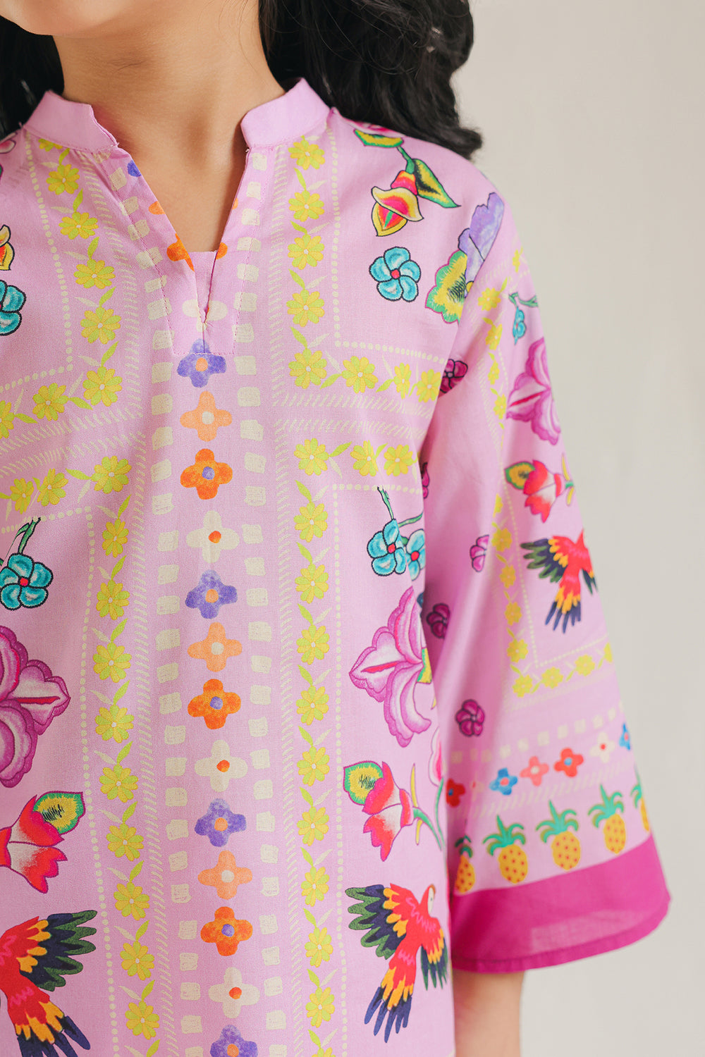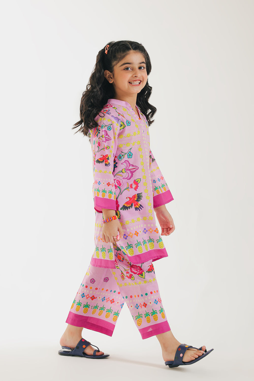 Impress with your summer style in this sleek and modern outfit. The captivating artistic print and coordinating pants offer a trendy silhouette, making a statement at any event. With a charming ice pink base and enriched with beautiful floral prints in vibrant colors, this suit is a must-have for the fashion-forward individual. Upgrade your wardrobe today!