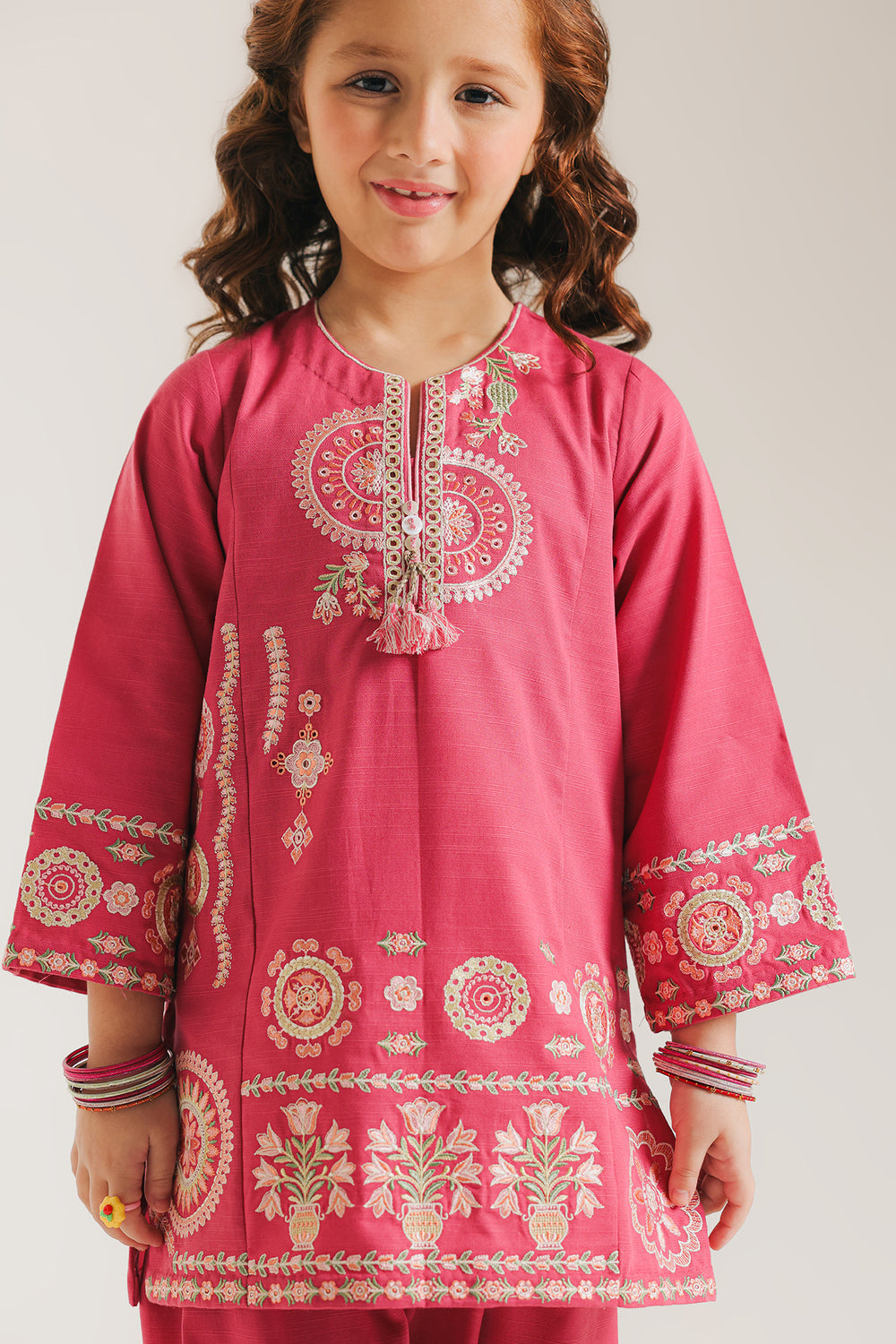 Introduce your child to timeless elegance with this exquisite dusty mauve suit, expertly crafted with intricate embroidery detailing. The soft, muted tone complements all skin tones while the delicate embroidered patterns add sophistication and cultural richness. Perfect for weddings, celebrations, and special occasions, this piece combines traditional artistry with contemporary styling. The refined color palette ensures versatility, pairing effortlessly with various accessories. Crafted with attention to detail, this suit reflects quality craftsmanship and makes an ideal choice for creating memorable moments in your child's wardrobe.