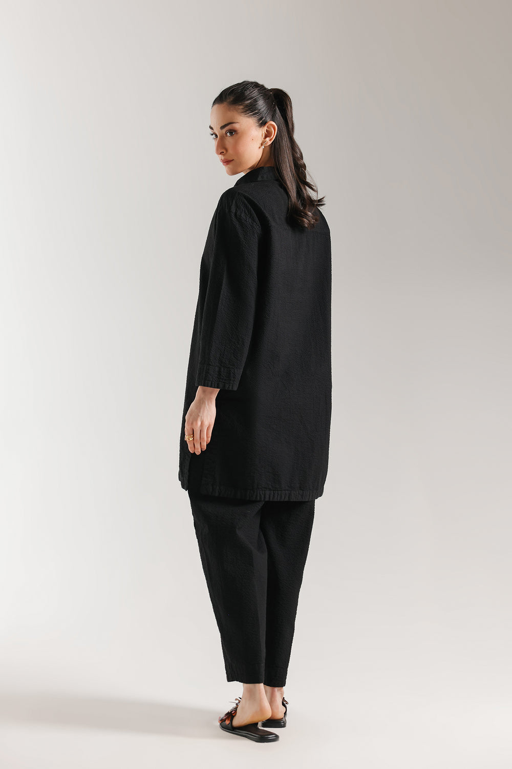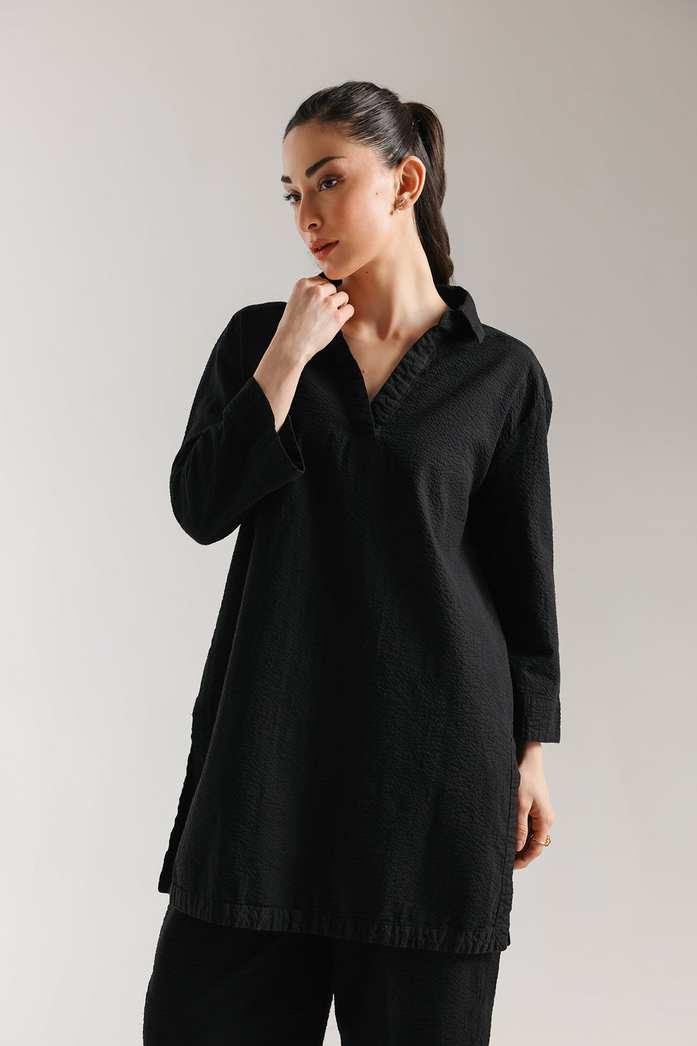SHIRT - STRAIGHT FIT - COLLAR NECK WITH SLIT - FULL SLEEVES - SHORT LENGTH