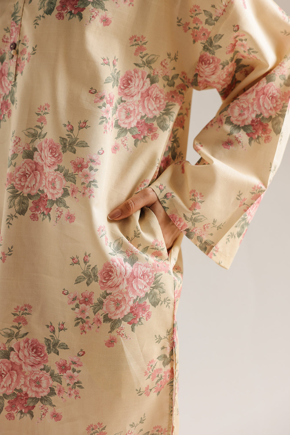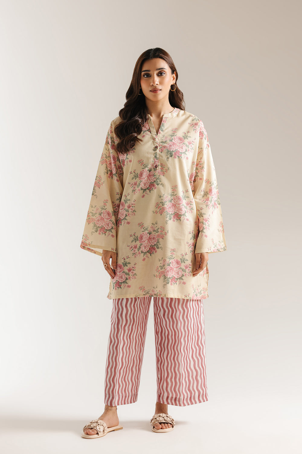 This sophisticated 2-piece ensemble combines contemporary design with refined comfort. The cream kurta features an elegant V-slit neckline adorned with delicate lace detailing, while relaxed proportions and expansive sleeves provide effortless movement. Complemented by pink striped straight-fit trousers, the set achieves a harmonious balance of pattern and structure. Constructed from lightweight, breathable fabric, this pairing is engineered for all-day wear across diverse settings—from professional environments to social gatherings. A versatile foundation piece that elevates your collection with understated sophistication.