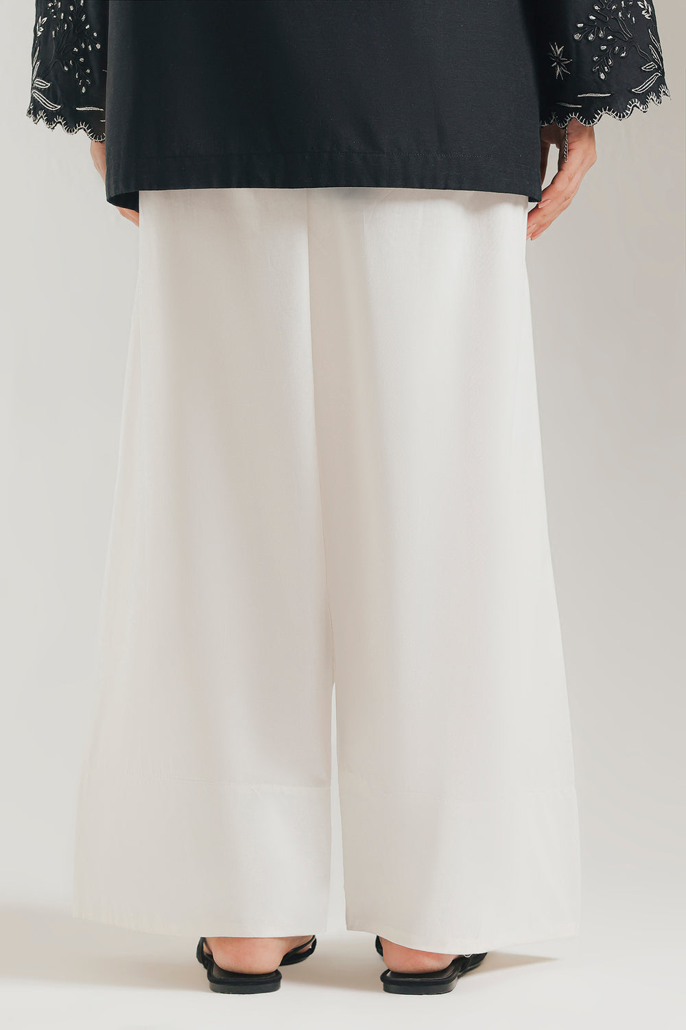 Drape yourself in effortless sophistication with this exquisite white wide-leg shalwar. The design features an elegant wide-leg silhouette that offers both supreme comfort and dramatic movement. The relaxed fit and clean lines make it an essential and versatile piece, perfect for pairing with both long, ornate kurtas or shorter, contemporary tops.