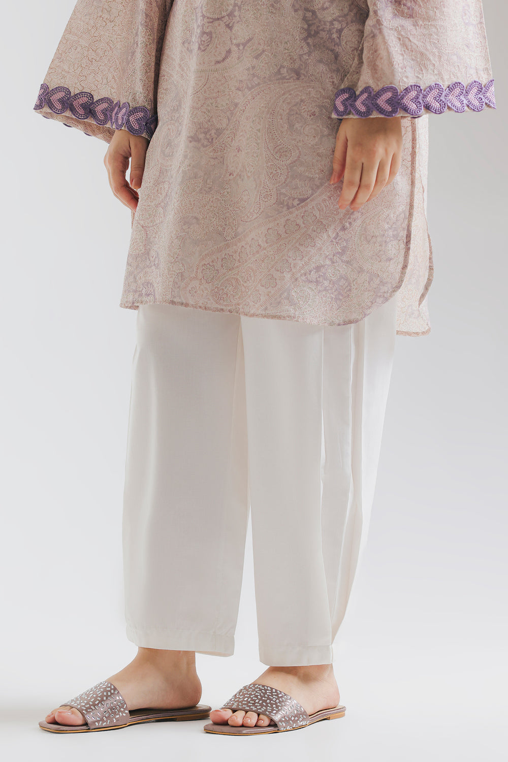 This immaculate, solid white shalwar represents the pinnacle of classic elegance and versatile styling. It delivers a refined drape that flatters all silhouettes while maintaining impeccable structure. The pure white palette serves as a sophisticated foundation for layering with ornate kurtas, embellished dupattas, or contemporary separates. Ideal for both traditional celebrations and modern everyday wear for style and effortless grace.