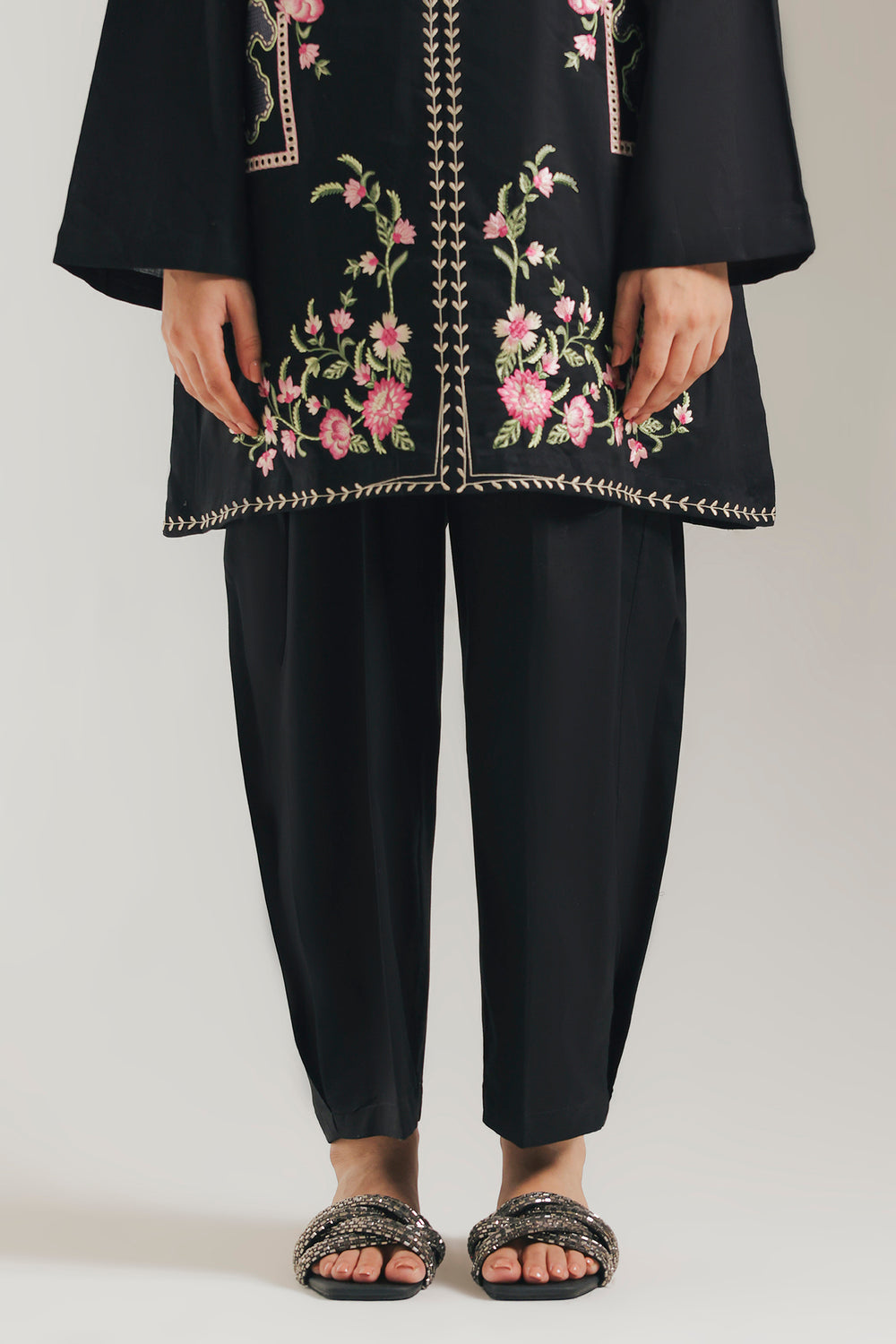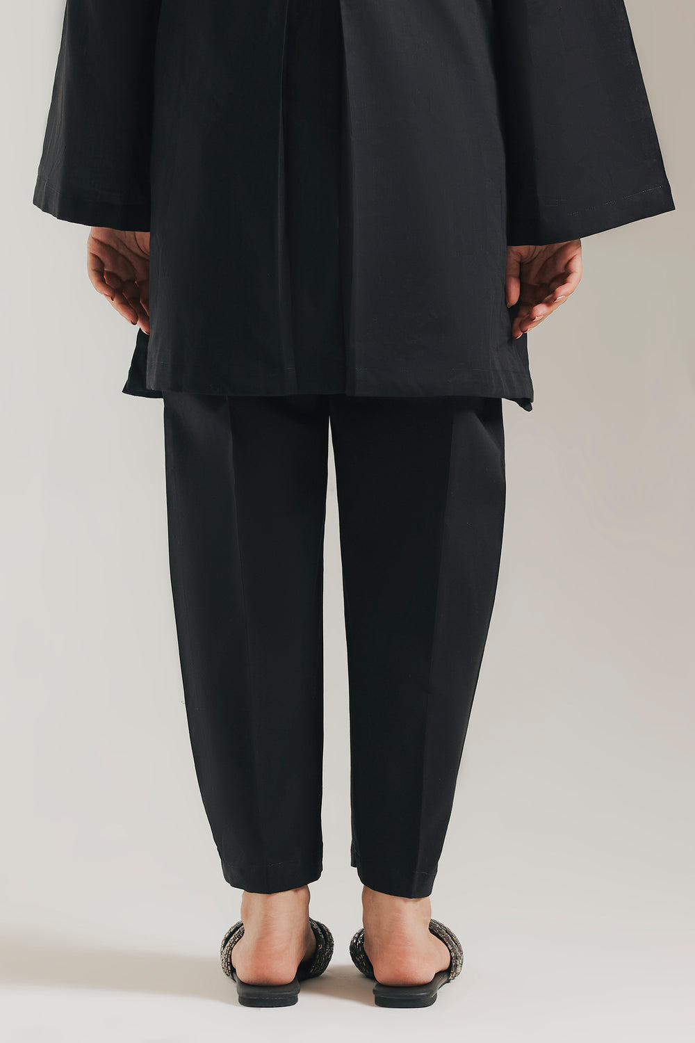 Experience effortless elegance and supreme comfort with this chic black shalwar. The design features a relaxed fit, and gently tapering towards the ankle to create a flattering and modern silhouette. The clean lines and minimal detailing make it a flawless foundational piece, perfect for pairing with intricate kurtas or contemporary tunics.