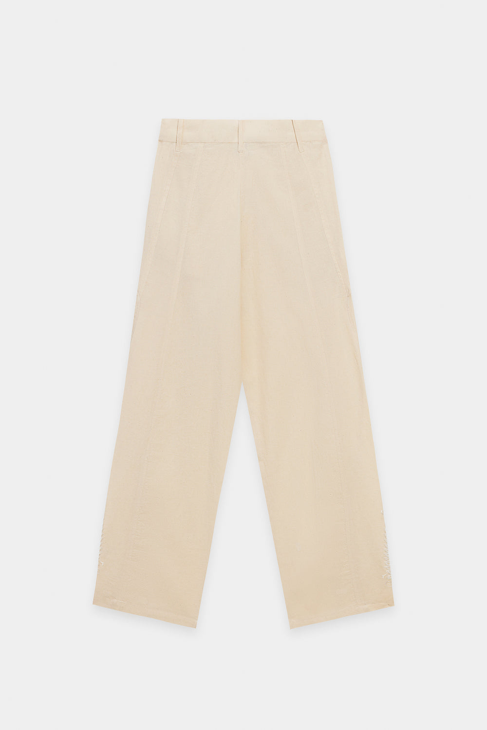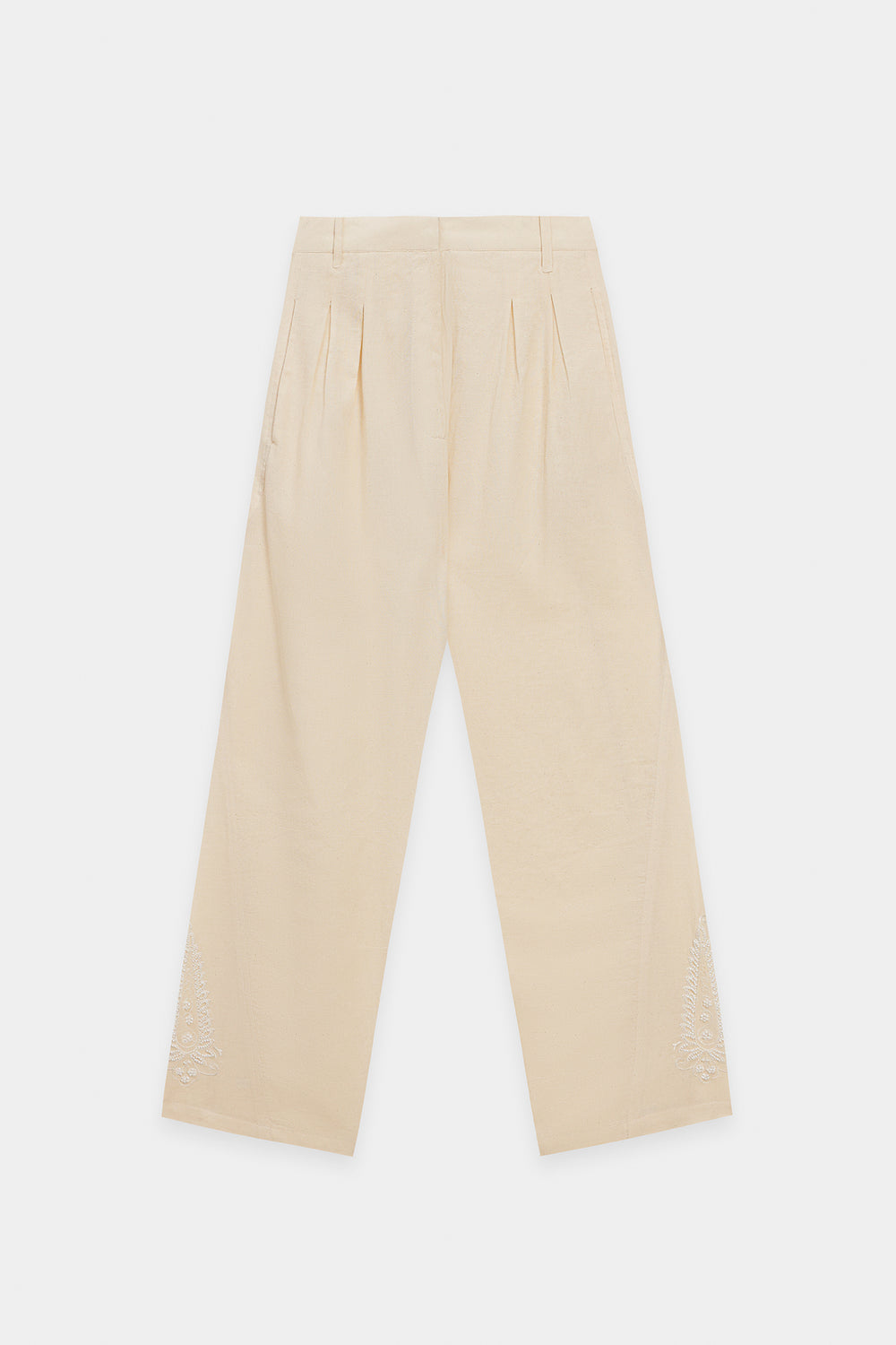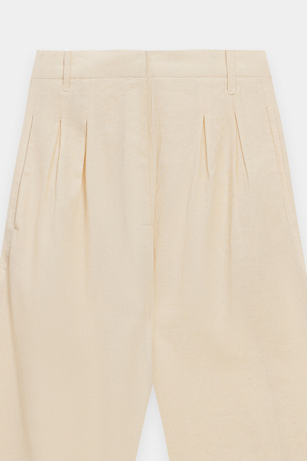Discover the perfect blend of style and comfort with these versatile white relax-fit trousers. With its classic silhouette and pleated front, these trousers are ideal for effortless everyday wear, which can be easily paired with a variety of tops for a chic and comfortable look.