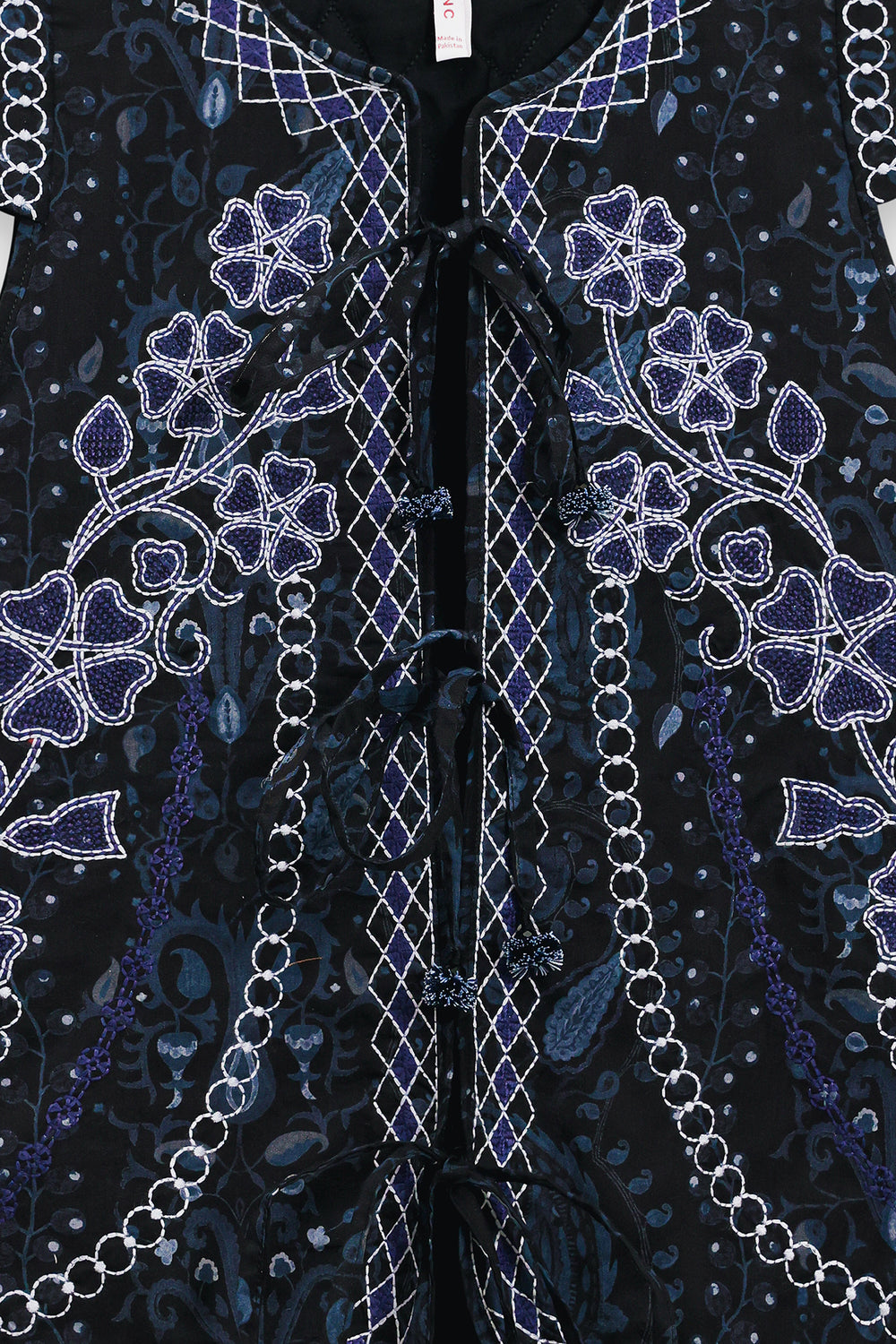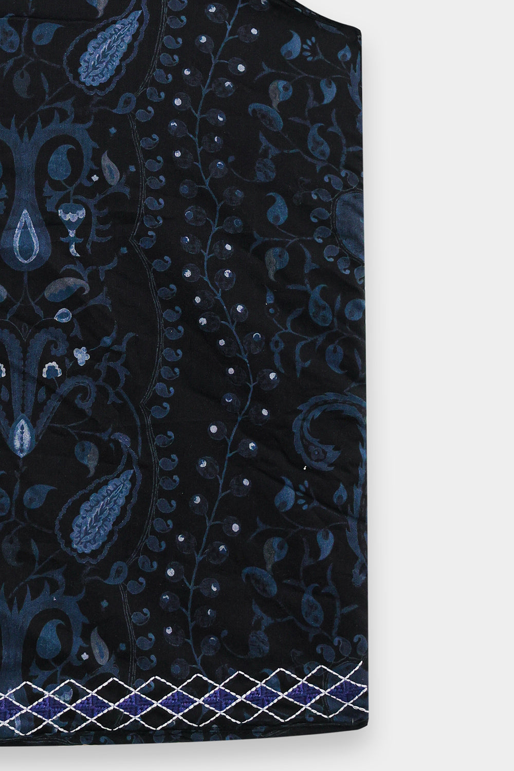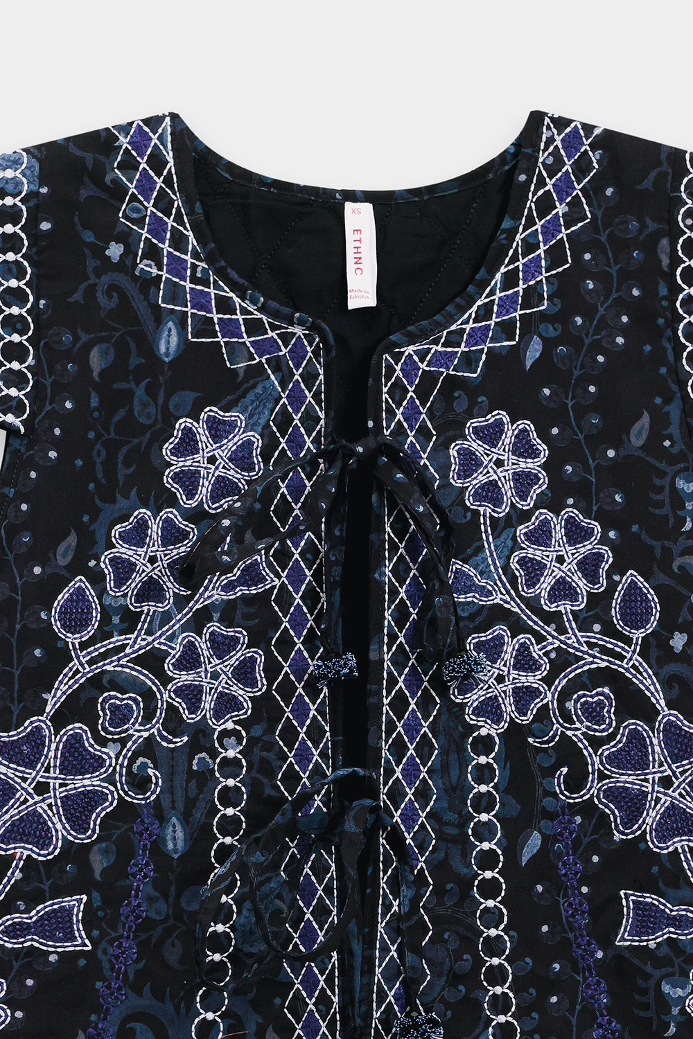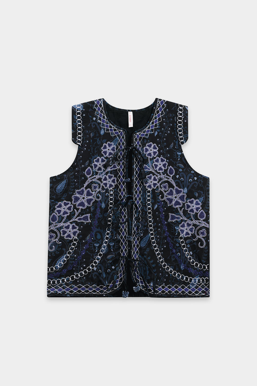 This intricately patterned embroidered waistcoat is a statement piece that demands thoughtful styling to showcase its detailed craftsmanship. The visually rich design pairs beautifully with understated basics that allow the vest's artistry to take center stage. Layer it over a navy turtleneck with dark wash denim for a sophisticated monochromatic look, or style it casually with a grey marl sweatshirt and olive cargo pants for weekend ease. A versatile investment that transitions seamlessly from casual to polished occasions.