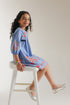 This stylish blue dress with playful floral embroidery in shades of red and yellow will add a touch of fun and flair in your little one’s wardrobe. The scalloped hem adds a touch of whimsy. The dress features a comfortable, relaxed fit and three-quarter length sleeves, making it perfect for a variety of occasions.