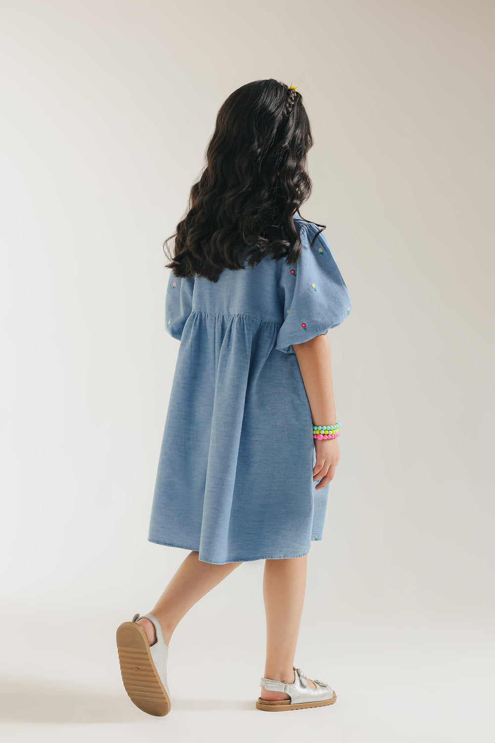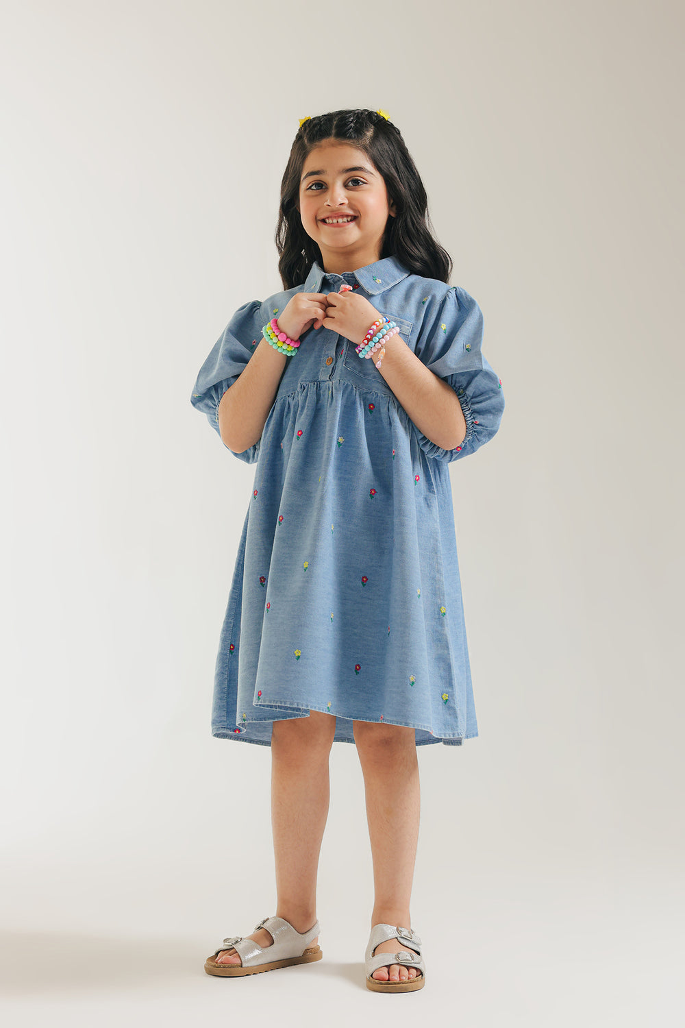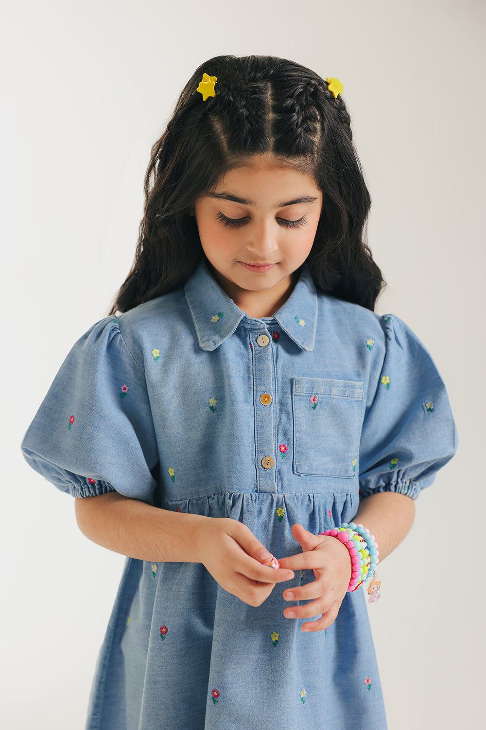 From playdates to parties, this embroidered dress is a versatile staple. The soft and durable fabric ensures comfort, while the sweet embroidery adds a touch of fun. The collared neckline and puff sleeves offer a classic silhouette that can be styled in countless ways. Pair it with her favorite shoes for a look that's all her own.