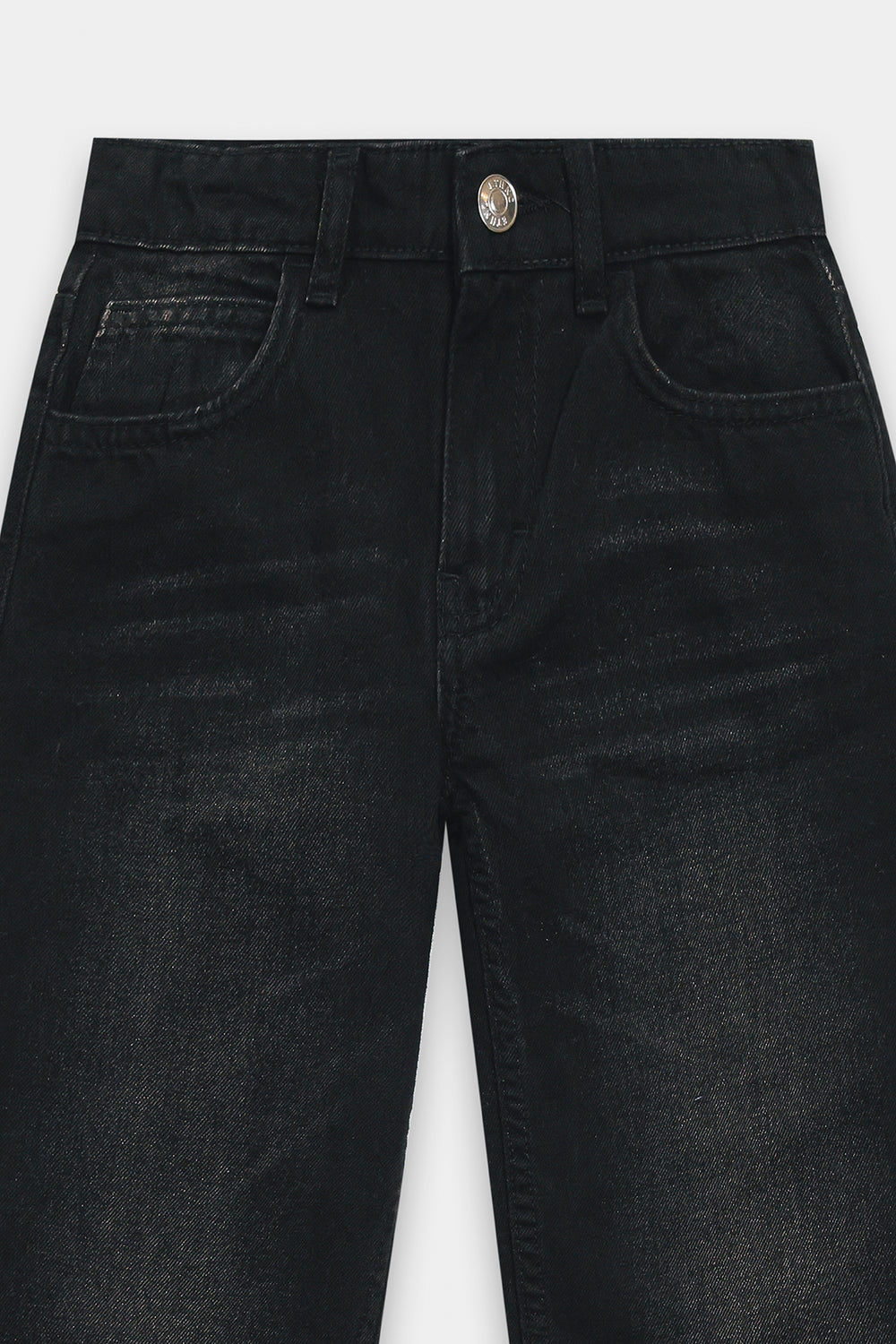 Look trendy this fun season in this fashionable denim jeans rendered in a deep black shade. Portraying an edgy design with contemporary silhouette, this statement jeans is a great addition to your girls' everyday wardrobe.