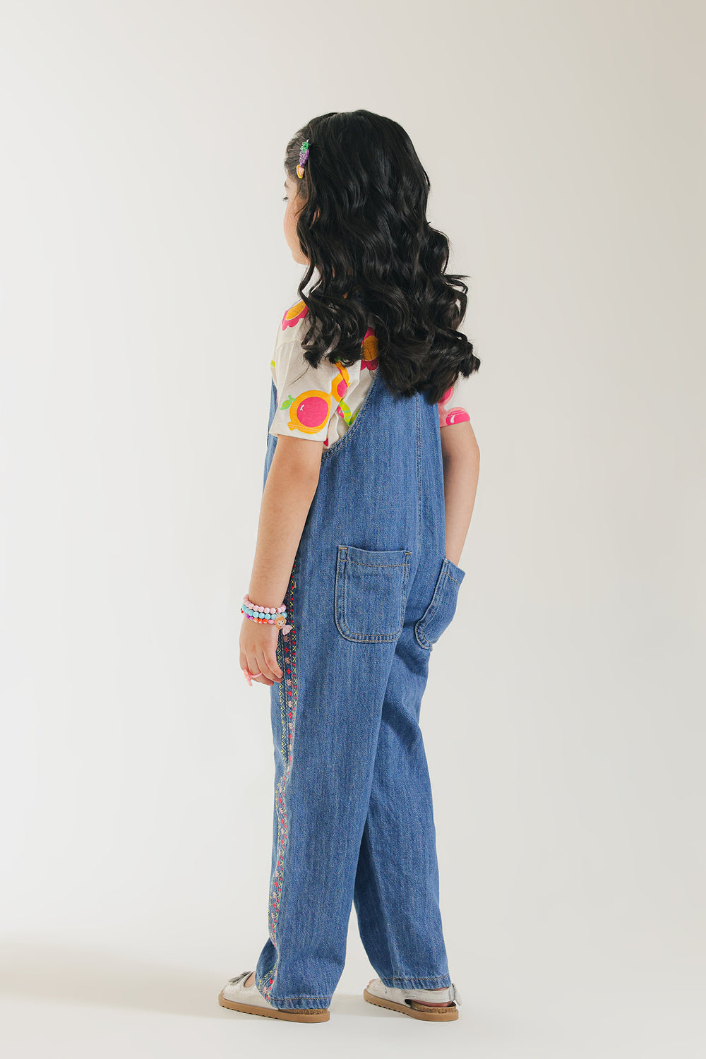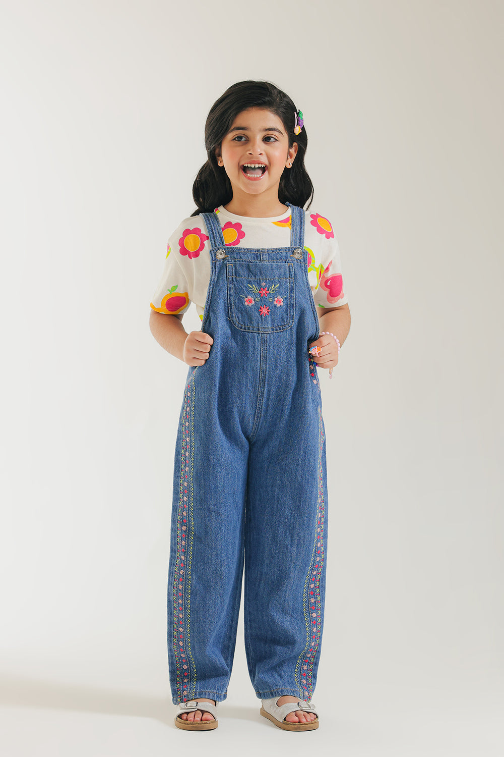 Step back in time with a touch of retro charm in this adorable denim overall jumpsuit for kids! Featuring a classic bib-and-brace design with adjustable straps and a front pocket adorned with sweet floral embroidery, this jumpsuit captures a fun, vintage vibe. The wide-leg silhouette offers a comfortable and stylish fit for all-day adventures. The legs are also embellished with colorful embroidered details, adding an extra touch of whimsy. Pair it with a bright t-shirt for a playful look that's perfect for everything from playdates to casual outings.
