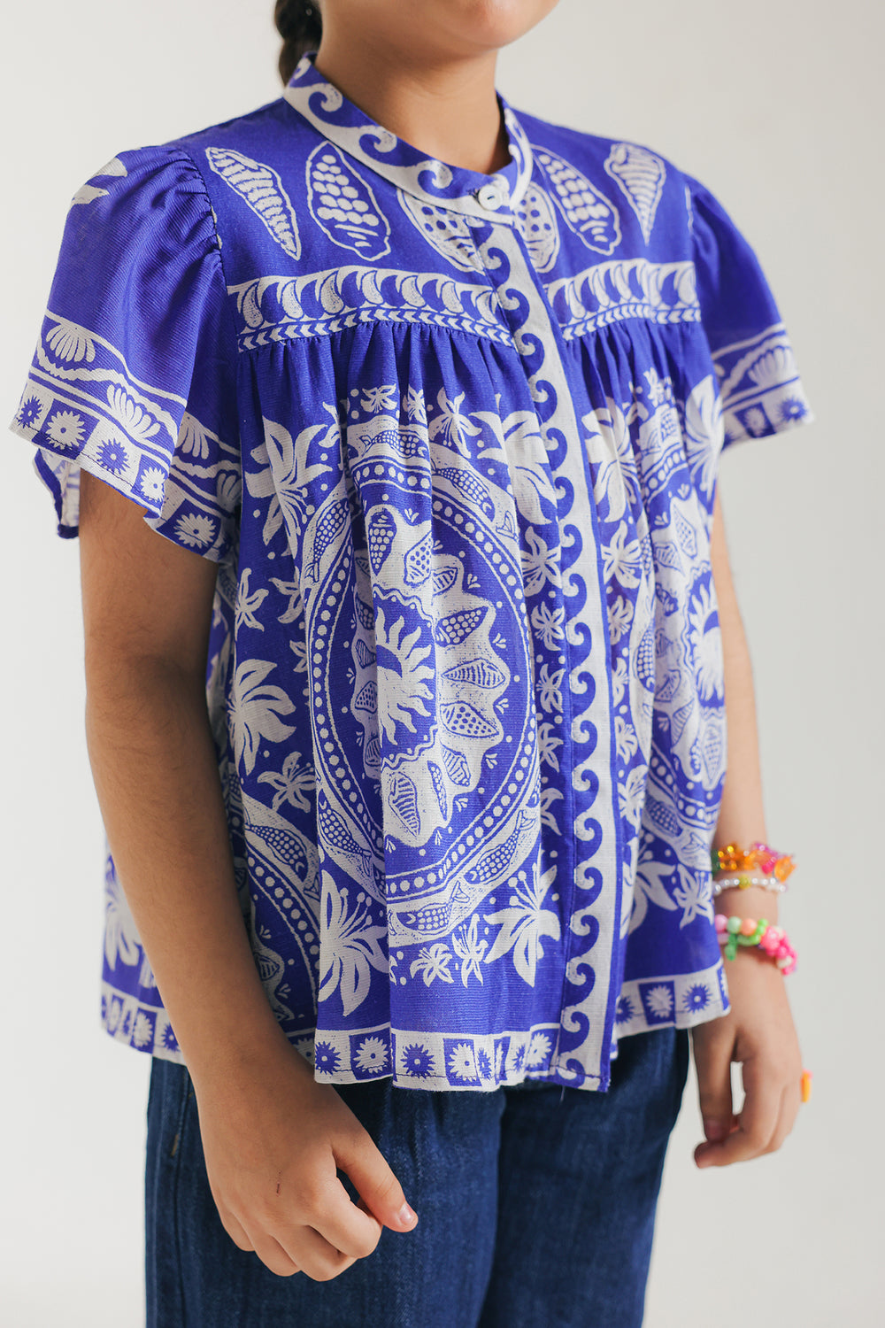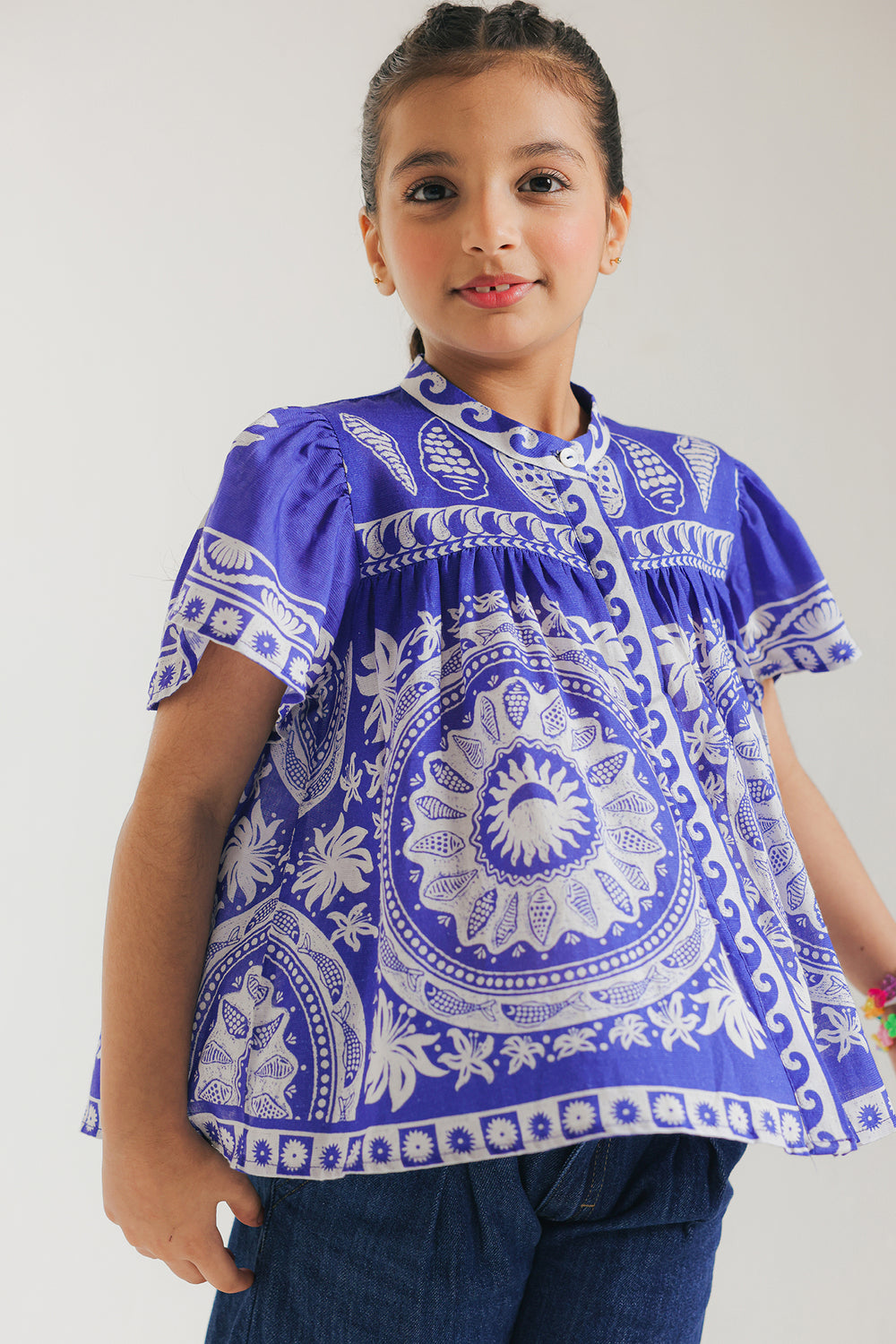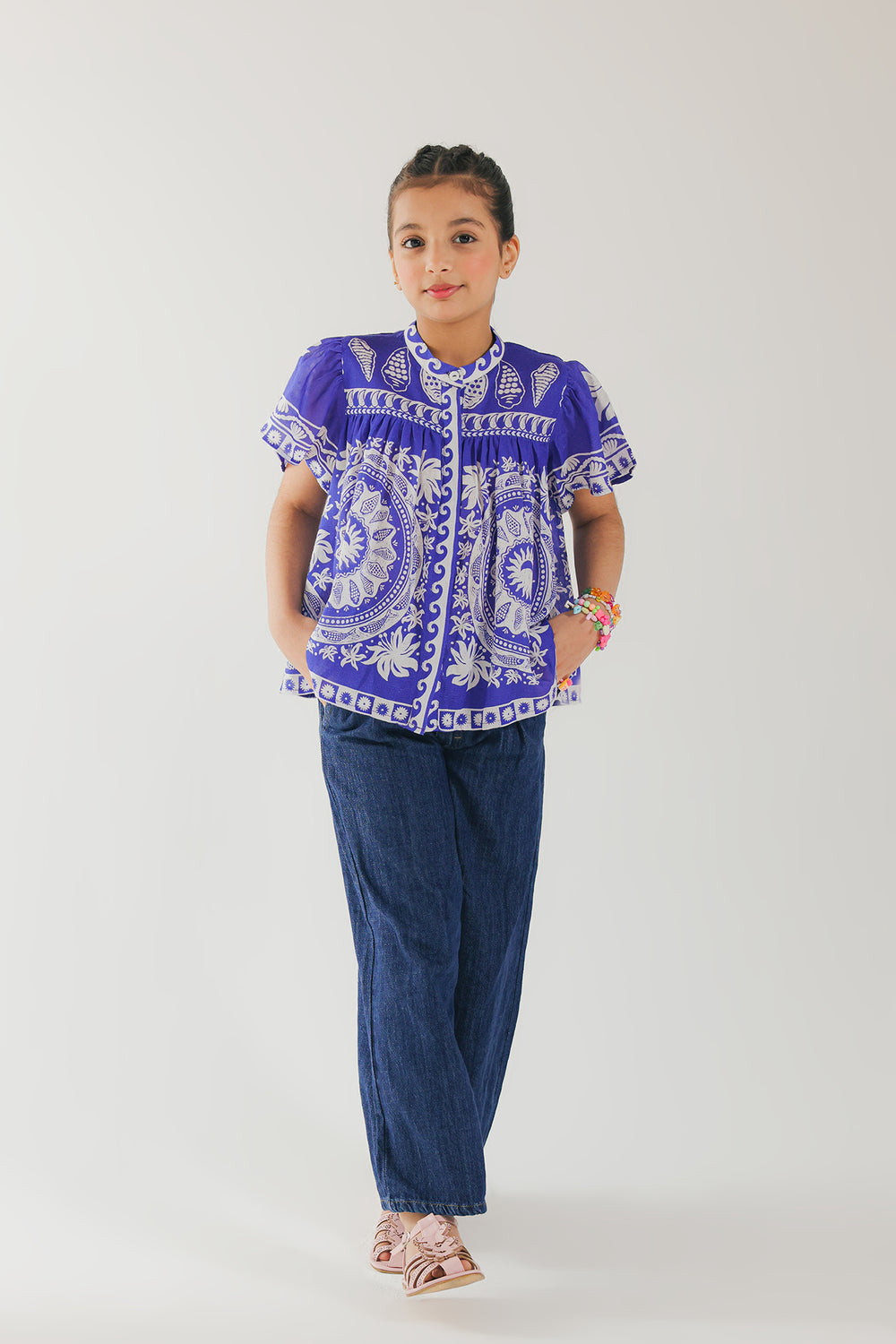 Upgrade your wardrobe with this graceful outfit. This vibrant button down shirt features a mix of red, pink, yellow, green, and blue hues for a unique and artistic look. The floral and geometric patterns elevate the style, while the button-down front and puffed sleeves add a touch of elegance. With a loose and comfortable fit, this shirt offers both style and comfort.