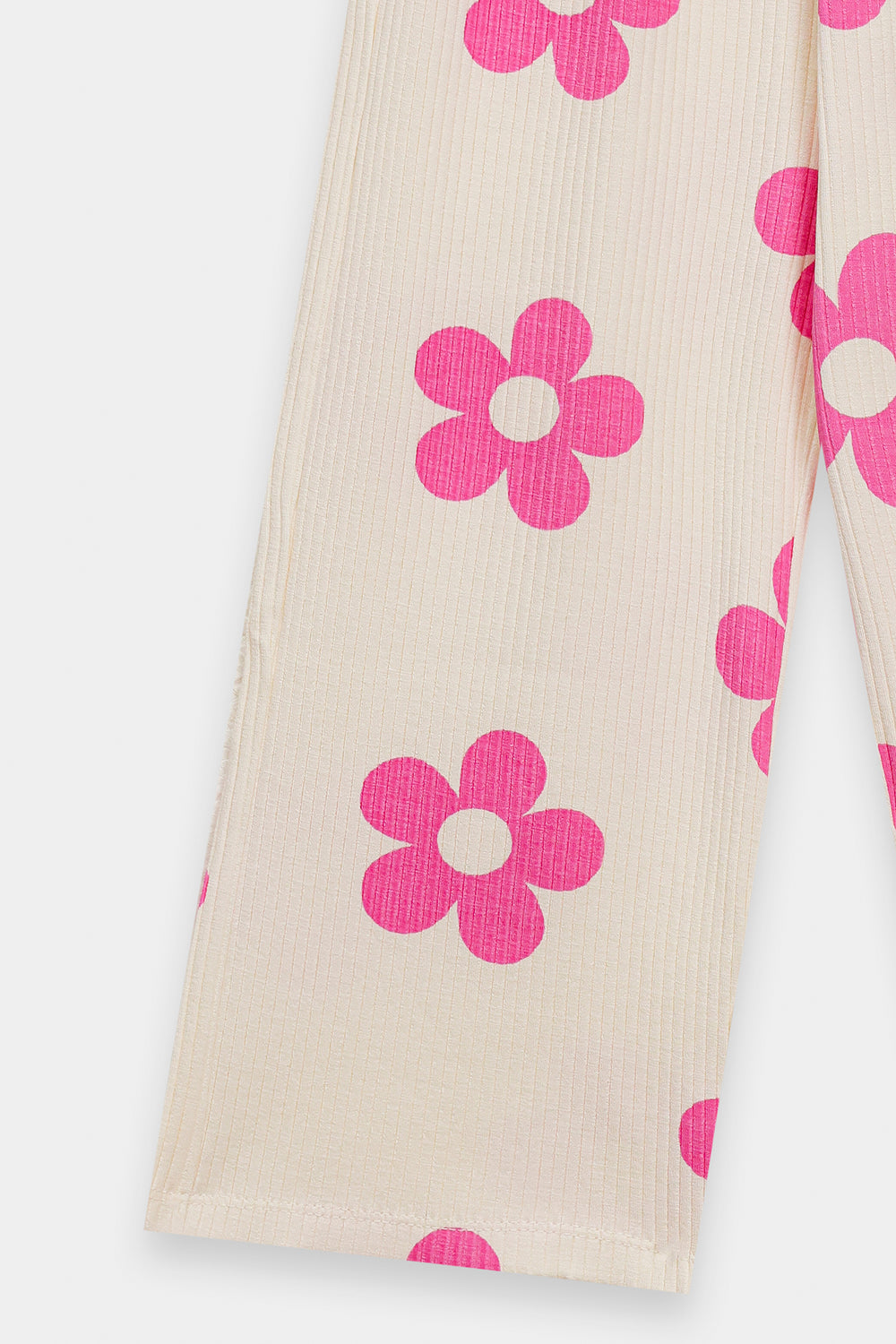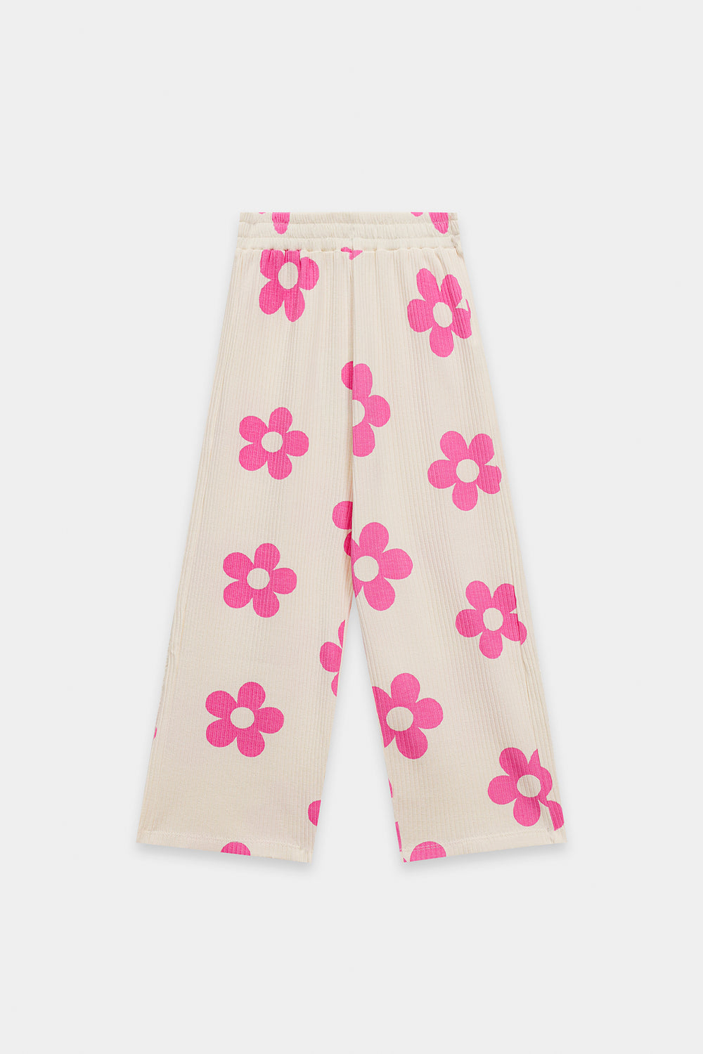 Effortless style meets comfort in these wide-leg trousers. The soft off-white fabric is adorned with a delicate floral print in contrasted pink color, creating a modern look that works for any occasion. Cut for a relaxed fit, they give you plenty of room to move while keeping that trendy, flowing silhouette. Perfect for dressing up or down, these pants are a versatile addition to your wardrobe.