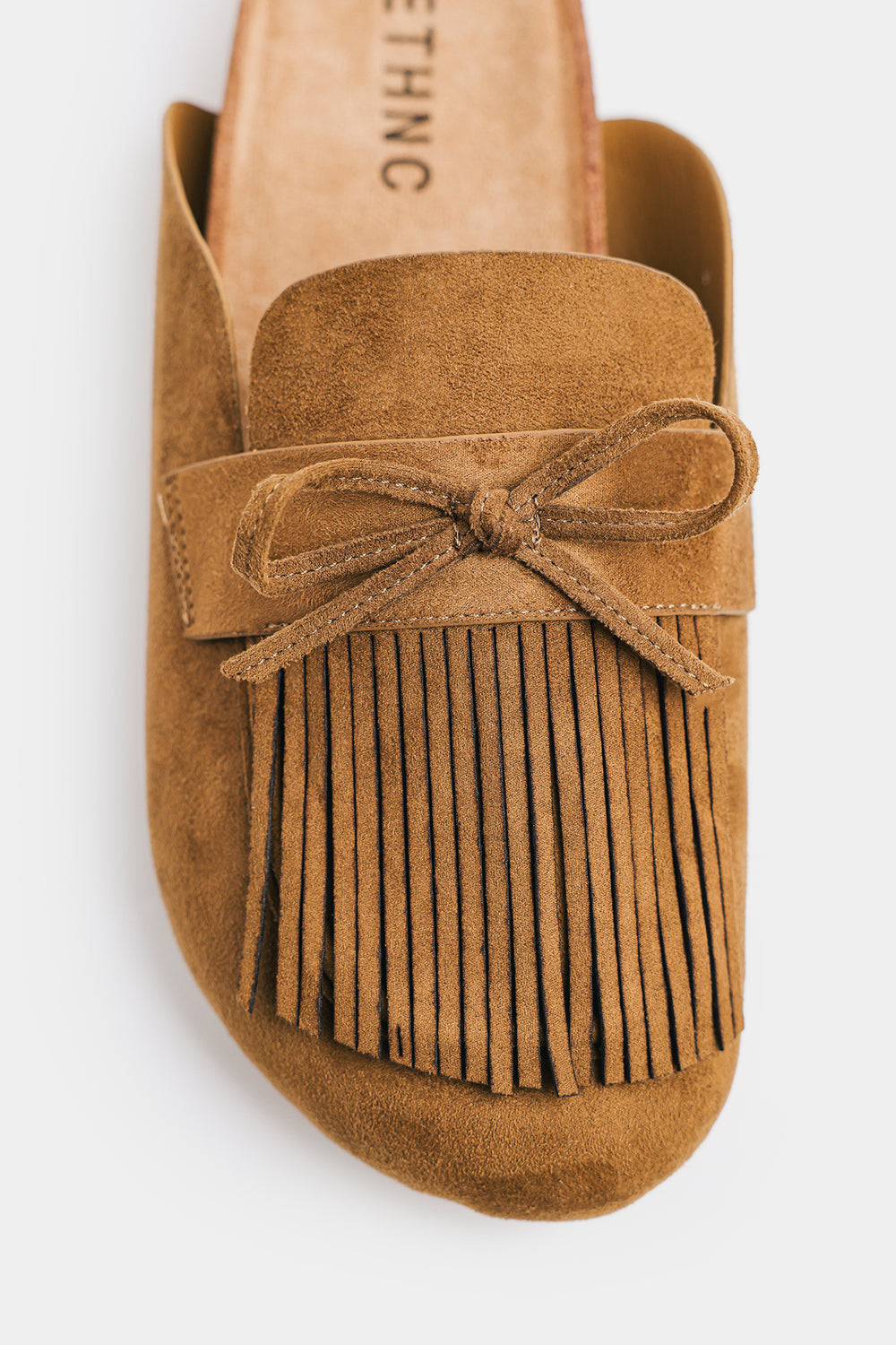 Elevate your everyday elegance with these sophisticated suede mules, crafted from premium suede with a refined matte finish. The slip-on design features a closed toe and open back for effortless styling, while layered fringe detailing across the vamp adds distinctive texture and movement. A delicate suede bow crowns the design, creating a polished focal point. The contoured footbed provides arch support and all-day comfort, making these mules as practical as they are chic. Perfect for transitioning from office to evening occasions.