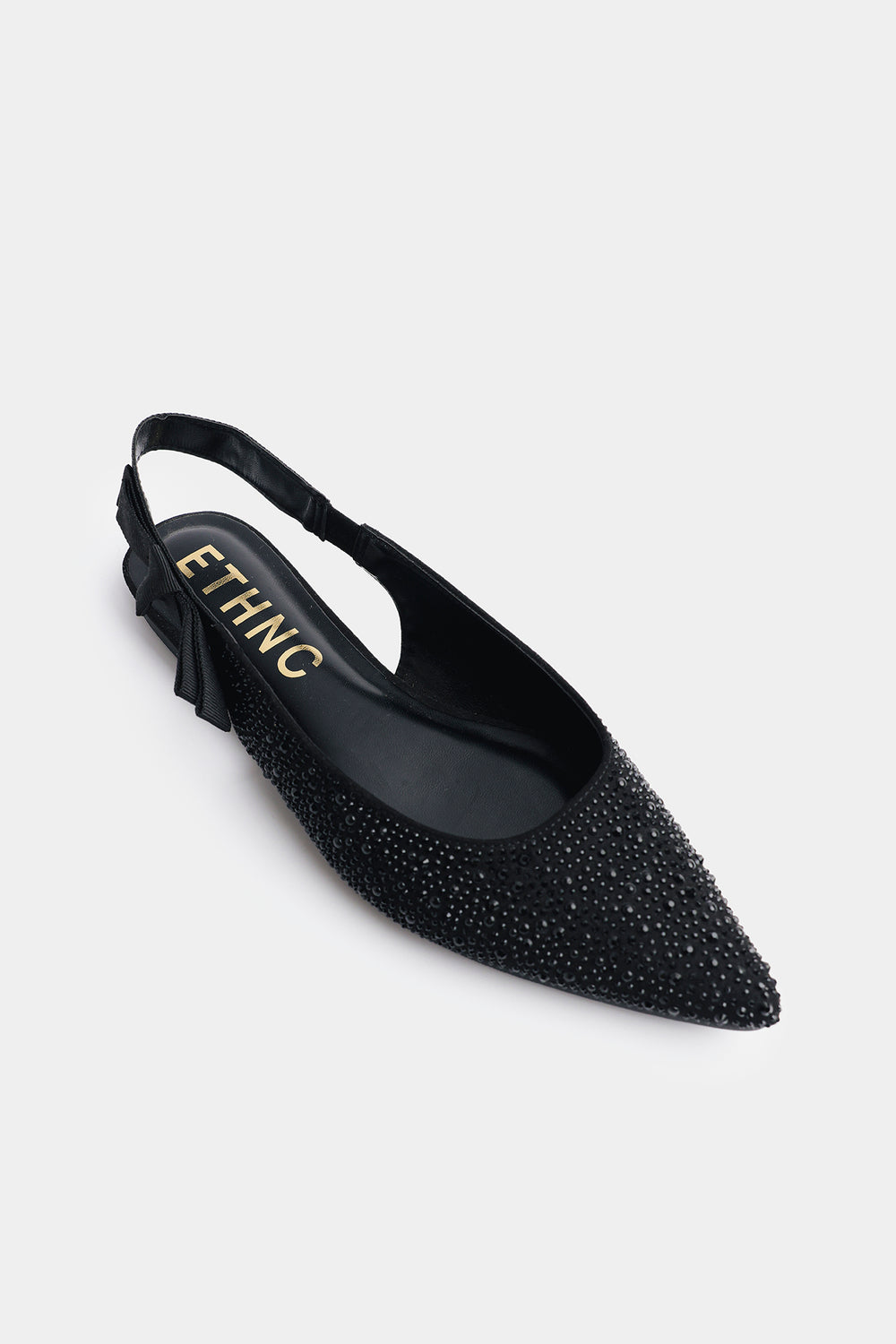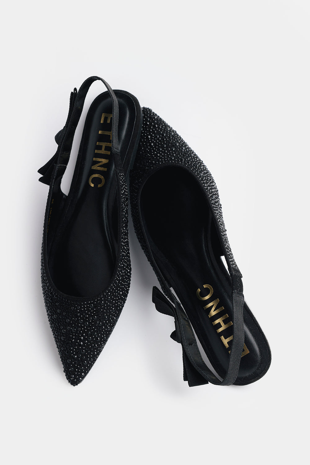 Step out in effortless sophistication with these stunning black-toned mules, meticulously crafted to add a touch of glamour to your evening or festive attire. These pointed-toe flats are exquisitely embellished with a dense arrangement of shimmering beads and delicate pearls, creating a rich, textured finish that catches the light from every angle. The design is perfected with a graceful slingback strap, featuring a charming bow detail on the side for a soft, feminine touch. Combining a sleek, comfortable fit with high-fashion artistry, these mules are the ideal choice for completing a refined look without sacrificing ease of movement.