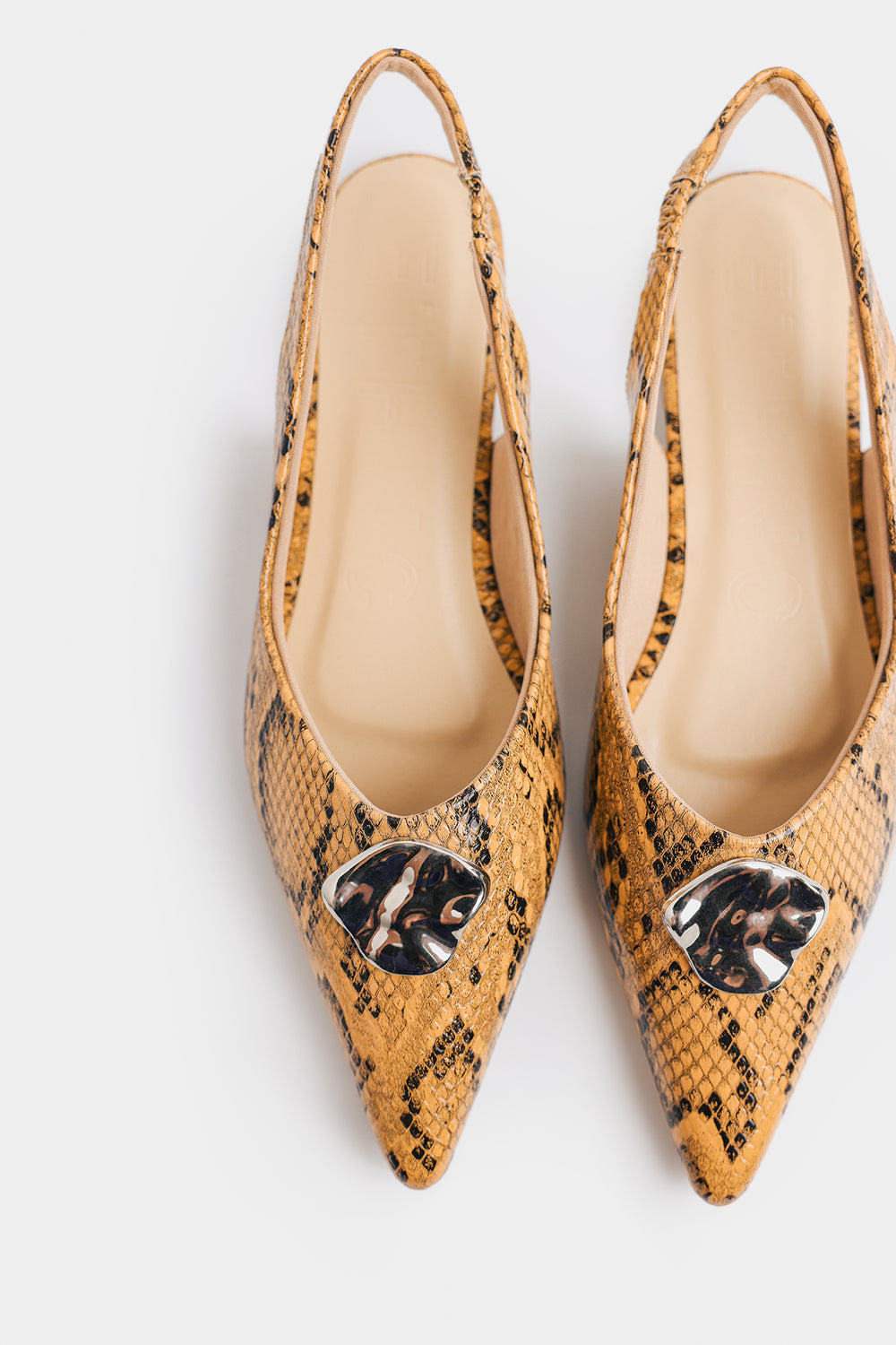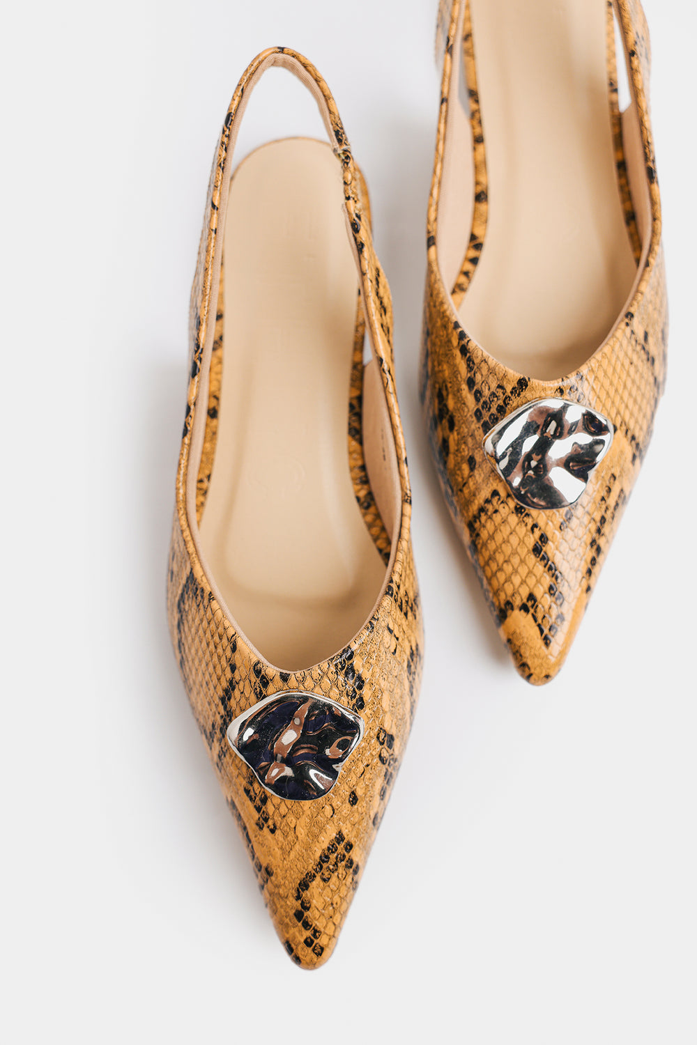 Step out in style with these eye-catching pumps! These pumps feature a beautiful snake pattern and scalloped edges, giving them a unique and elegant texture. A slingback strap ensures a secure and comfortable fit, while the pointed toe adds a touch of classic sophistication. Perfect for elevating any outfit, whether for a party or a special event.