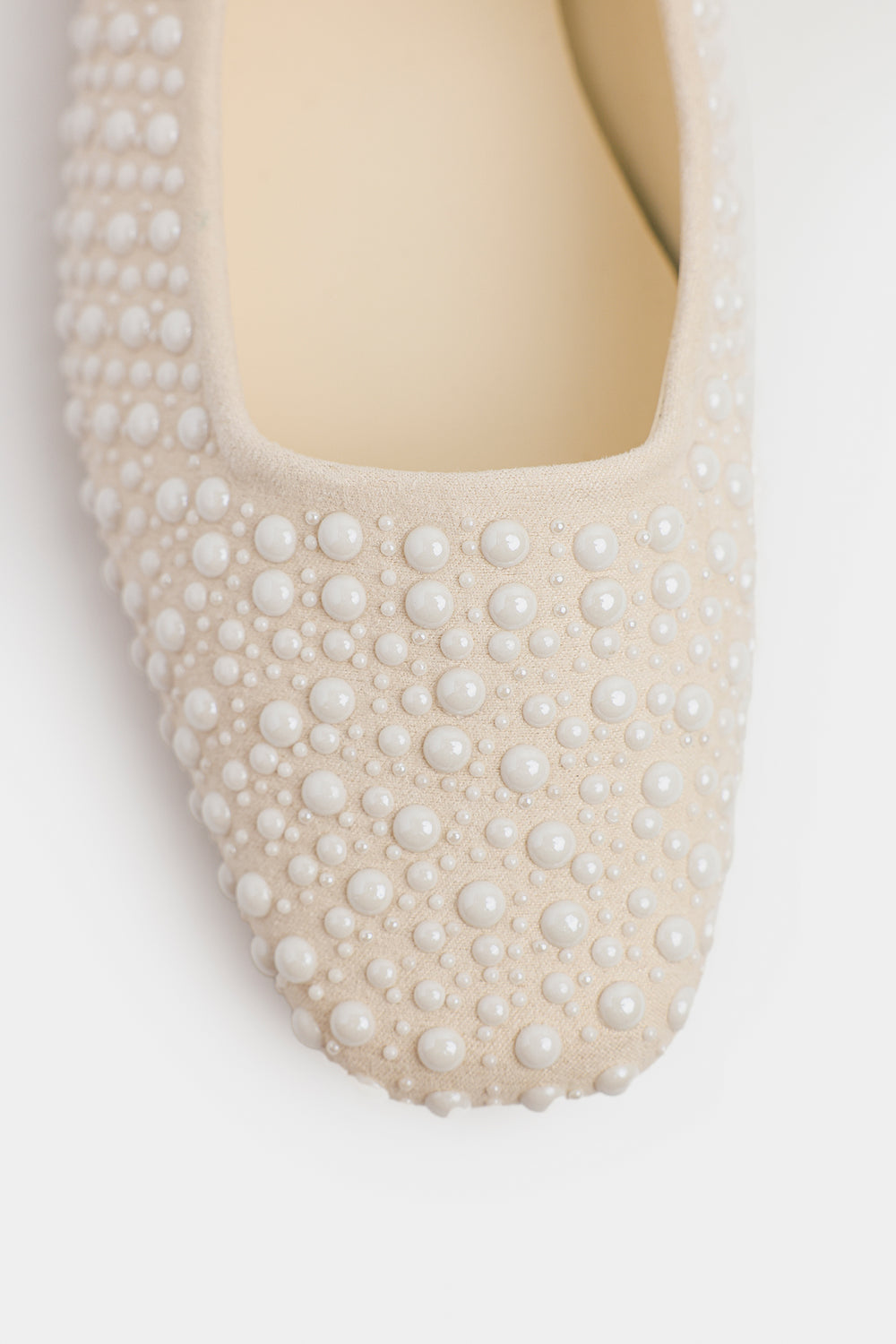 These vanilla color pumps feature a secure strap adorned with black beads, adding a sophisticated texture and subtle embellishment. Designed for both elegance and comfort, they offer a versatile option that complements formal and evening wear with refined style.