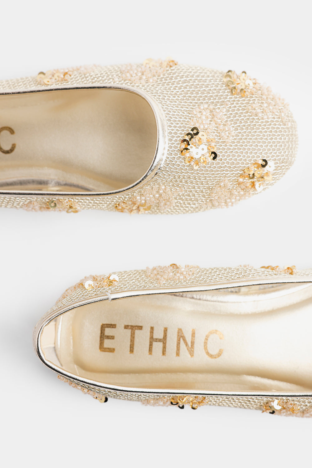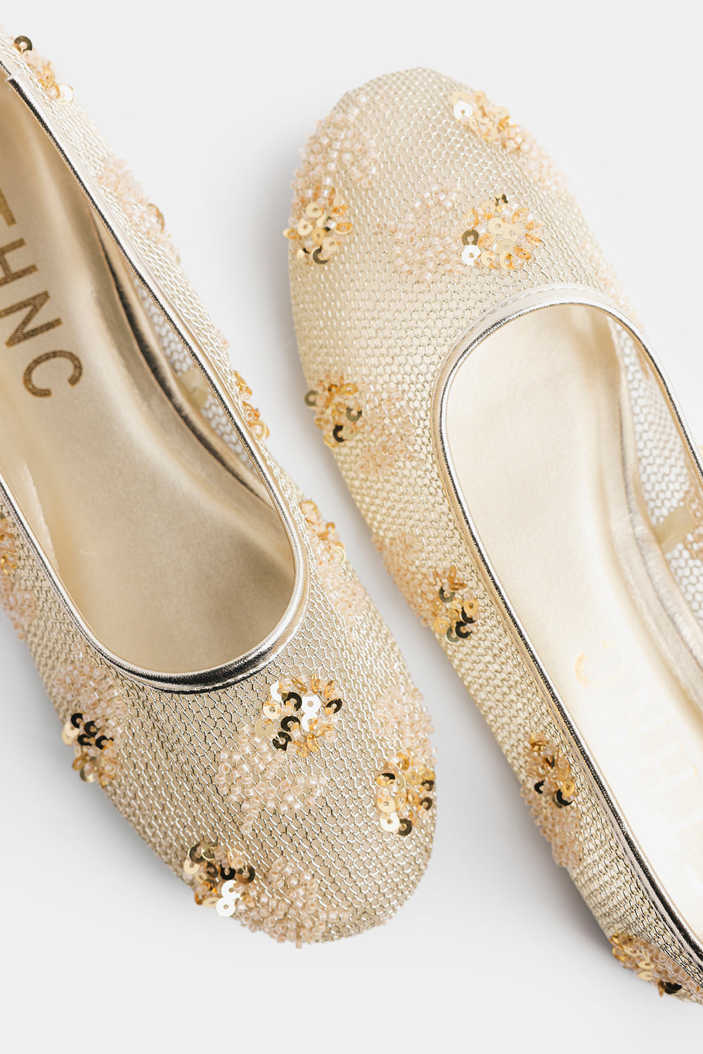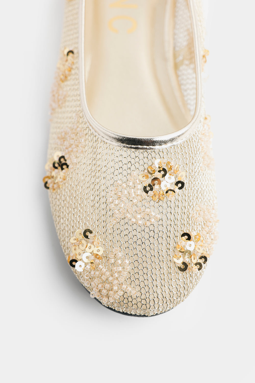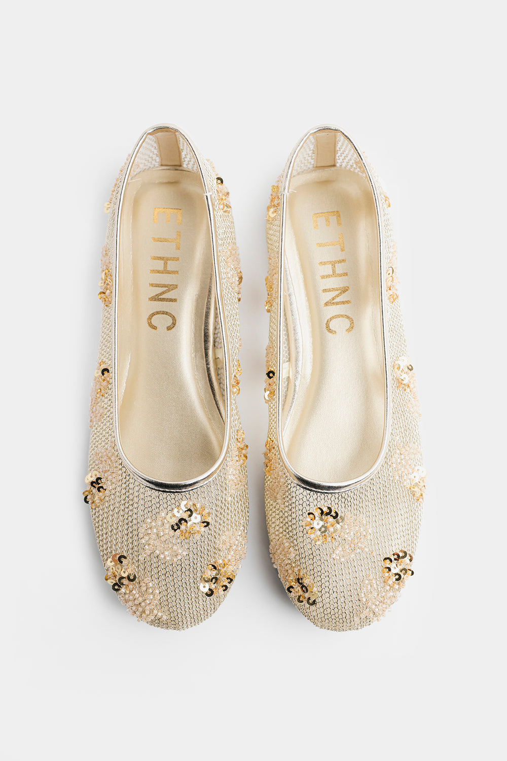 Elevate your ethnic wardrobe with these exquisite embellished pumps crafted with meticulous attention to detail. Adorned with intricate gold sequins and delicate beadwork, these traditional South Asian flats showcase stunning floral-inspired patterns that catch the light beautifully. Perfect for weddings, celebrations, or special occasions, they seamlessly transition from formal events to dressed-up casual looks. The luxurious metallic gold tones add instant glamour to any ensemble.