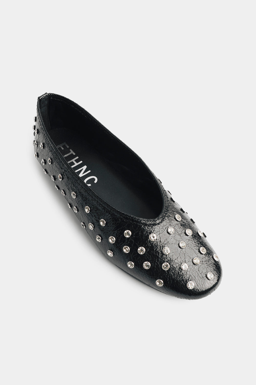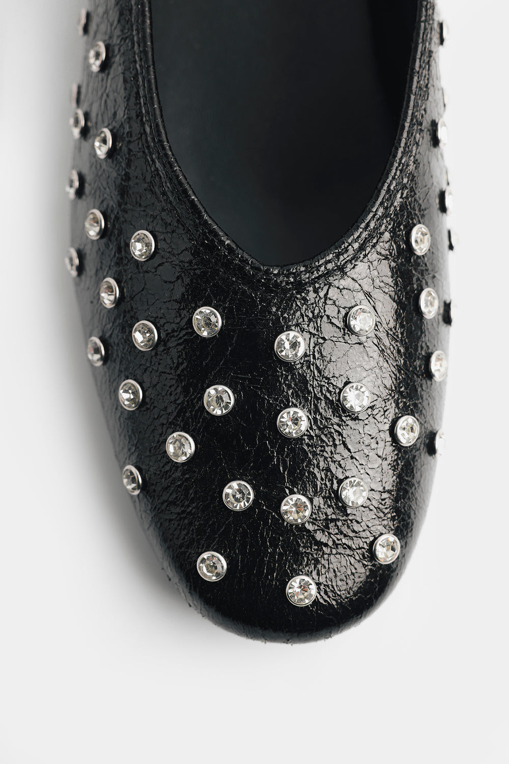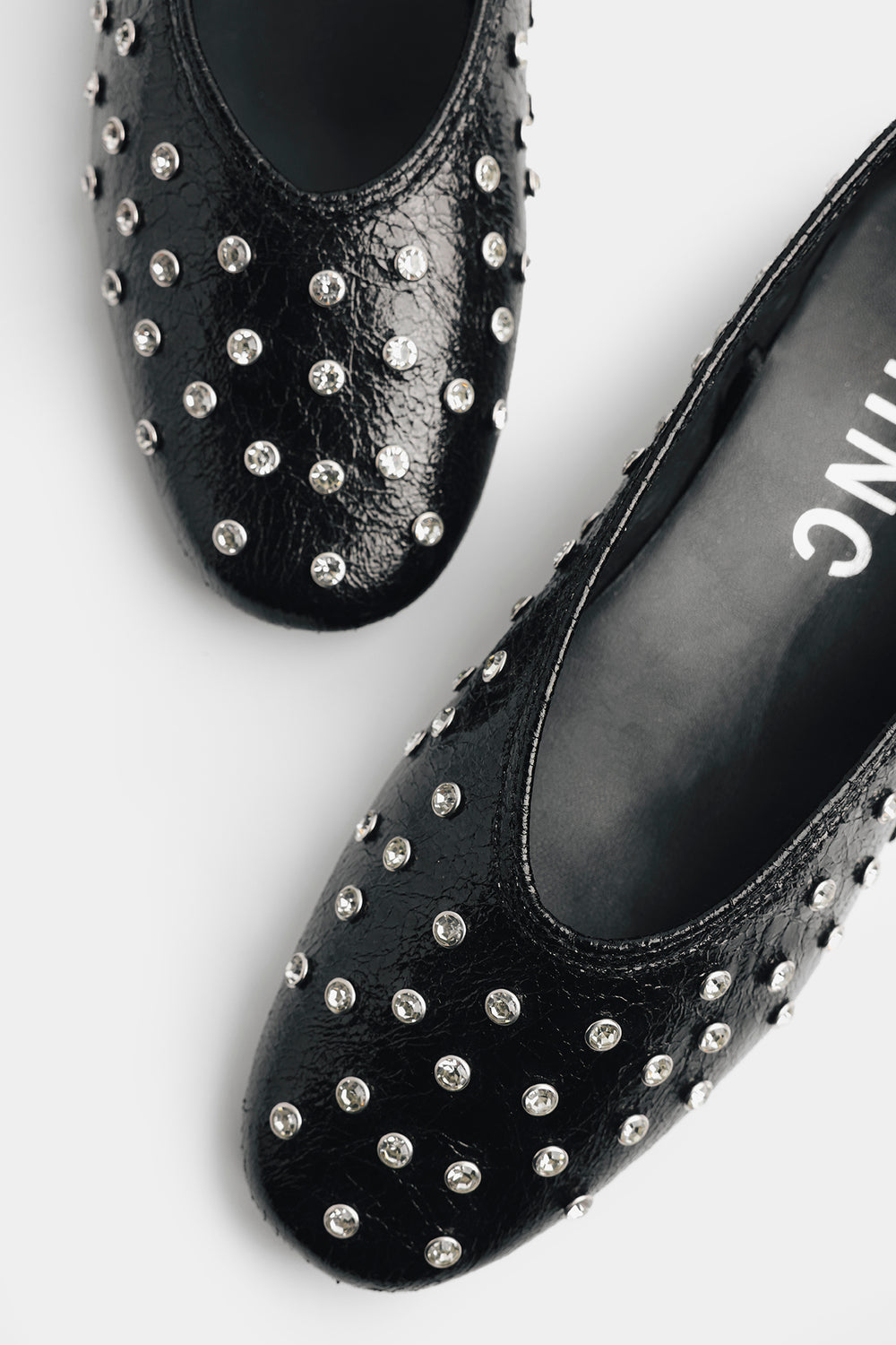 Add a touch of edgy elegance to your everyday look with these black ballet flats. Crafted with a textured finish, this pair is adorned with sleek metallic studs that bring just the right amount of shine. The classic slip-on silhouette ensures effortless wear, while the soft inner lining offers all-day comfort. Perfect for pairing with both casual denim and chic evening outfits, these flats are a versatile must-have for your wardrobe.