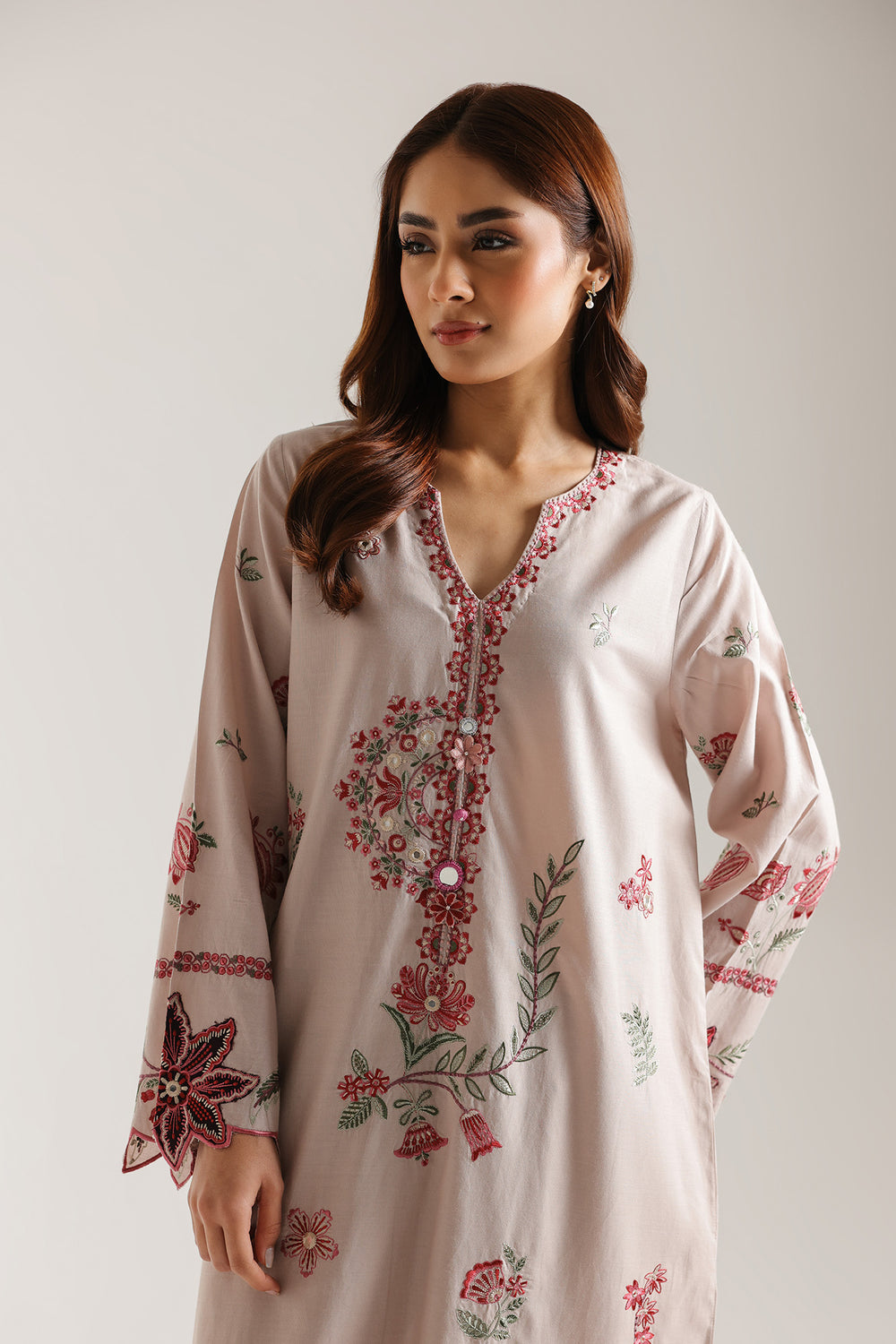 Discover timeless elegance with this exquisite embroidered suit, where traditional craftsmanship meets contemporary sophistication. The pristine yellow beige shirt showcases intricate floral embroidery in rich tones—green, maroon, pink—creating a captivating focal point. The neckline features delicate designs paired with refined embroidered detailing, elevating the design with refined artistry. Paired with gracefully proportioned straight fit trousers, this ensemble delivers both comfort and poise. A masterfully crafted piece that celebrates heritage while maintaining modern appeal.