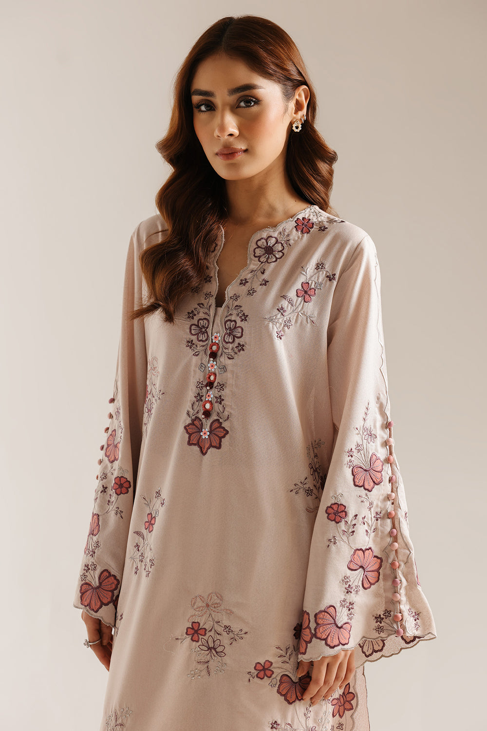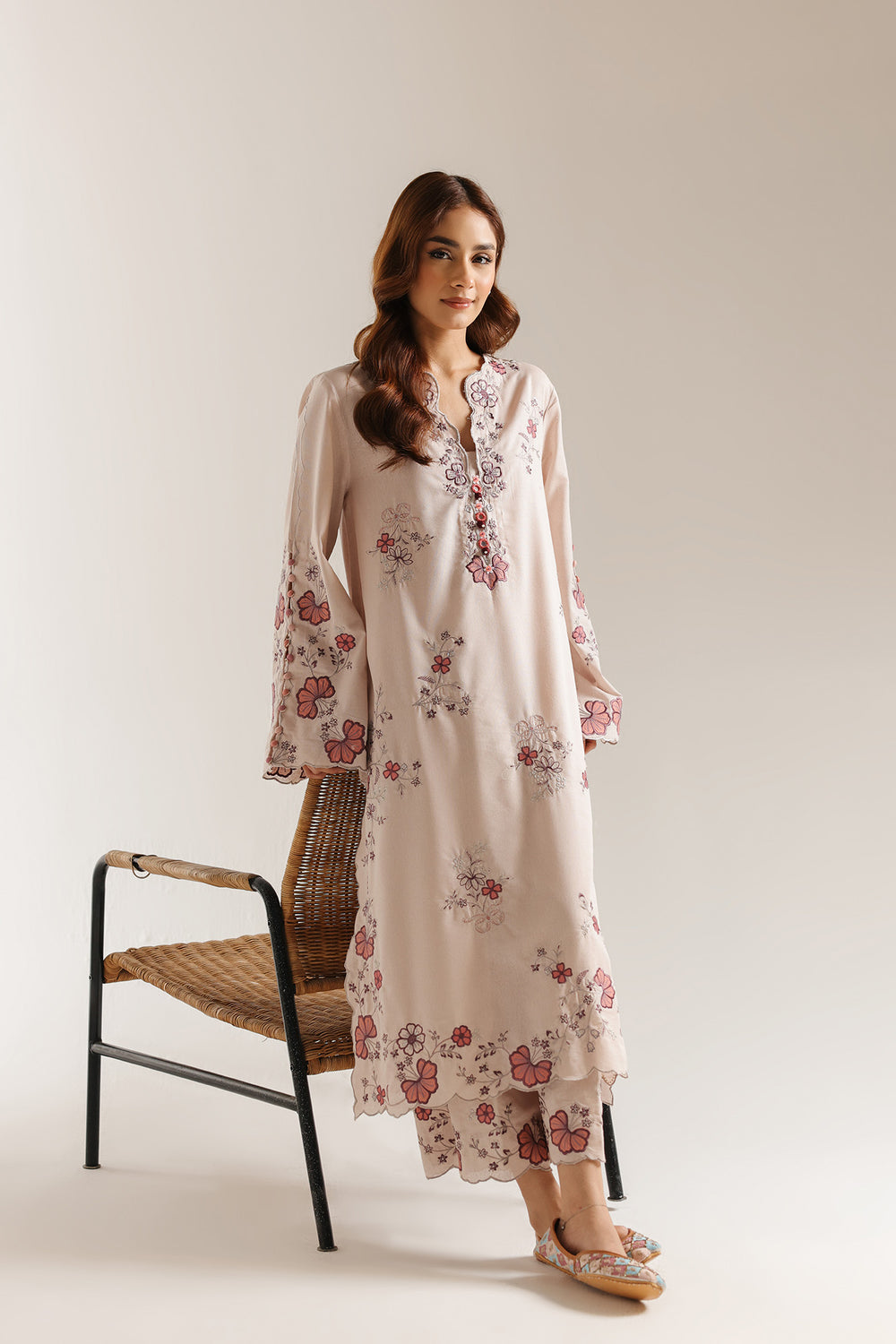 Elevate your wardrobe with this sophisticated embroidered suit, featuring a pale coral long shirt adorned with intricate embroidery work. The piece is thoughtfully paired with a straight pair of trousers, creating a refined silhouette perfect for both formal occasions and elevated everyday wear. The delicate embroidery detailing adds texture and visual interest, while the coordinated ensemble ensures effortless styling. Crafted for those who appreciate timeless elegance with contemporary flair, this suit combines traditional artistry with modern tailoring for a polished, put-together look.
