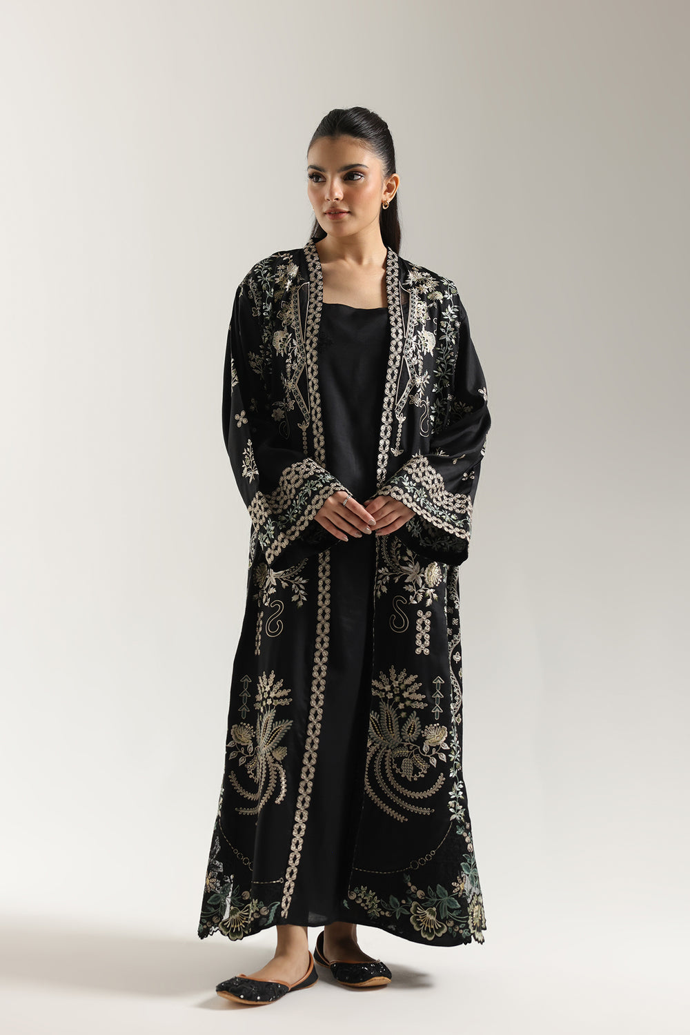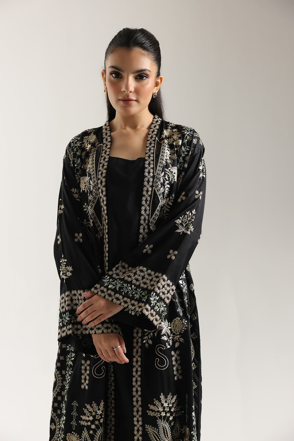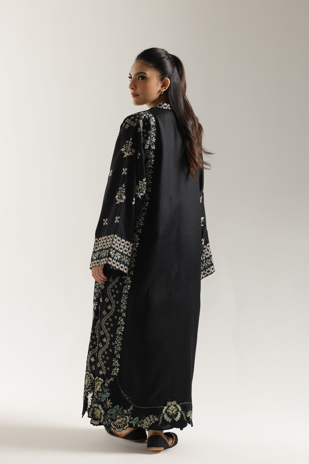 Elevate your wardrobe with this sophisticated embroidered suit, featuring a striking black base adorned with intricate white embroidery work. The gown-style shirt silhouette offers an elegant, flowing fit that combines traditional craftsmanship with contemporary design. Perfect for formal occasions, celebrations, or making a refined statement, this piece showcases meticulous detailing that reflects premium quality. The contrast between the deep black fabric and delicate white embellishments creates a timeless aesthetic that transcends seasonal trends. An investment piece that pairs seamlessly with traditional or modern styling.