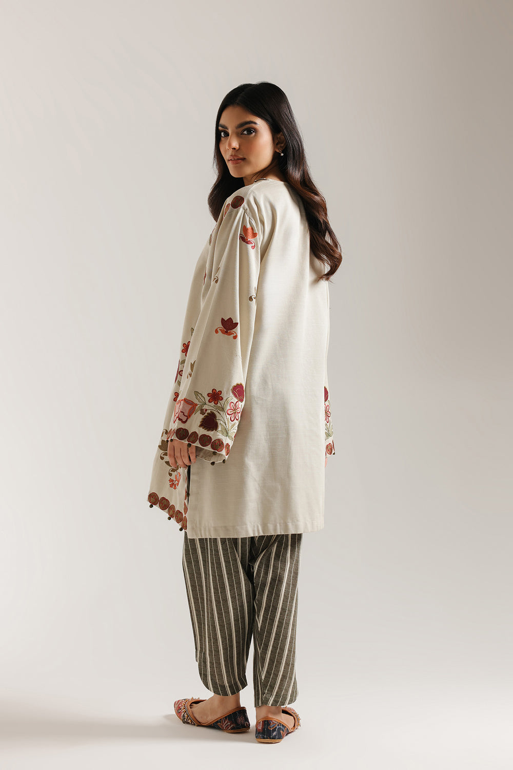 Elevate your wardrobe with this sophisticated embroidered suit featuring a refined V-neck pastel green shirt adorned with intricate embroidery work. Paired with a coordinating printed shalwar showcasing elegant line detailing, this ensemble delivers timeless elegance with contemporary flair. Perfect for both casual gatherings and formal occasions, the soft pastel palette ensures versatility while the detailed craftsmanship speaks to quality construction. An ideal choice for those seeking understated luxury in traditional wear.