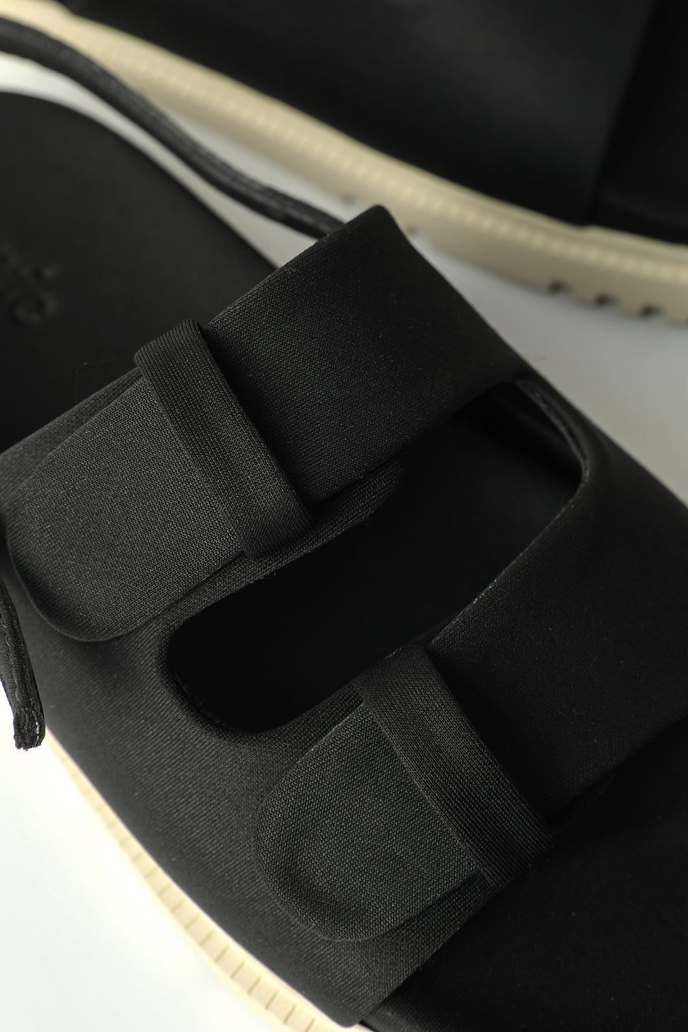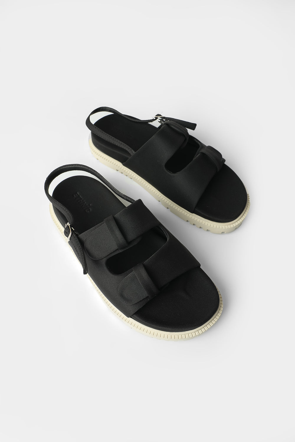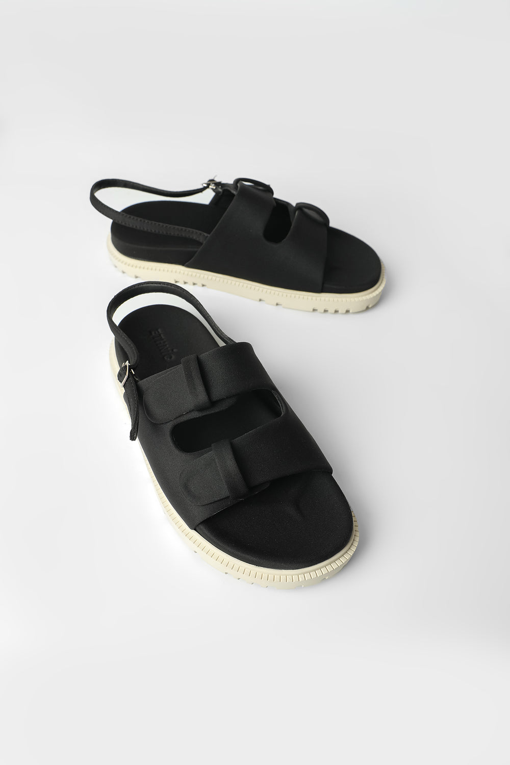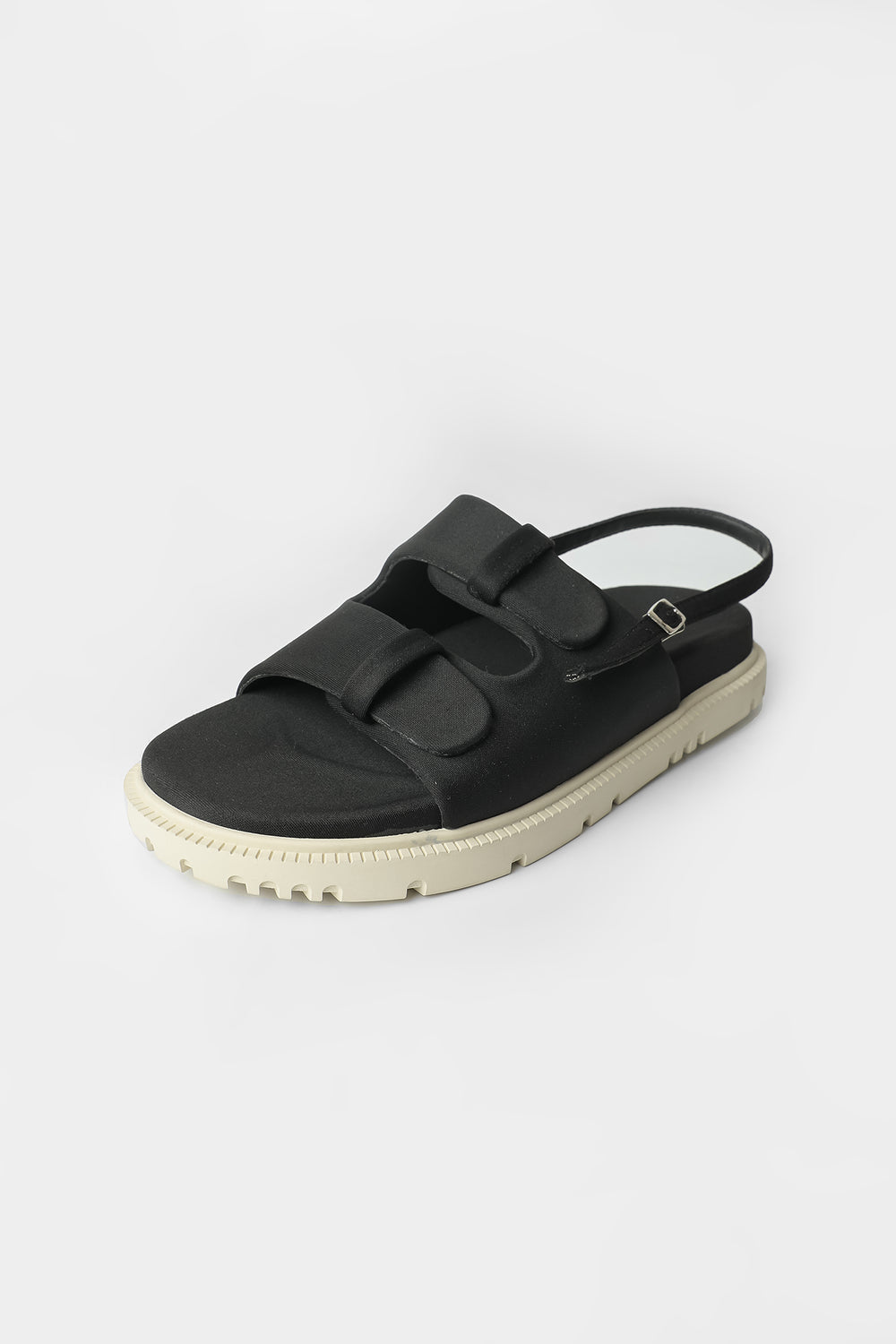 Evoking sophisticated yet comfort take on footwear, this dazzling sandal is crafted in a classy silhouette with straps at front and buckle lock at back strap. Rendered in a classic black shade, this trendy sandal is a fashion statement for happening gatherings.