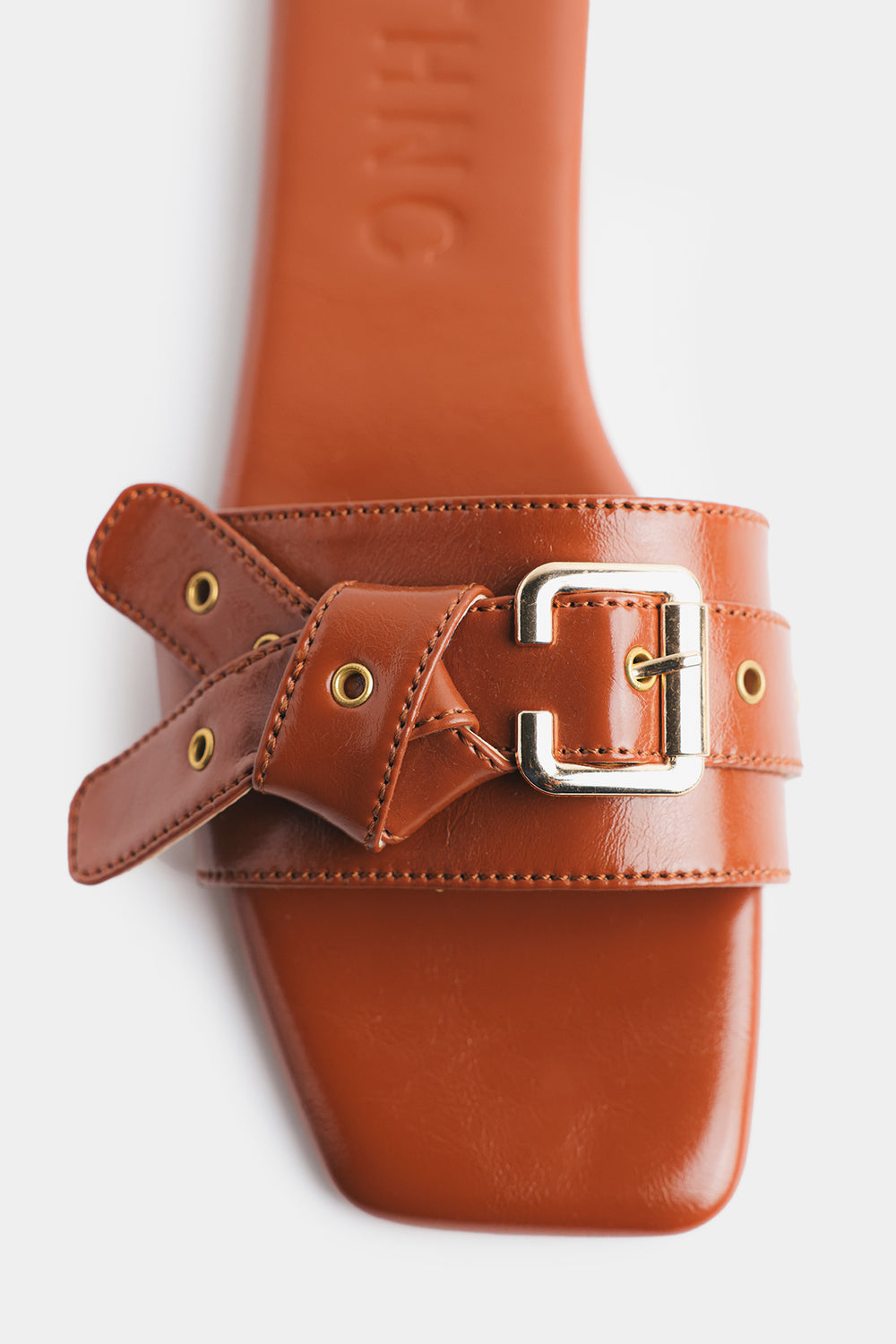 Add a touch of timeless, artisanal flair to your footwear collection with these tan-colored slides, featuring an Knot design. The front of the sandal is defined by buckle interlacing straps. The square-toe silhouette adds a contemporary edge, while the flat, cushioned footbed delivers lasting comfort. These versatile sandals are an excellent choice for pairing with a printed kurti or casual denim to elevate your everyday daytime look.