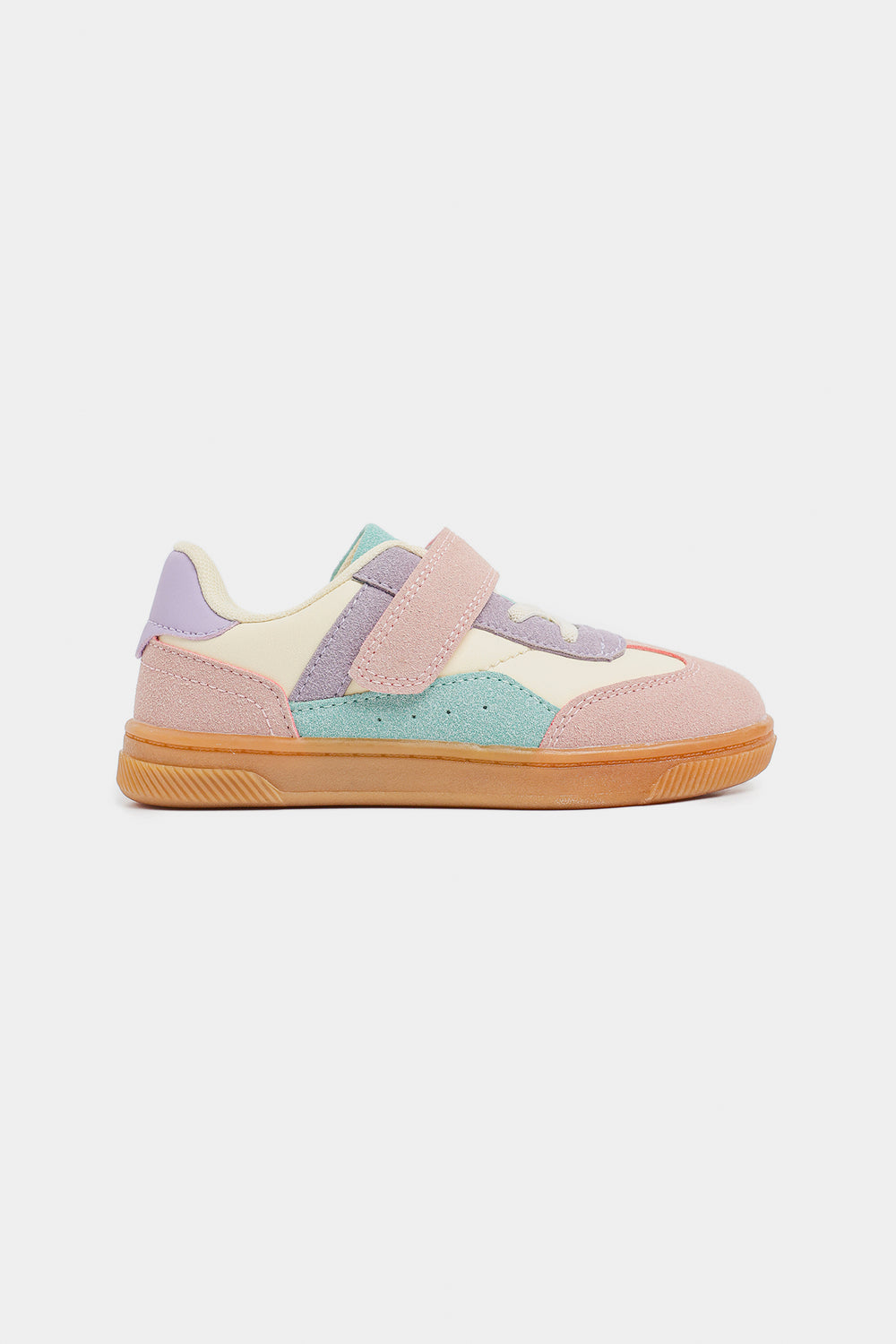 These ice pink kids' sneakers feature subtle light purple and light blue accents, creating a soft, charming palette perfect for young style. Crafted for comfort and durability, they support active play while adding a delicate, fresh look to any child's footwear collection.