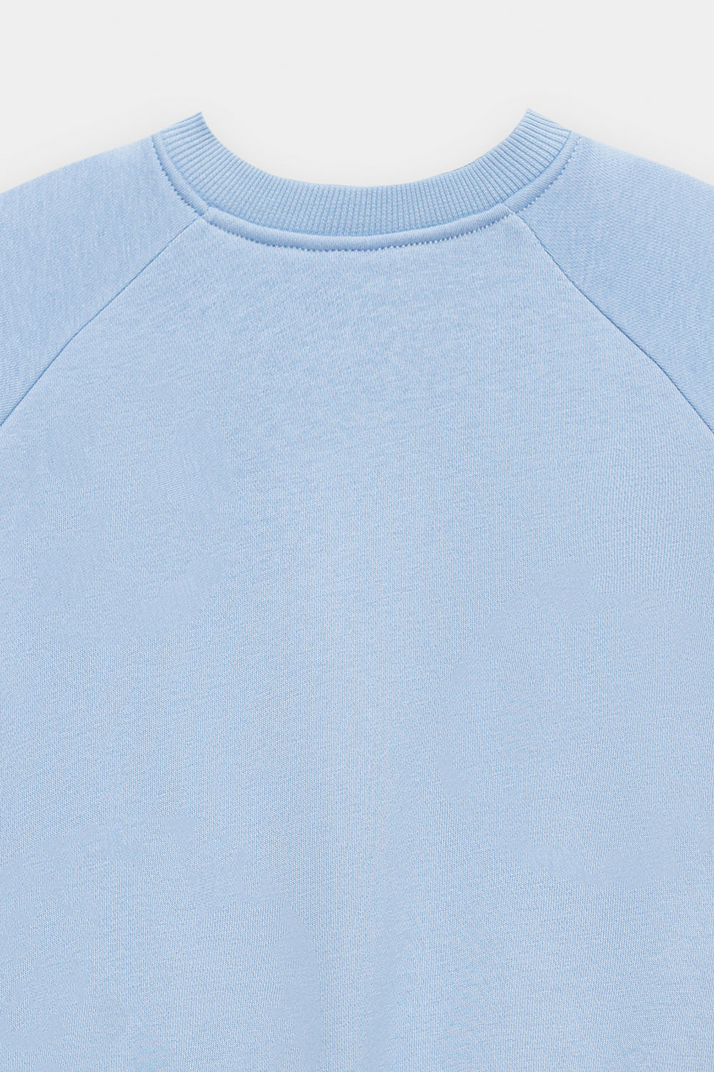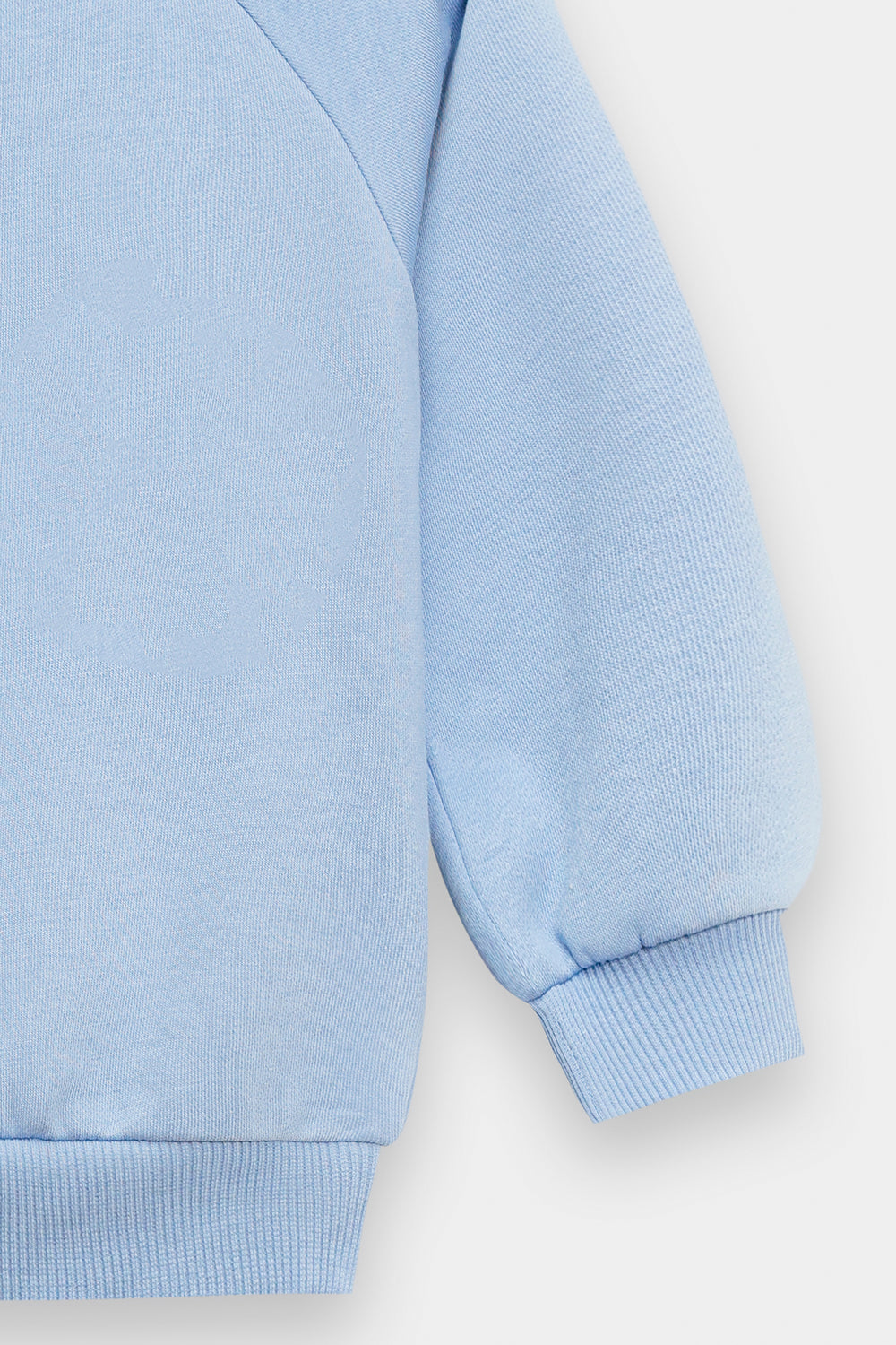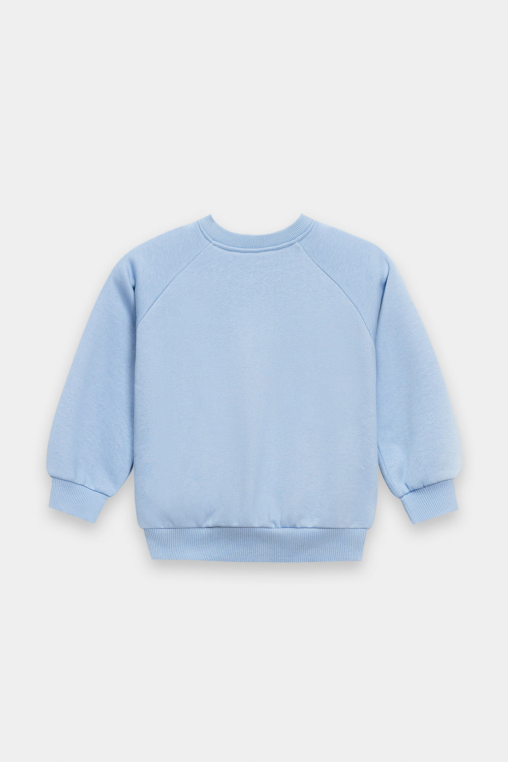 Brighten her wardrobe with the whimsical charm of this blue floral printed sweatshirt. This delightful piece is crafted from a soft, cozy fabric in a crisp baby blue shade, ensuring both warmth and comfort for everyday wear. Featuring relaxed, full sleeves with ribbed cuffs and a classic ribbed hemline, this sweatshirt offers a sweet and playful silhouette that pairs perfectly with her favorite jeans or leggings.