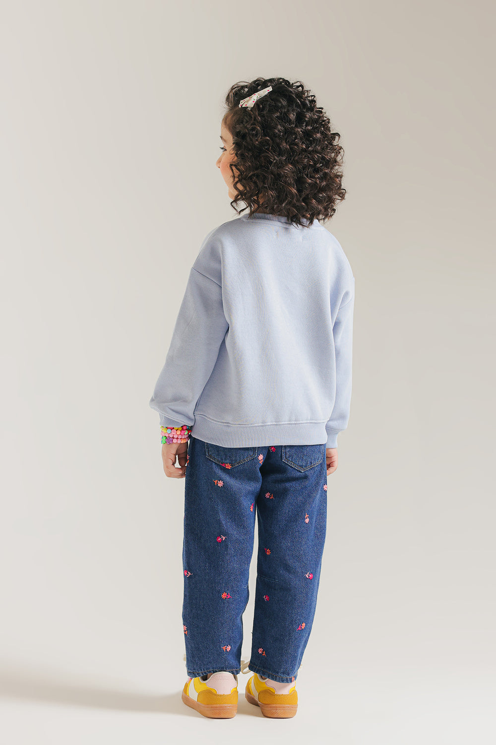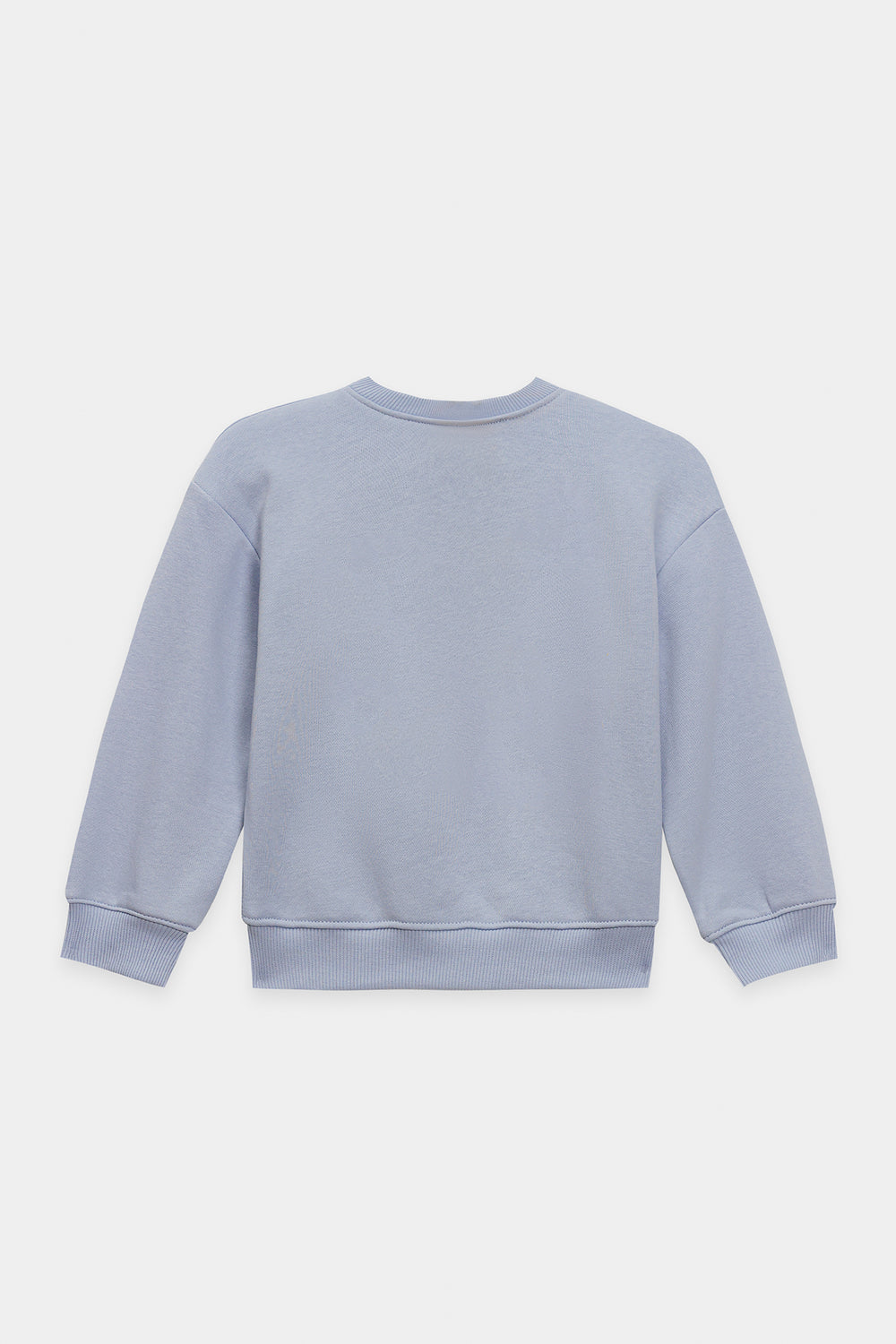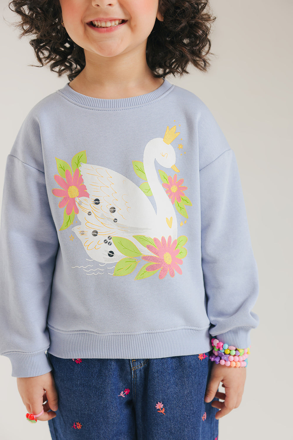 This contemporary sweatshirt combines refined aesthetics with everyday comfort, featuring a an adorable duck portrait printed in vibrant colors layered on a dusty blue canvas. With its relaxed fit and ribbed neck, sleeves opening and hem, it's an ideal layering piece for the colder months, offering both style and practicality for young wearers seeking a versatile wardrobe essential.