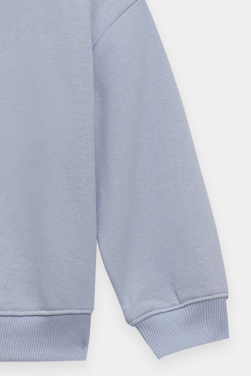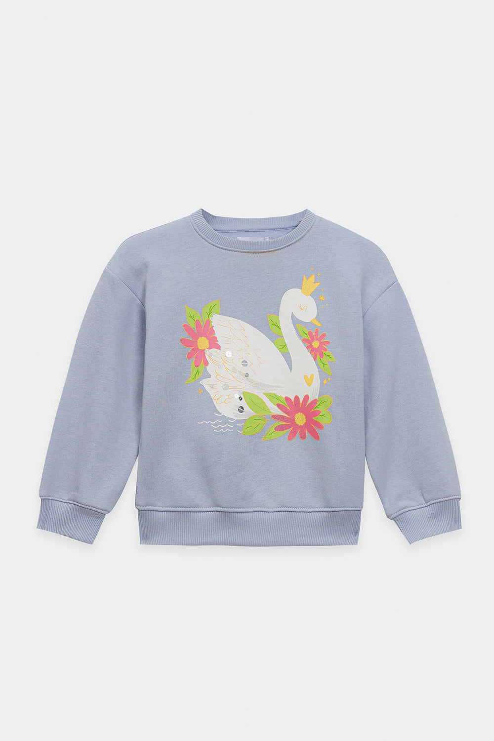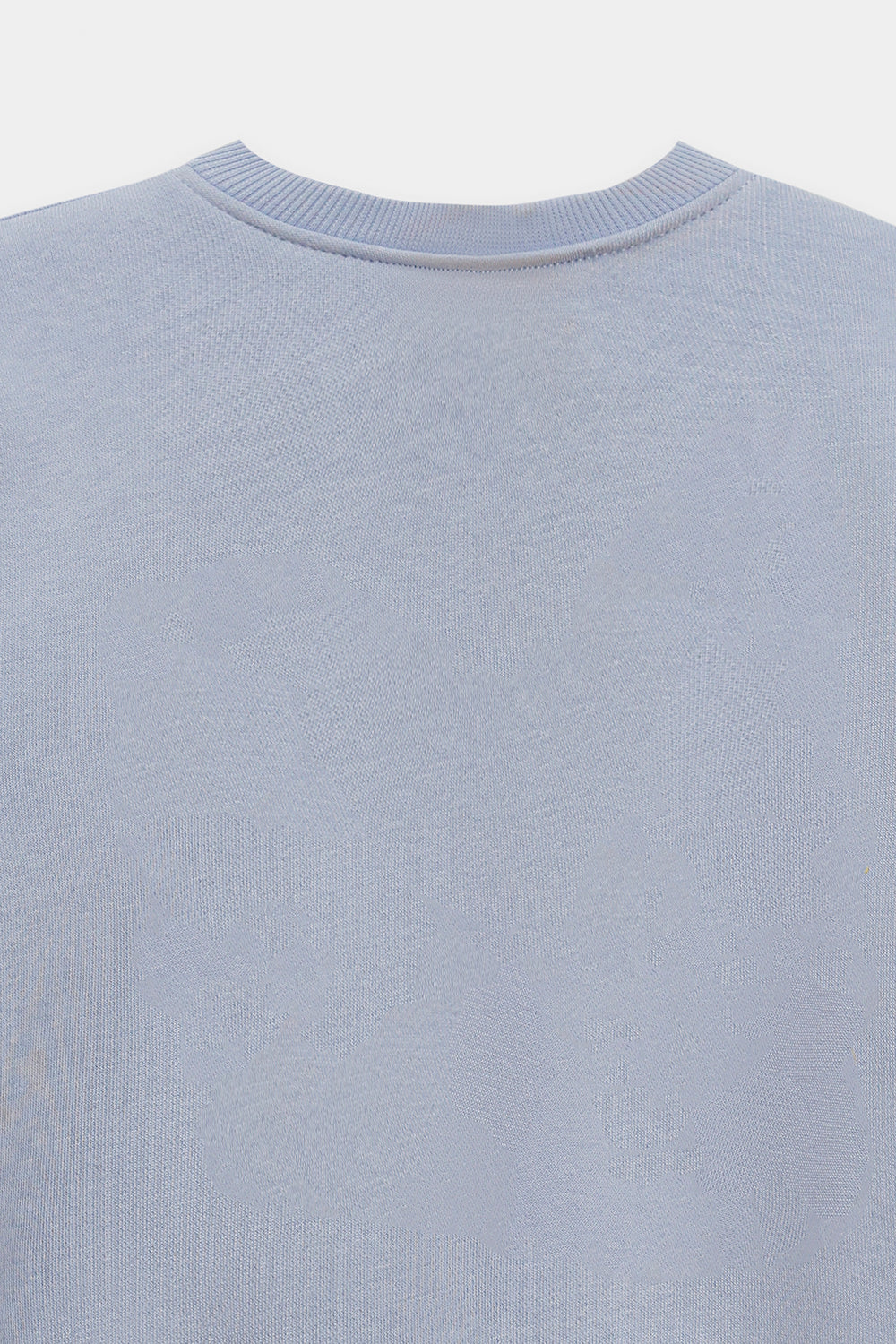 This contemporary sweatshirt combines refined aesthetics with everyday comfort, featuring a an adorable duck portrait printed in vibrant colors layered on a dusty blue canvas. With its relaxed fit and ribbed neck, sleeves opening and hem, it's an ideal layering piece for the colder months, offering both style and practicality for young wearers seeking a versatile wardrobe essential.