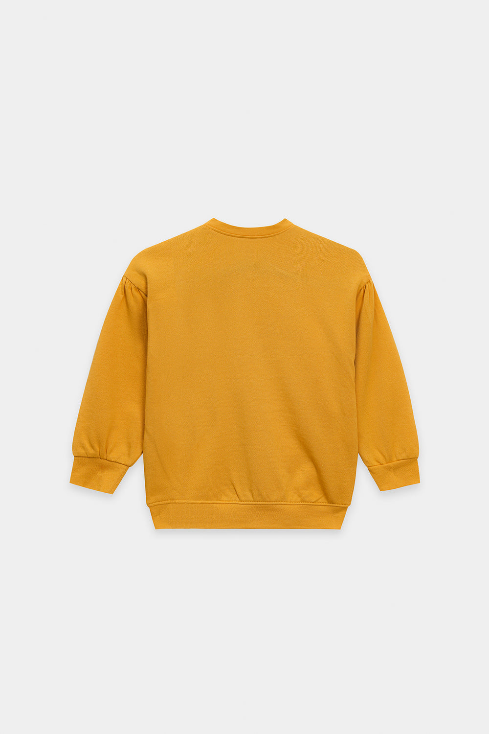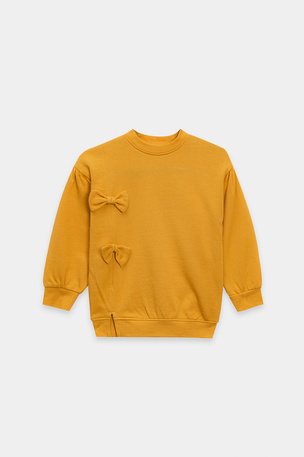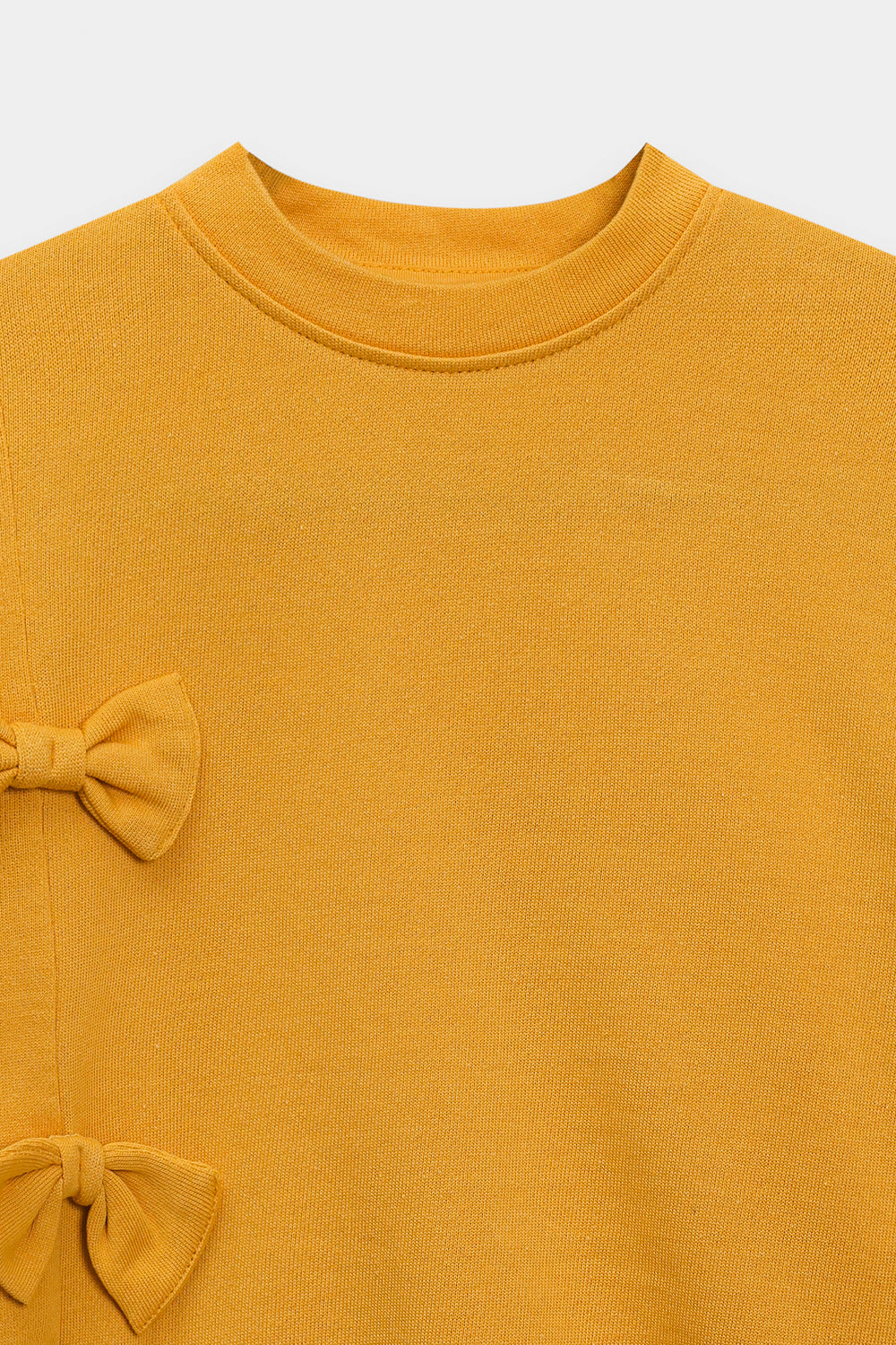 Brighten your child's wardrobe with this cheerful yellow sweatshirt, thoughtfully designed with two decorative bows adorning the right side. Crafted for comfort and style, this piece combines playful details with quality construction, making it perfect for everyday wear. The soft fabric ensures all-day comfort, while the charming bow embellishments add a touch of personality. Ideal for kids who love standing out with a pop of color and whimsical flair.