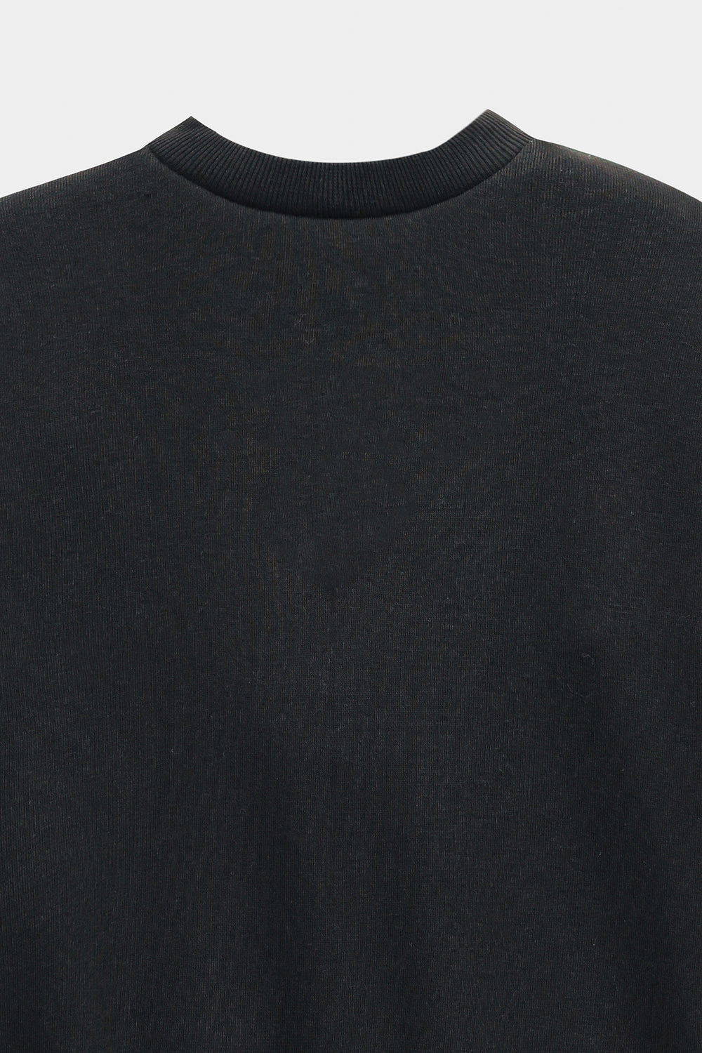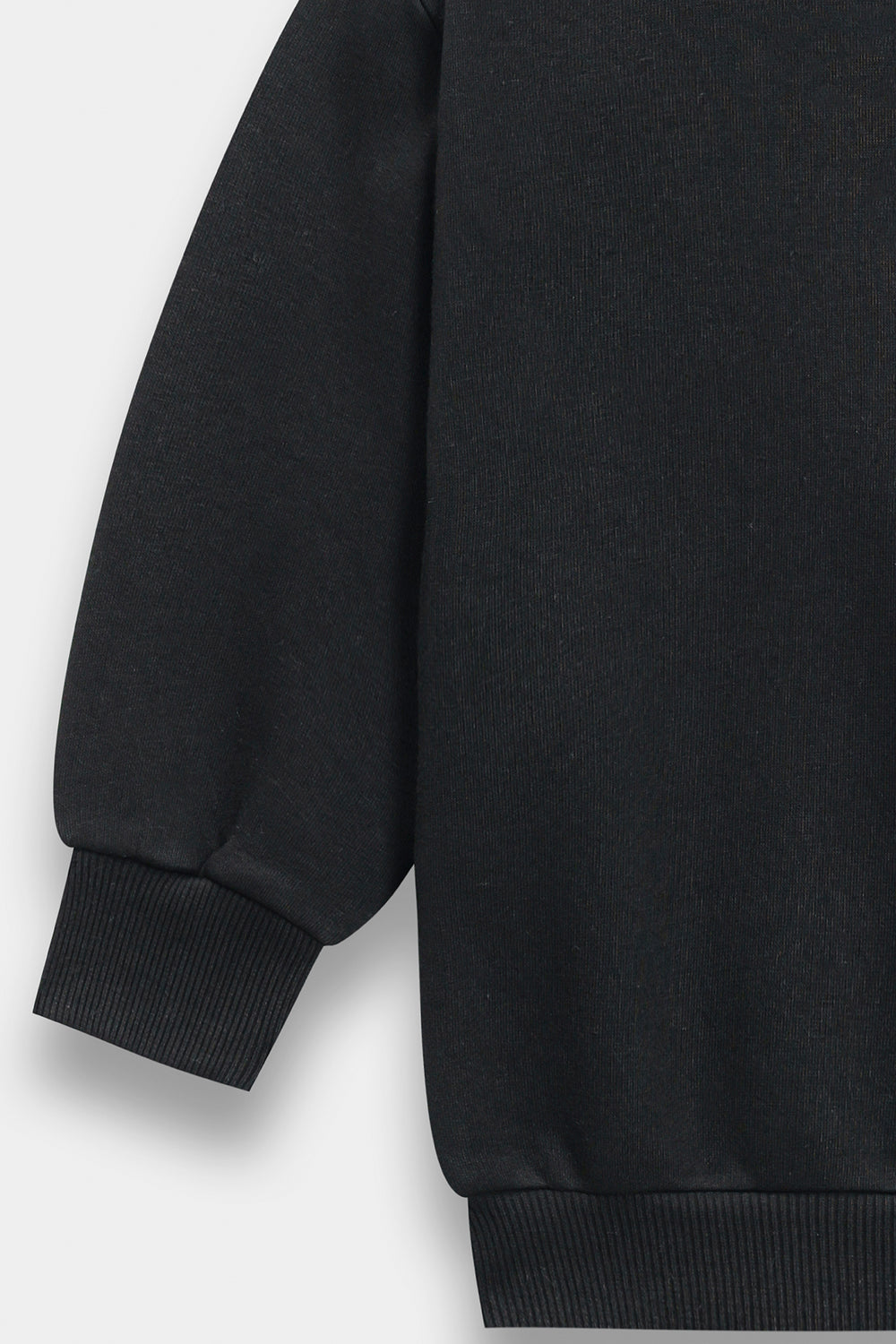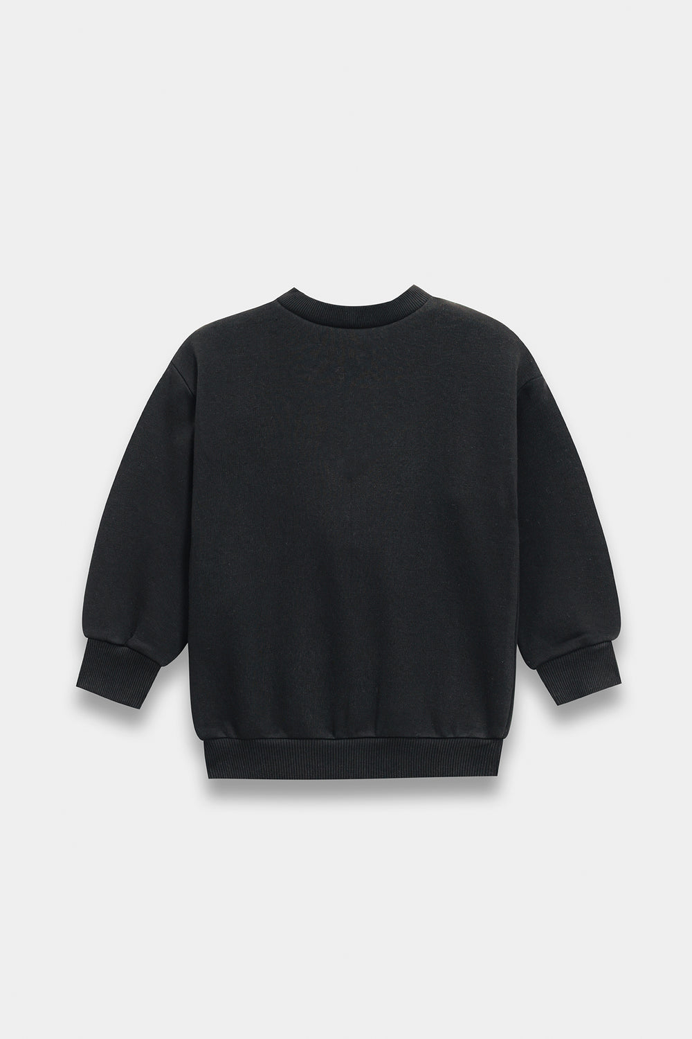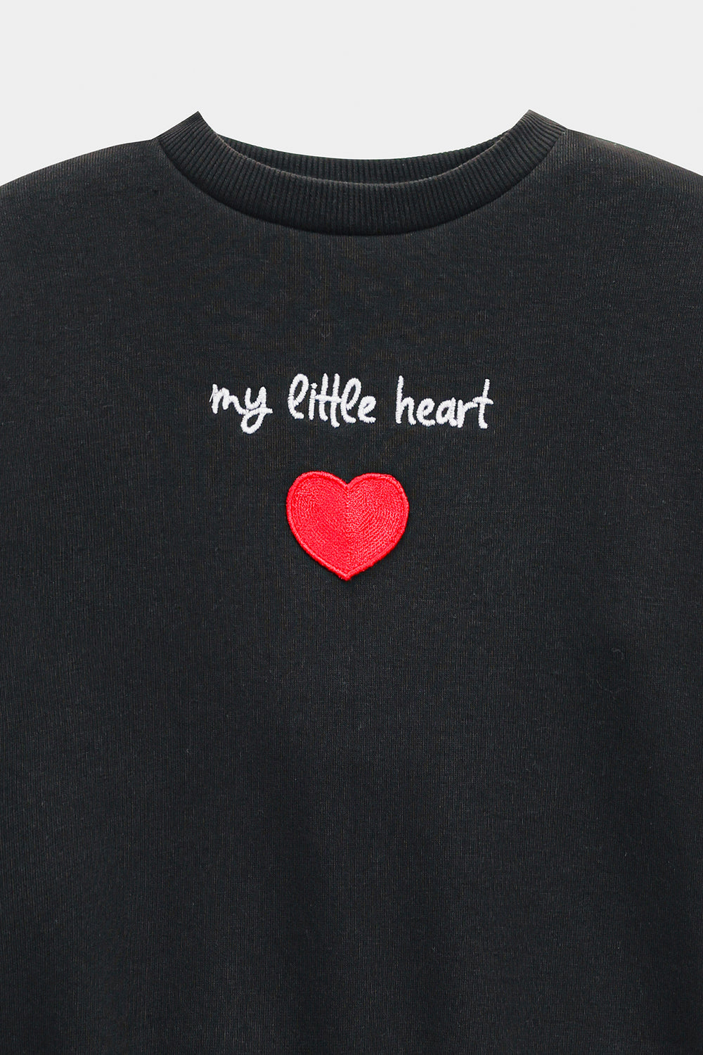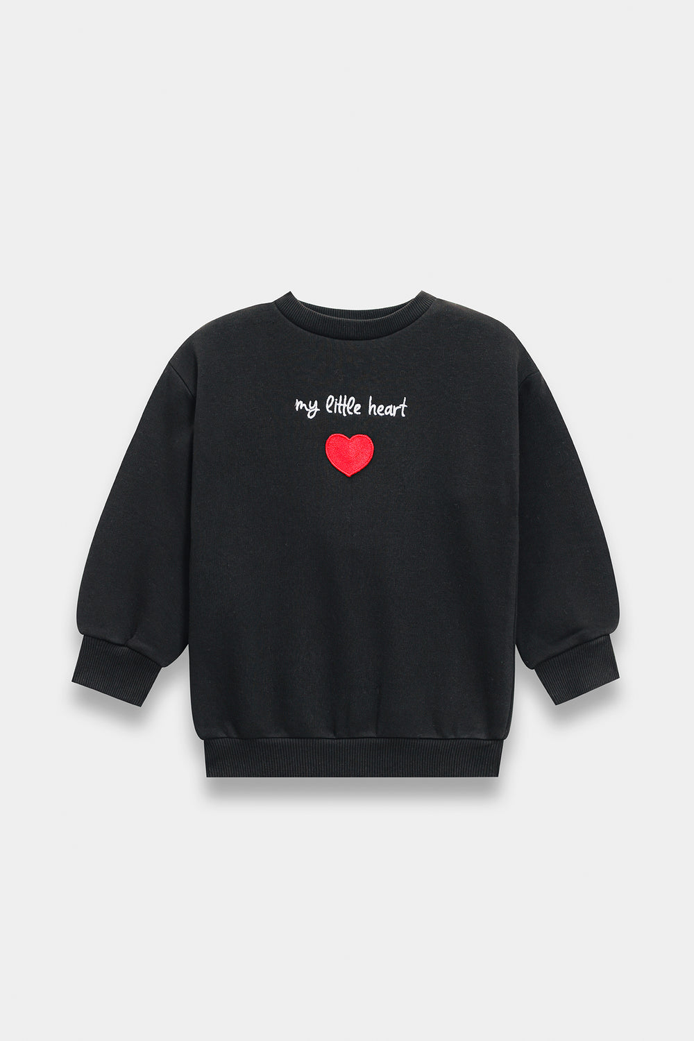 Embrace effortless comfort with this classic crewneck sweatshirt, designed with a relaxed drop shoulder silhouette for that coveted oversized feel. Ribbed cuffs and hem provide a refined finish while ensuring a secure fit. The standout feature is its charming handwritten-style "my little heart" graphic paired with a textured, vibrant red heart that pops beautifully against the black fabric. Simple yet striking, this design makes a subtle statement without compromising on style. Perfect for casual everyday wear, layering, or cozy moments at home. A versatile essential that combines comfort with character.