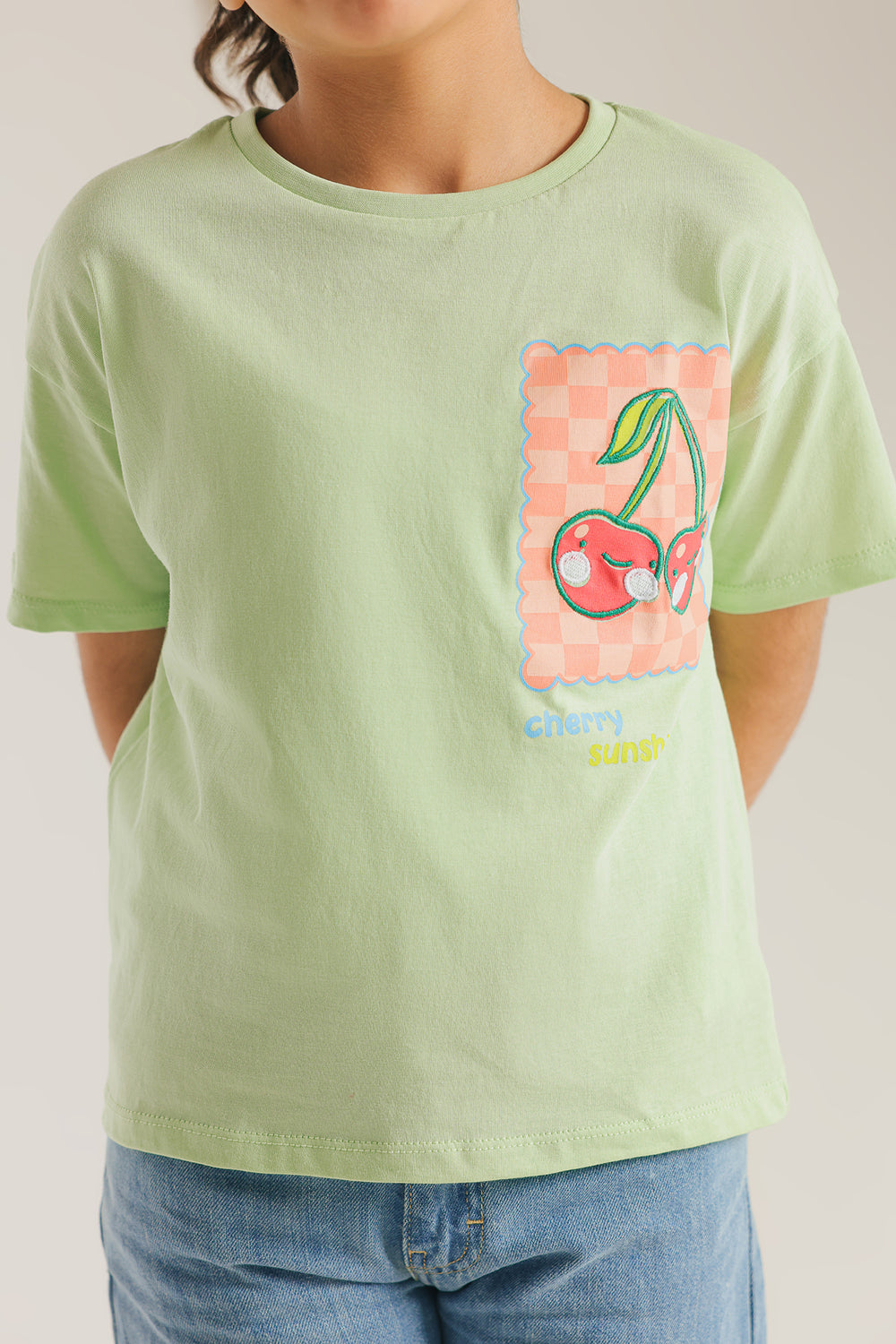Enjoy the sweet life in this effortlessly cool tee, a perfect blend of comfort and playful style. The soft, refreshing green fabric provides a vibrant backdrop for a unique chest pocket graphic featuring two juicy cherries and a trendy checkered pattern. The "CHERRY SUNSHINE" text adds an extra touch of charm, making this relaxed-fit top a go-to choice for any casual adventure.