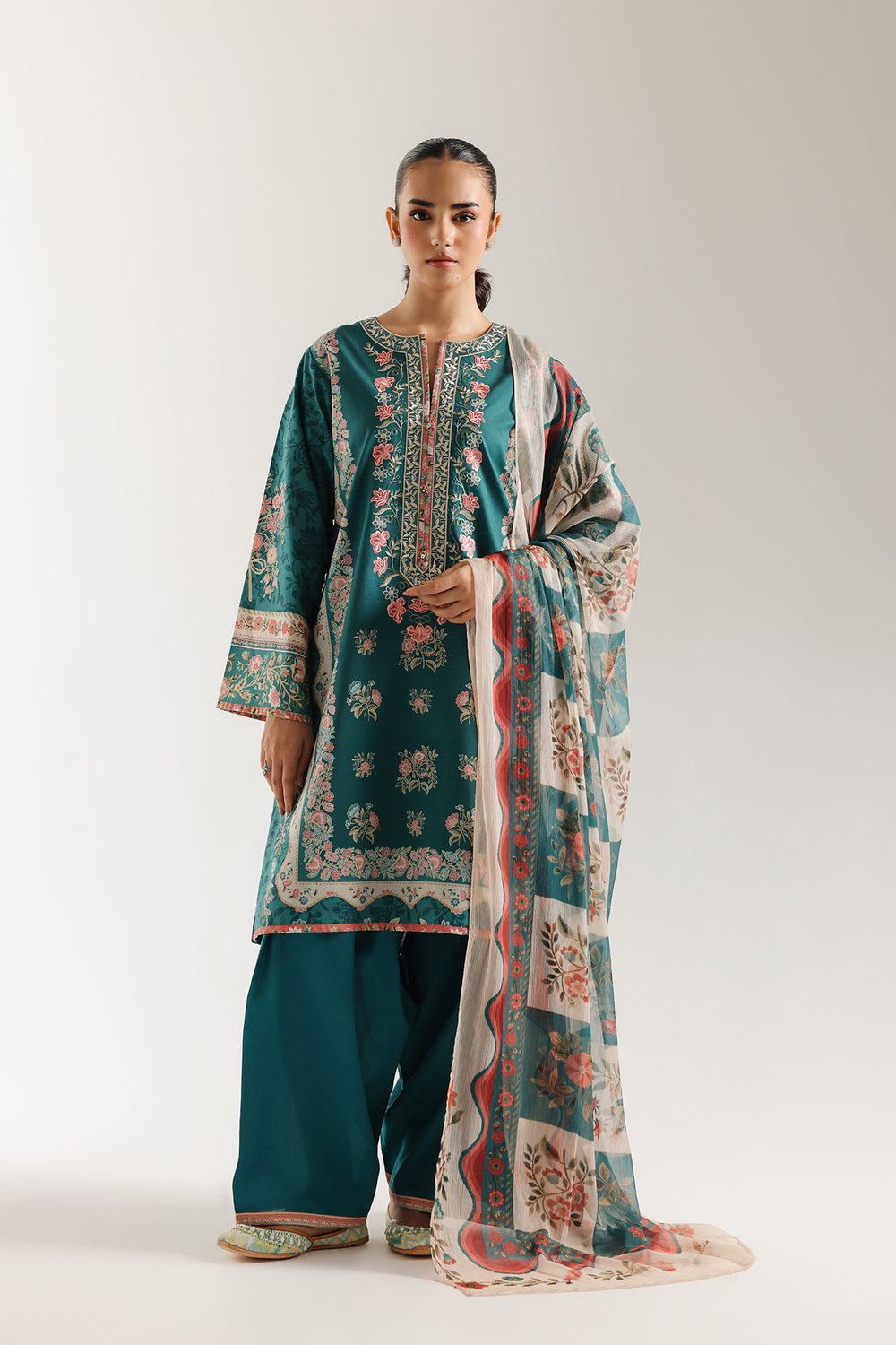 -Embroidered Printed Cotton Slb Shirt 3 Mtr
