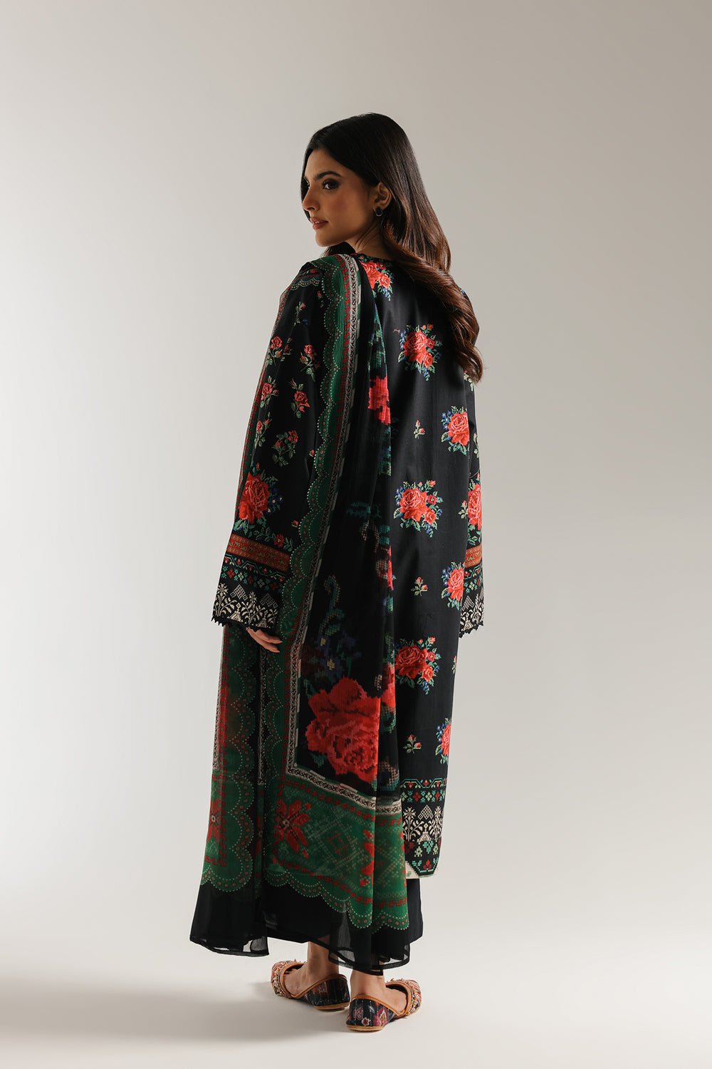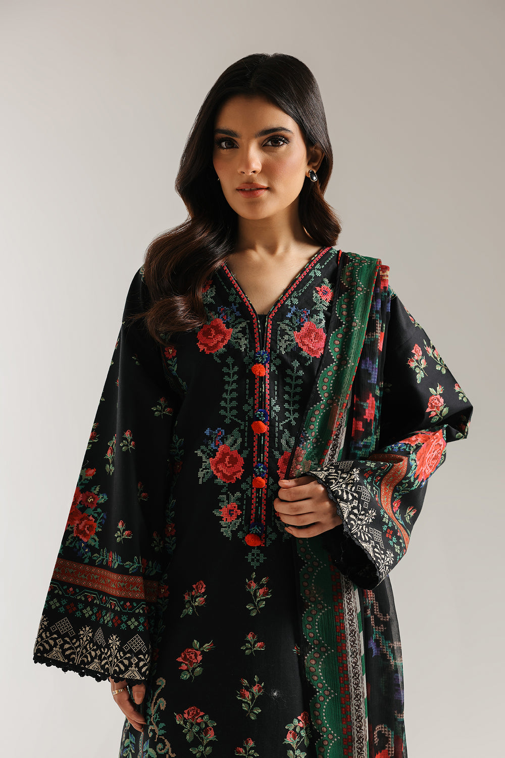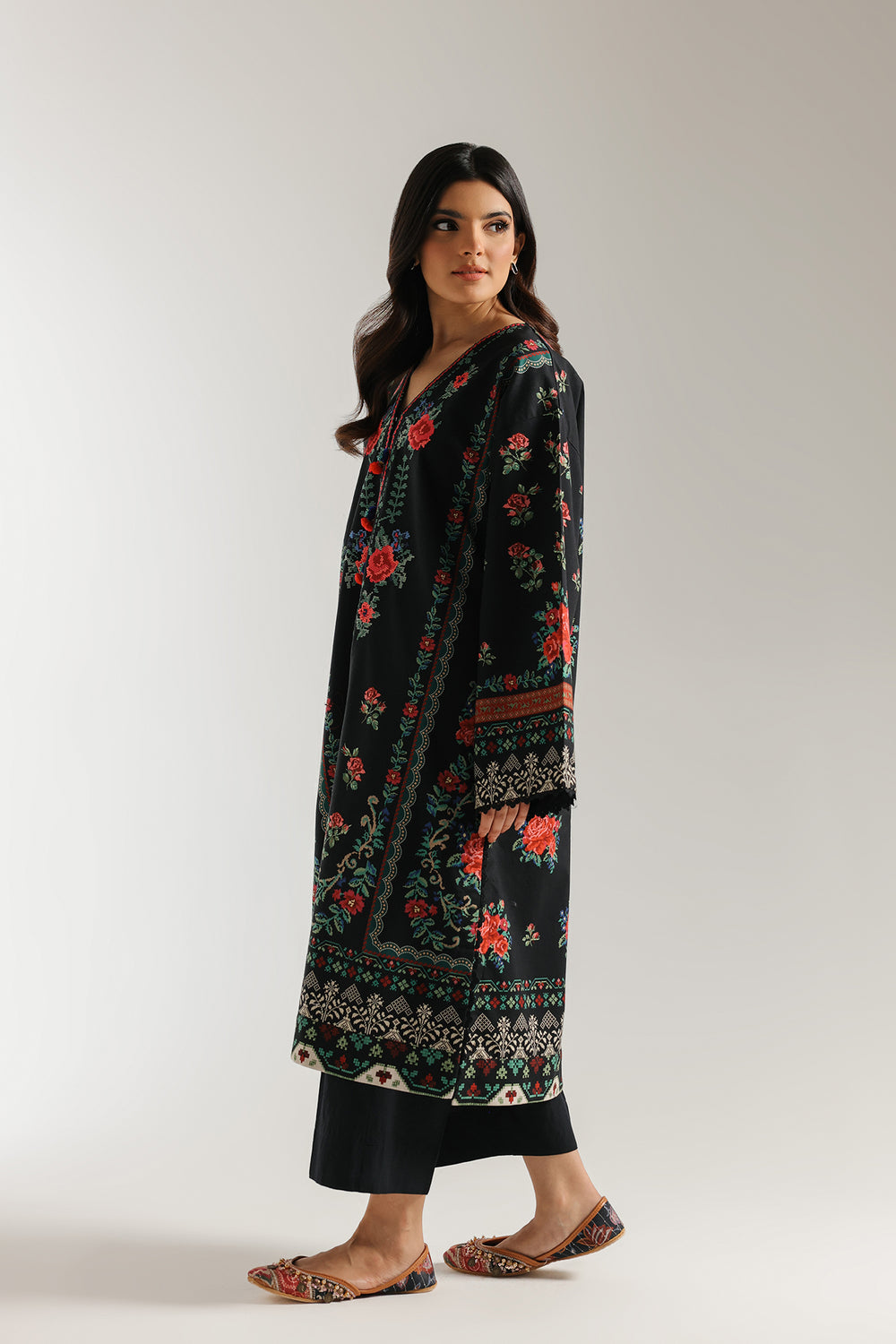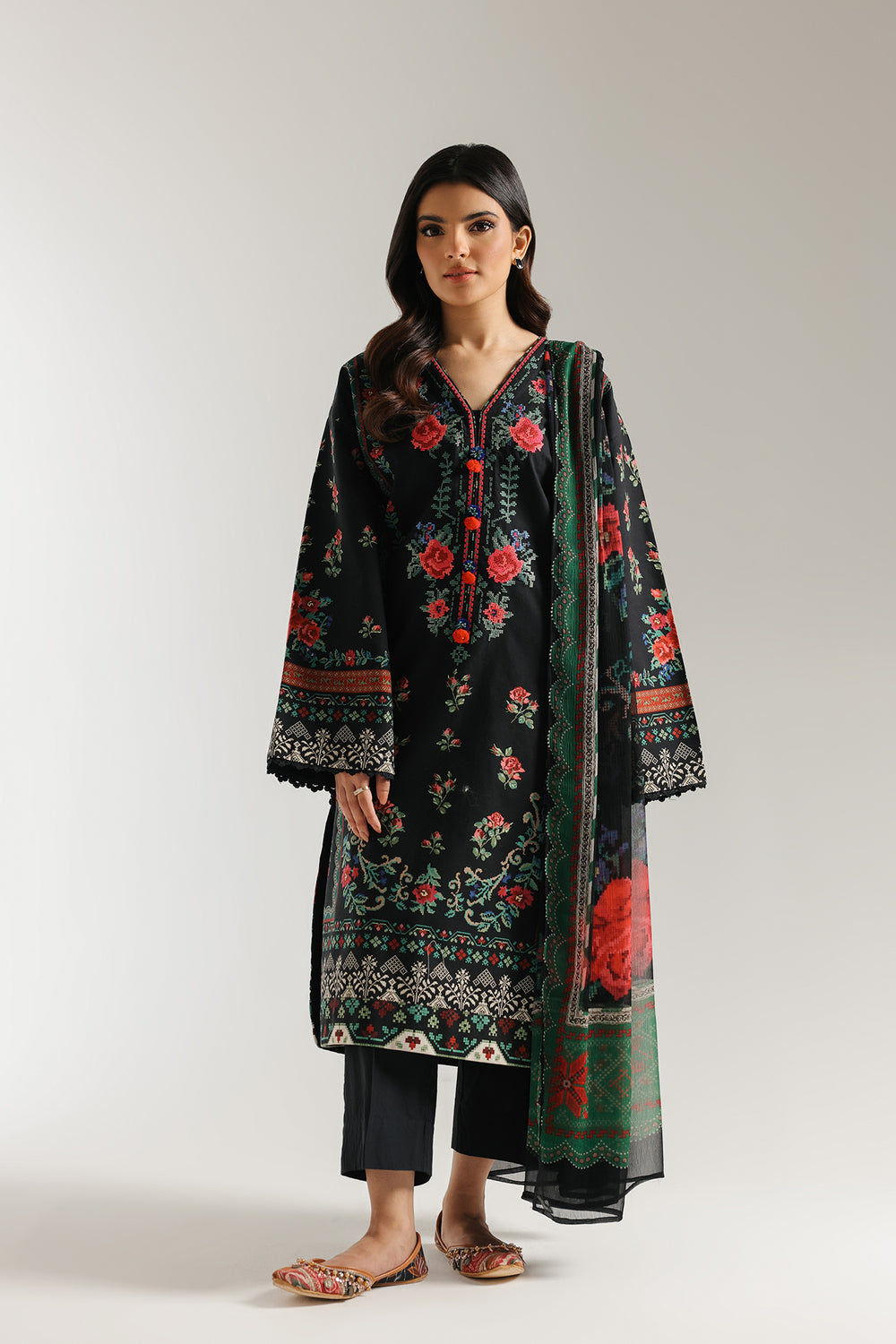 -Embroidered Printed Cotton Slub Shirt 3 Mtr