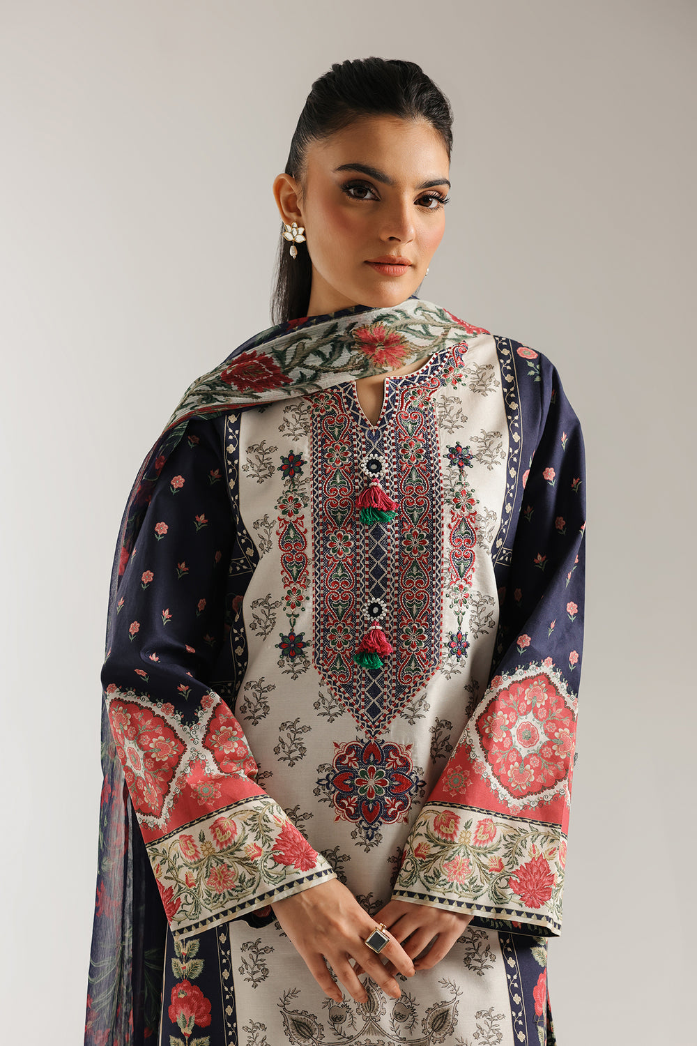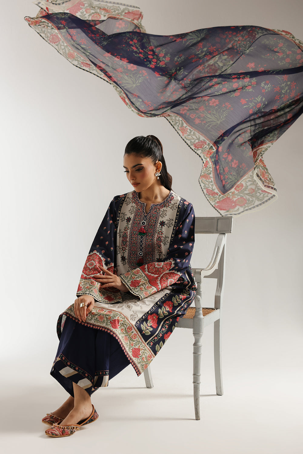 -Embroidered Printed Cotton Slb Shirt 3 Mtr