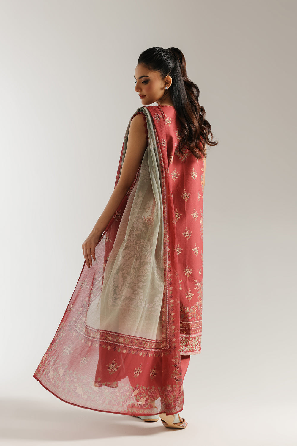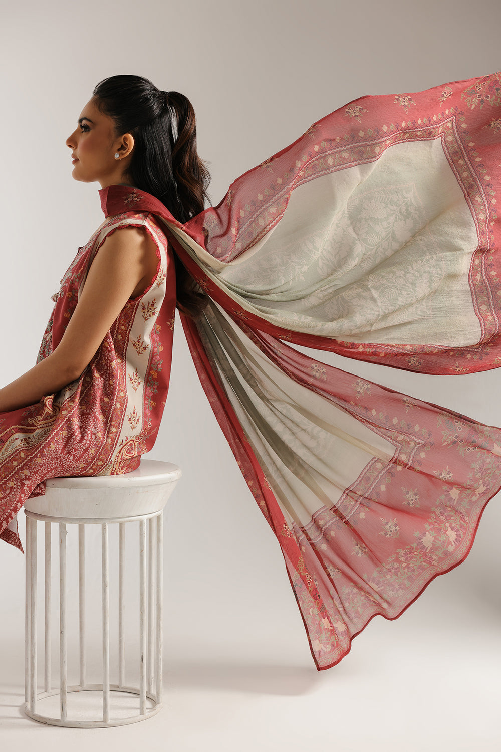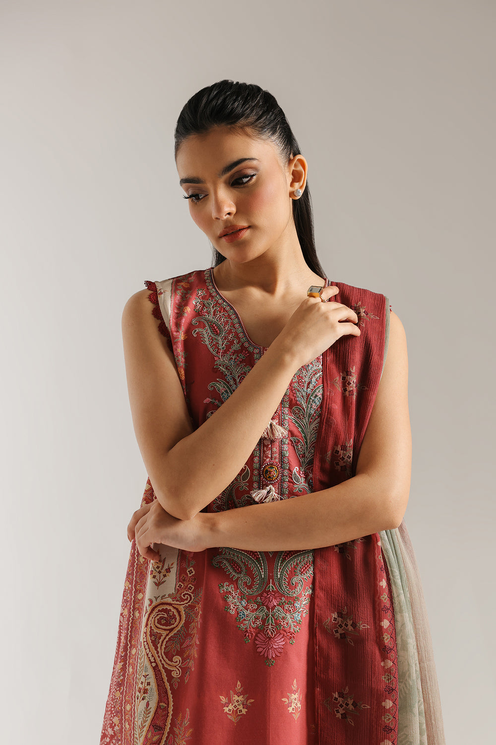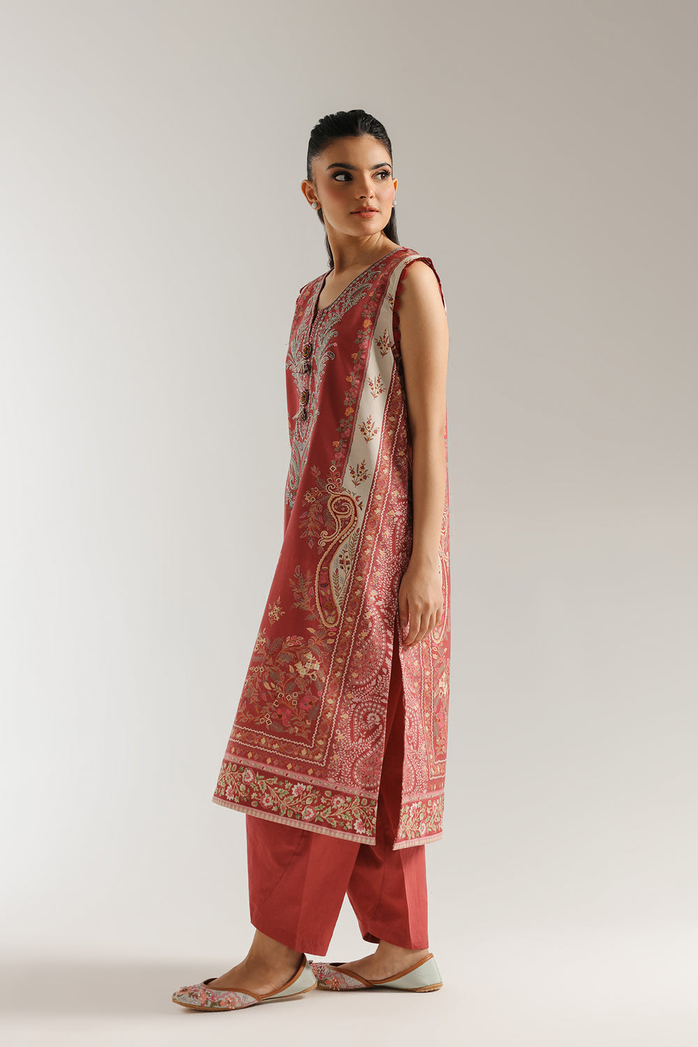 -Embroidered Printed Cotton Slb Shirt 3 Mtr