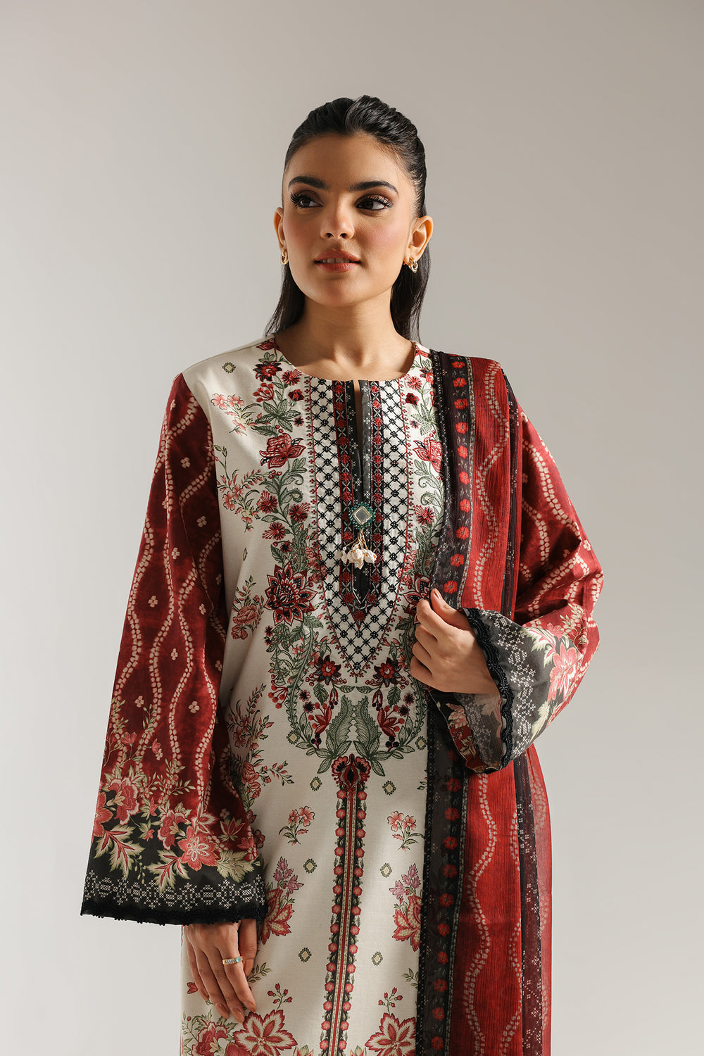 -Embroidered Printed Cotton Slb Shirt 3 Mtr