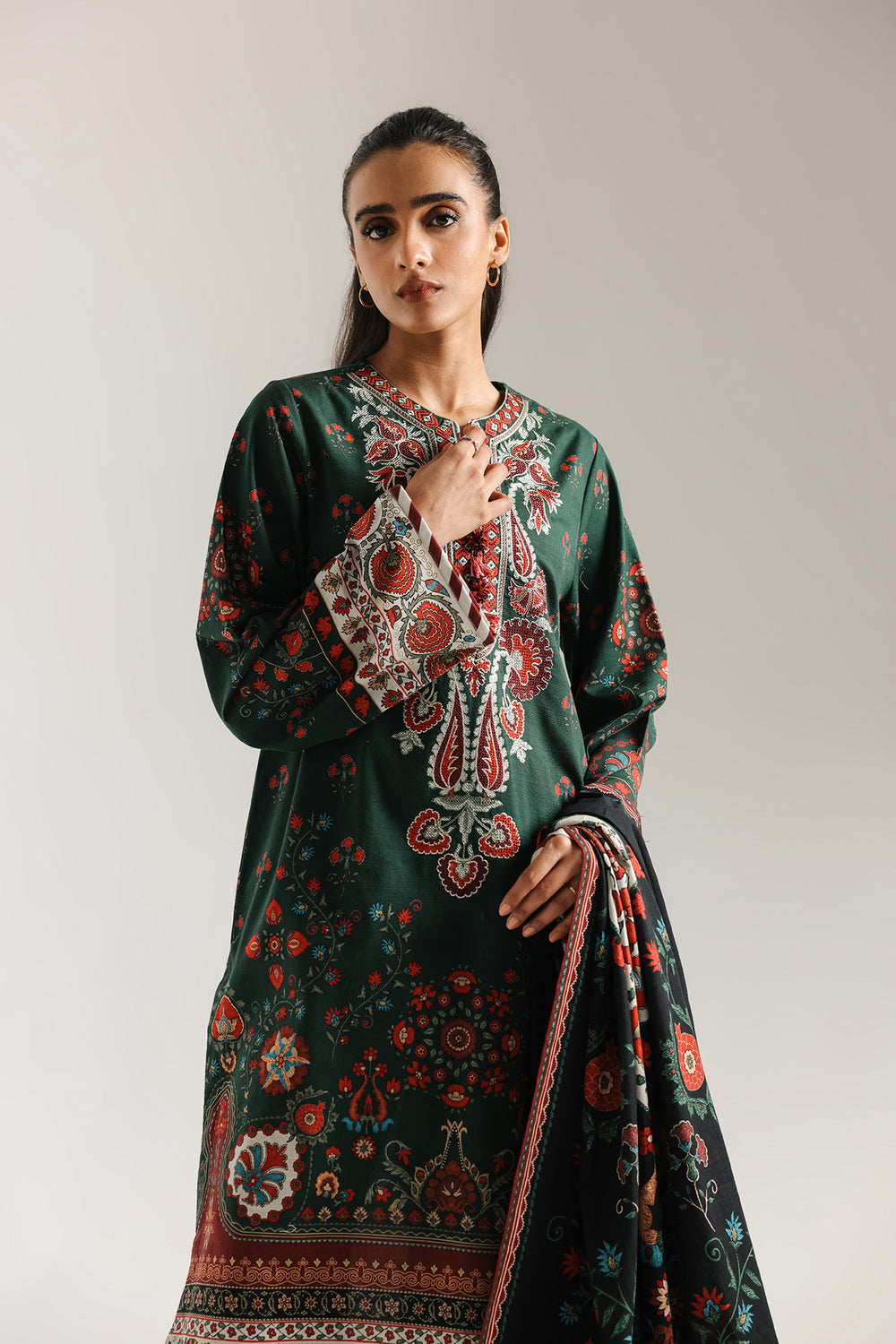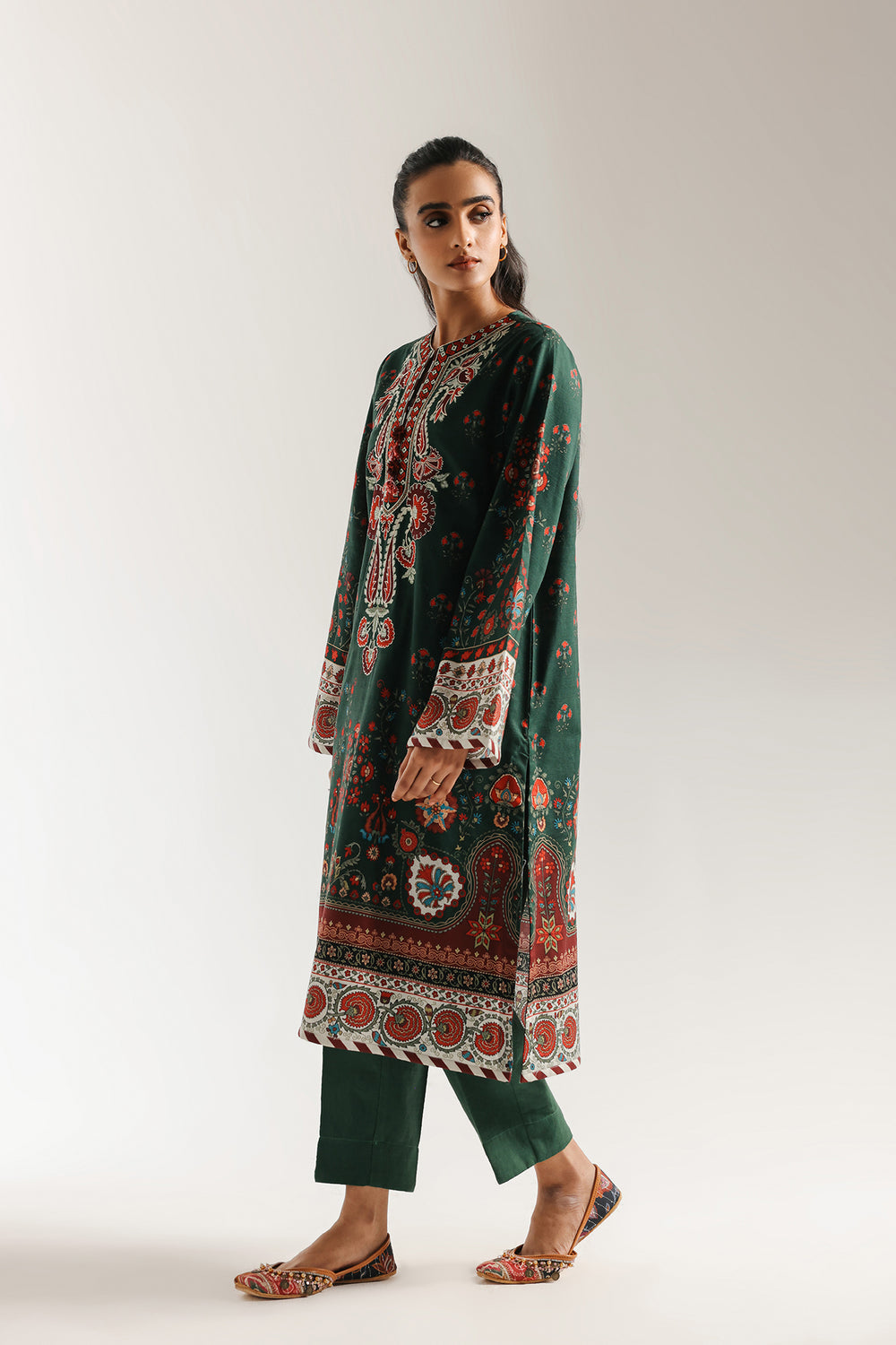 -Printed Khaddar Embroidered Shirt 3 mtr