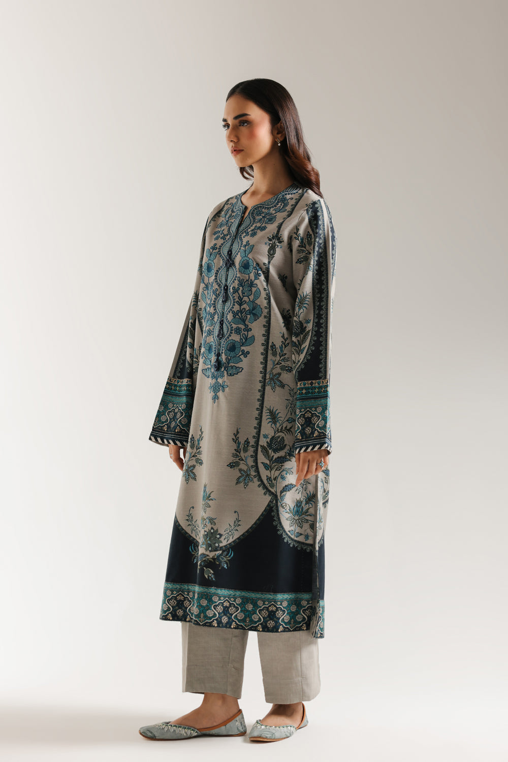 -Printed Khaddar Embroidered Shirt 3 Mtr