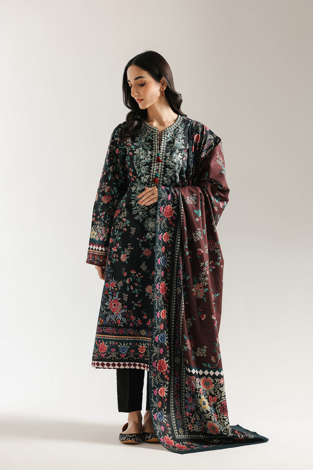 -Printed Khaddar Embroidered Shirt 3 mtr
