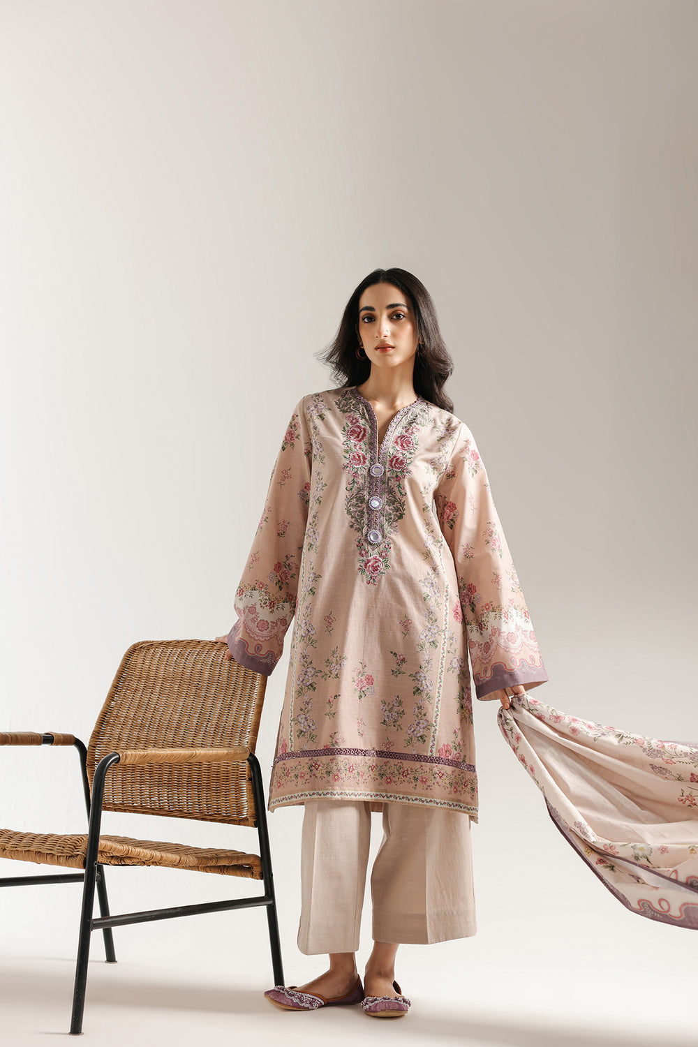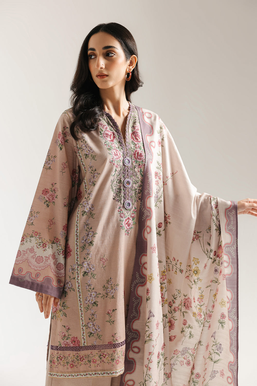 -Printed Khaddar Embroidered Shirt 3 mtr